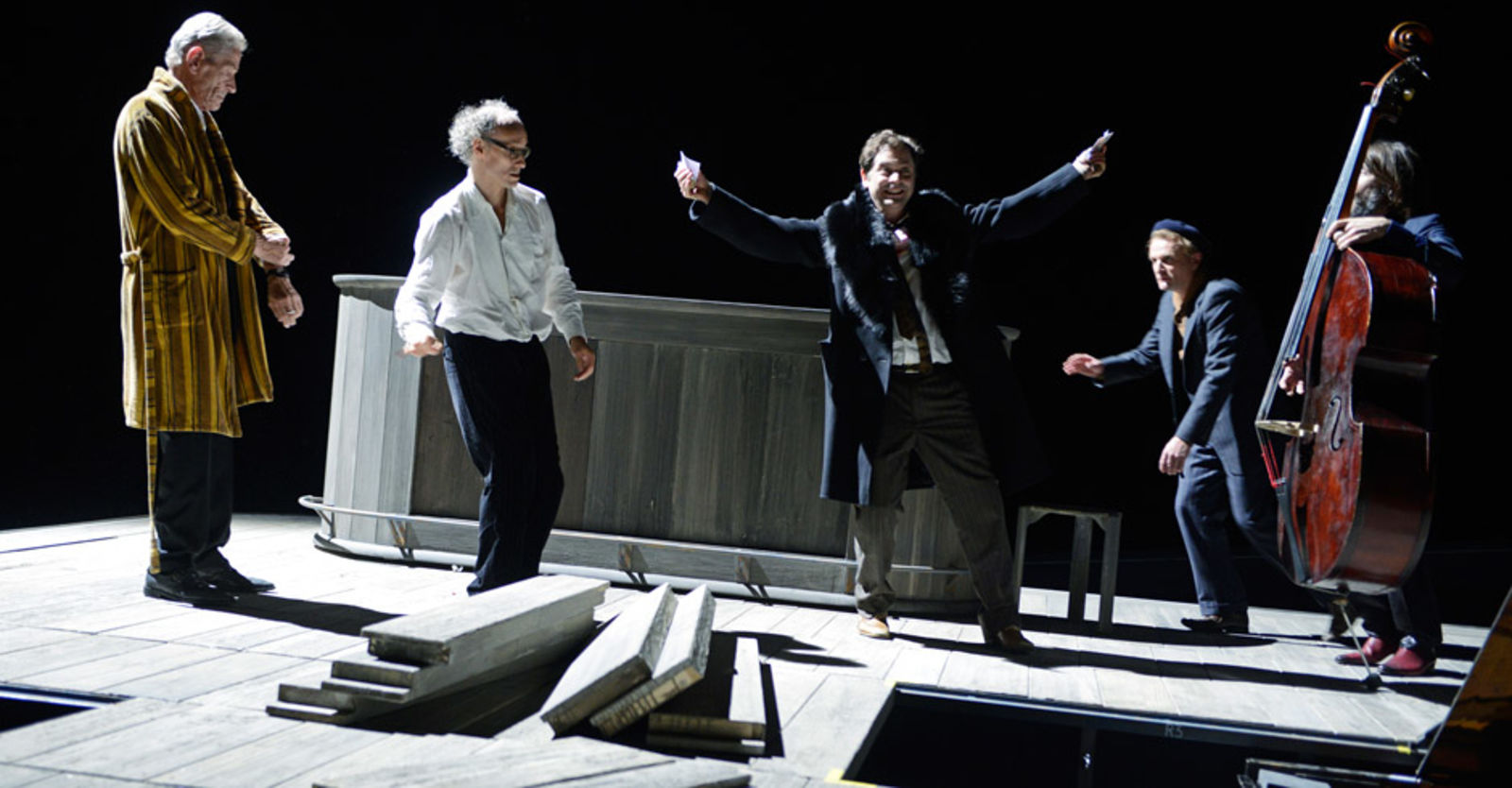 „Skurril, komisch und tragisch ist dieser Abend. Und das Bühnenbild mit dem schrägen Bretterboden ist ein Glücksfall.“ SRF 1