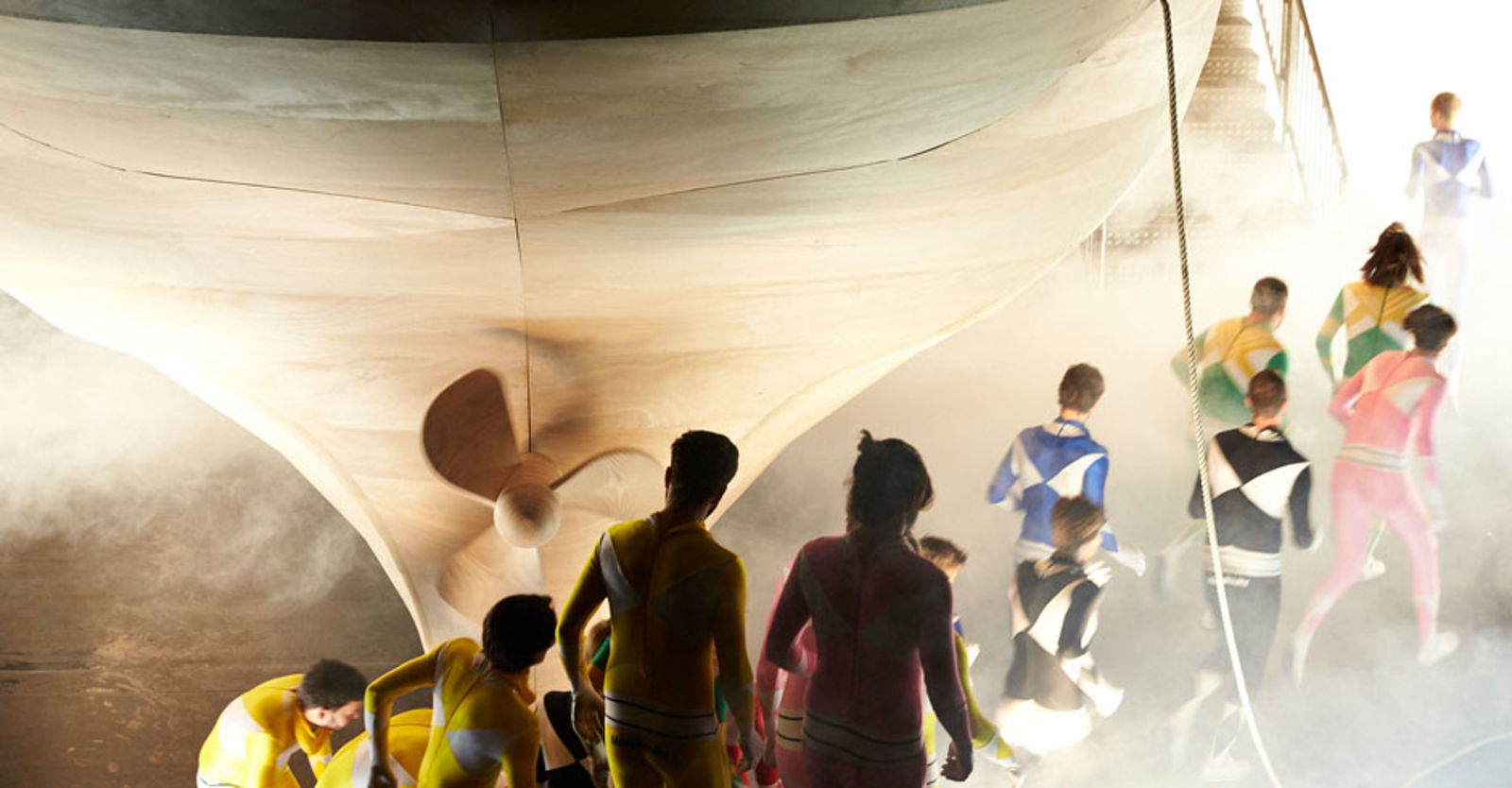 „Am Schluss kommt, e la nave va, das ganze Theater in Bewegung. Das Schiff schwebt, an Zügen gehalten, gegen das Publikum, als würde es über einen Berg gezogen. The Pirates of the Schiffbau waren da. Grosser Applaus.“ Der Landbote