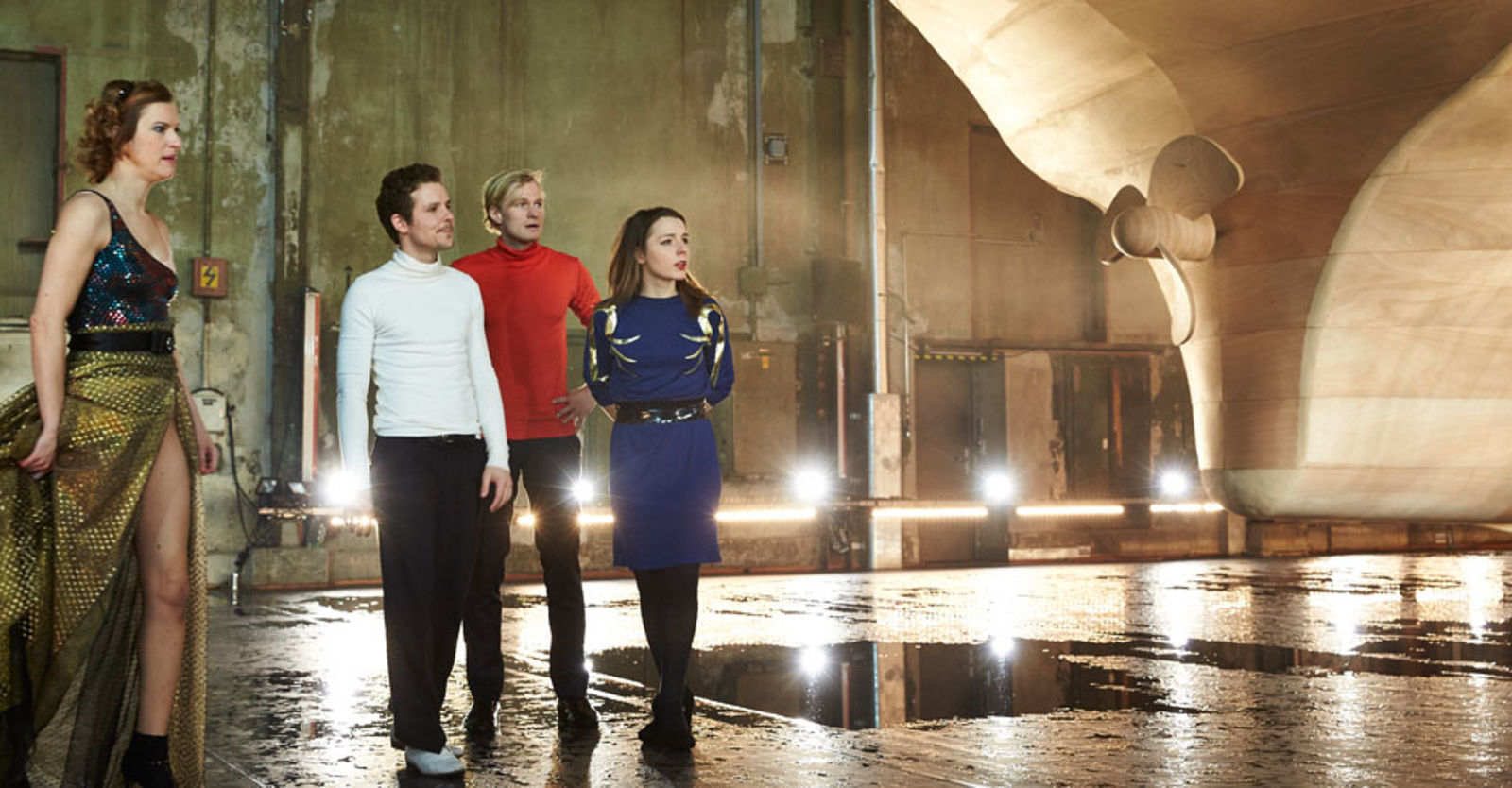 „Theaterspielen lohnt, auch wenn sich die Gesellschaft nicht verändern will. Vielleicht ist dies René Polleschs Credo – jedenfalls war seit langem kein Pollesch-Abend so entspannt, so vergnügt, auch so theatersinnlich wie jetzt „Herein! Herein!“. So einnehmend, was nicht sagen will, ein szenisches Leichtgewicht. Es wird auch an diesem Abend viel und schnell geredet, wie bei Pollesch stets; er wirft wieder seine Diskursmaschine an, sein assoziatives Brainstorming, das sich rasant und pointiert an den Inhalten abarbeitet. Seine Theatertexte sind ja stets eine Mischung aus aktuellem Anlass und theoretischem Diskurs, und sie stellen immer auch eine Überforderung dar, für die Schauspieler so gut wie fürs Publikum. Es ist die vergnüglichste Überforderung. Ein reiner Spass, seiner blitzenden Argumentation zu folgen, oder es immerhin zu versuchen, in die verschlungensten Gedankengänge und verwinkeltsten Diskursgebäude. René Pollesch will bis zum Ende gehen. Er hat ja auch was von einem unbefangen forschenden Kind, das den Dingen ganz auf den Grund kommen will, etwas Unentwegtes. Es geht ihm um das Ausreizen, um Übertreibungen, die höchstmögliche Steigerung, und mit ihr einher geht Klarheit, im Sinn eines hochprozentigen Destillats. Nach knapp anderthalb Stunden rauscht dem Zuschauer der Kopf und er fühlt sich wunderbar beflügelt. Wie verhielt es sich noch einmal mit den individuellen Wegen der Liebe? Wie konstituiert sich überhaupt Geschmack? „Das kann doch nicht sein, dass ich dir nur gefalle, weil du mit deinem Geschmack anderen gefällst.“ Man muss es sich auf der Zunge zergehen lassen. Wenn sich Schauspieler auf der Bühne (fiktiv?) küssen und es deswegen zu Hause zur (authentischen?) Eifersuchtsszene kommt was ist daran innerlich, was äusserlich? Schon das Wort „Szene“ ist ja wieder sehr verräterisch. Pollesch füllt ein Kaleidoskop der Identitätsbehauptungen und schüttelt es gründlich durcheinander. Vom Taxifahrer, der schlecht fährt, es aber darauf schiebt, dass er „auch nur ein Mensch“ ist, bis zum alten Nazi, der sich vor seiner Bücherwand postiert, nachdem er tausend Menschen umgebracht hat – ja, will ich an seinem „inneren Reichtum“ teilhaben? Was macht mich aus? Was bedeutet Sachlichkeit? Wenn man die Menschen nicht nach dem Äusseren beurteilen soll, wonach dann? Kate Bush spukt mit ihrem Liebesgespenster-Song „Wuthering Heights“ herein und verweist auf emanzipatorische Spiele mit differenten Identitäten, zum Beispiel in „Queer“-Zusammenhängen. Slavoj Zizek, Jacques Lacan, Robert Pfaller, wenn man erst einmal anfängt zu grübeln, haben die Zitate, Referenzen, Verweise kein Ende. Das ist innerer Reichtum! Auch das Schiff im Schiffbau ergreift selber das Wort und betont, dass es hier schliesslich die Miete bezahlt. „Herein! Herein!“ ist ungemein witzig und klug, und getragen von einem hochansteckenden Drive, für den nicht nur die vier virtuosen Darsteller verantwortlich sind (Inga Busch, Nils Kahnwald, Marie Rosa Tietjen, Jirka Zett), sondern auch ein nicht minder virtuoser Chor von 23 jungen Matrosen. Sie machen Wind, sie können auch „Wuthering Heights“ in Signalflaggensprache, sie bringen das Schiff in Bewegung.“ NZZ