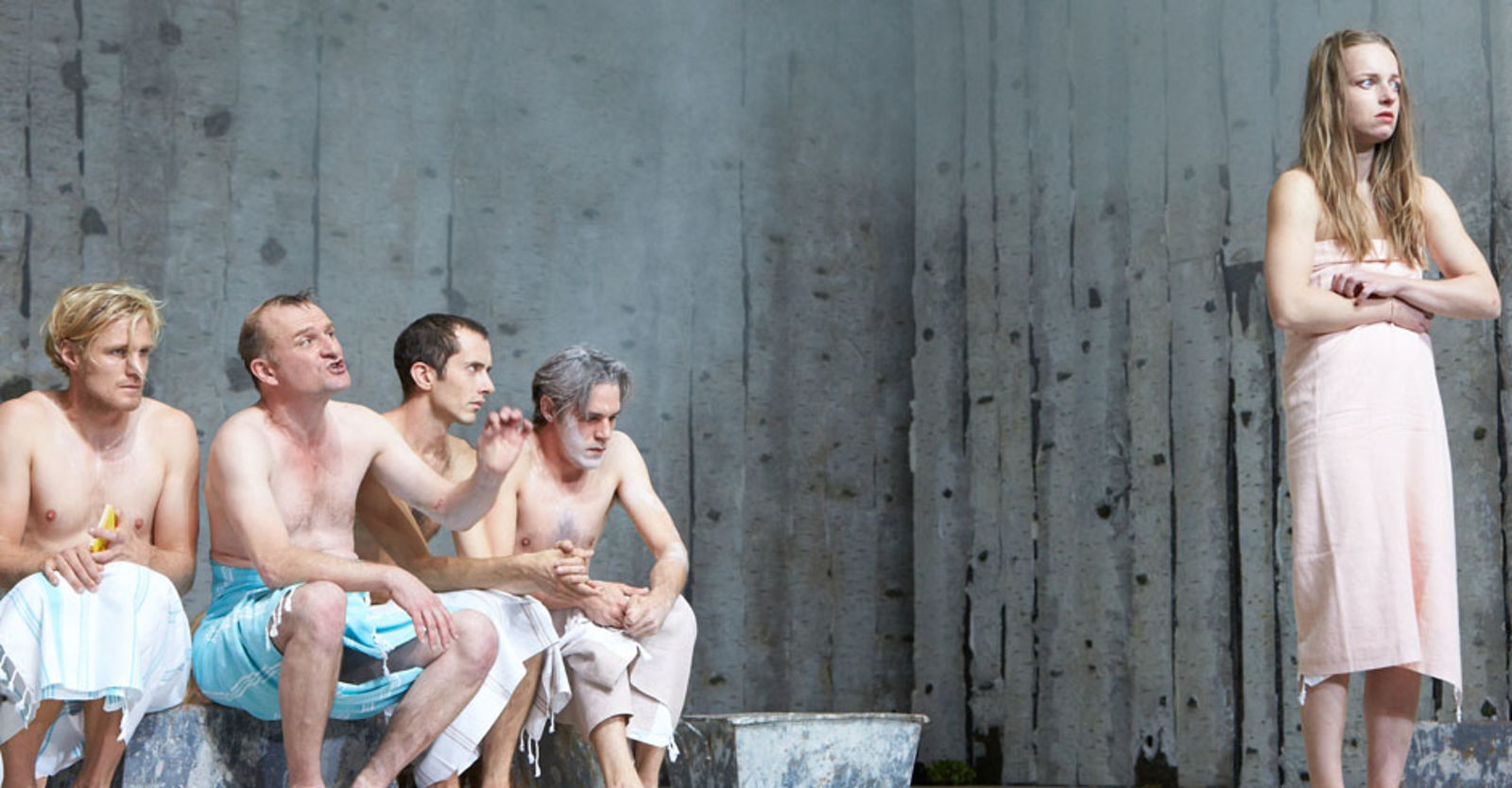 „Das Stück beginnt, als Squenz (Johannes Sima), mit einem Stapel Reclam-Hefte bewaffnet, die Rollen für „Pyramus und Thisbe“ einteilt. Jirka Zetts Zettel drängelt sich für jede Rolle vor, er ist der Latzhosenstreber in der Gruppe, ein Kind im Manne, das glaubt, es habe das Beste, wenn es bloss alles kriegt. Sein Übereifer wird Zettel im Zauberwald den Eselskopf eintragen, plus, immerhin, eine Rammelei mit der Elfenfürstin Titania. Wie es dazu kommt, zeigt das Ensemble in traumwandlerischen Kostümwechseln. Regisseurin Löffner hat fast jeden Akteur auf drei Figuren angesetzt. Nur Puck bleibt Puck. So kann sie die Arbeiter, die Elfen und das Athener Liebesquartett als Stück im Stück im Stück inszenieren. Das ist schön gelöst. Und also fetzt sich Klaus Brömmelmeier, eben noch Schnauz, als Elfenkönig Oberon mit Isabelle Menkes Titania, die sich eben noch unter Schluckers Bart verbarg, und gleich Hippolyta sein wird, die vom Herzog von Athen wieder Brömmelmeier als Theseus besiegte Amazone. Und obendrauf diese Eheanbahnungskrise, in die sich Demetrius (Claudius Körber) und Lysander (Jirka Zett), Hermia (Katharina Schmidt) und Helena (Anna Blomeier) überkreuz verstricken. Was Egeus (Johannes Sima) provoziert, vor Theseus in der Sauna mit der Verstossung seiner Tochter zu drohen. Fürs Publikum bleibt Shakespeares verwirrliche Lach- und Krachgeschichte dabei jederzeit durchschaubar.“ Basler Zeitung