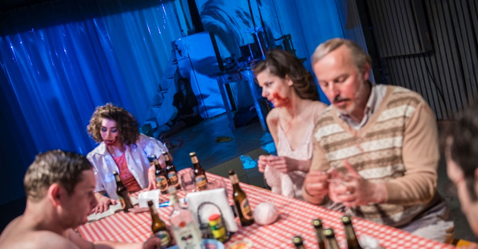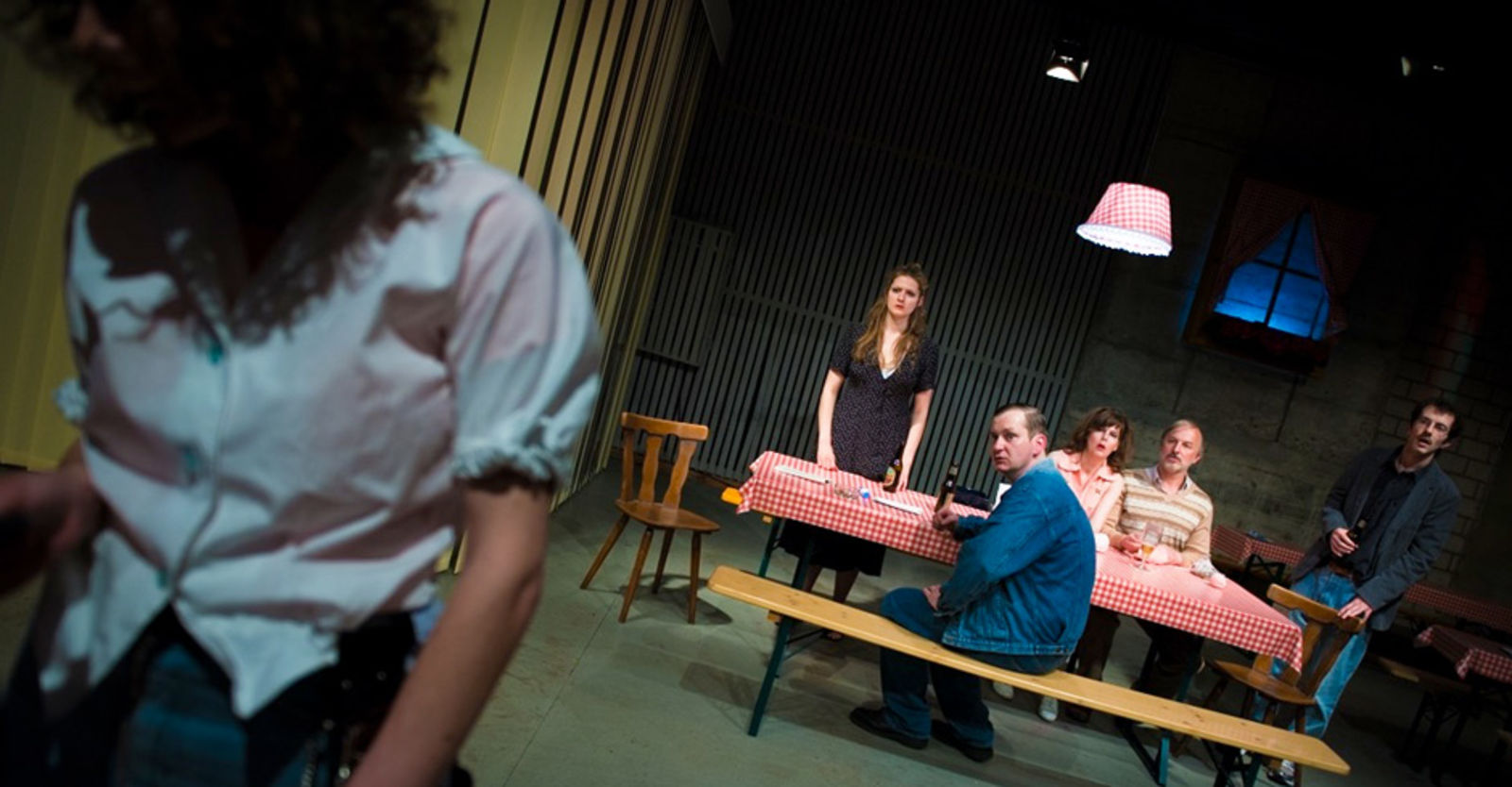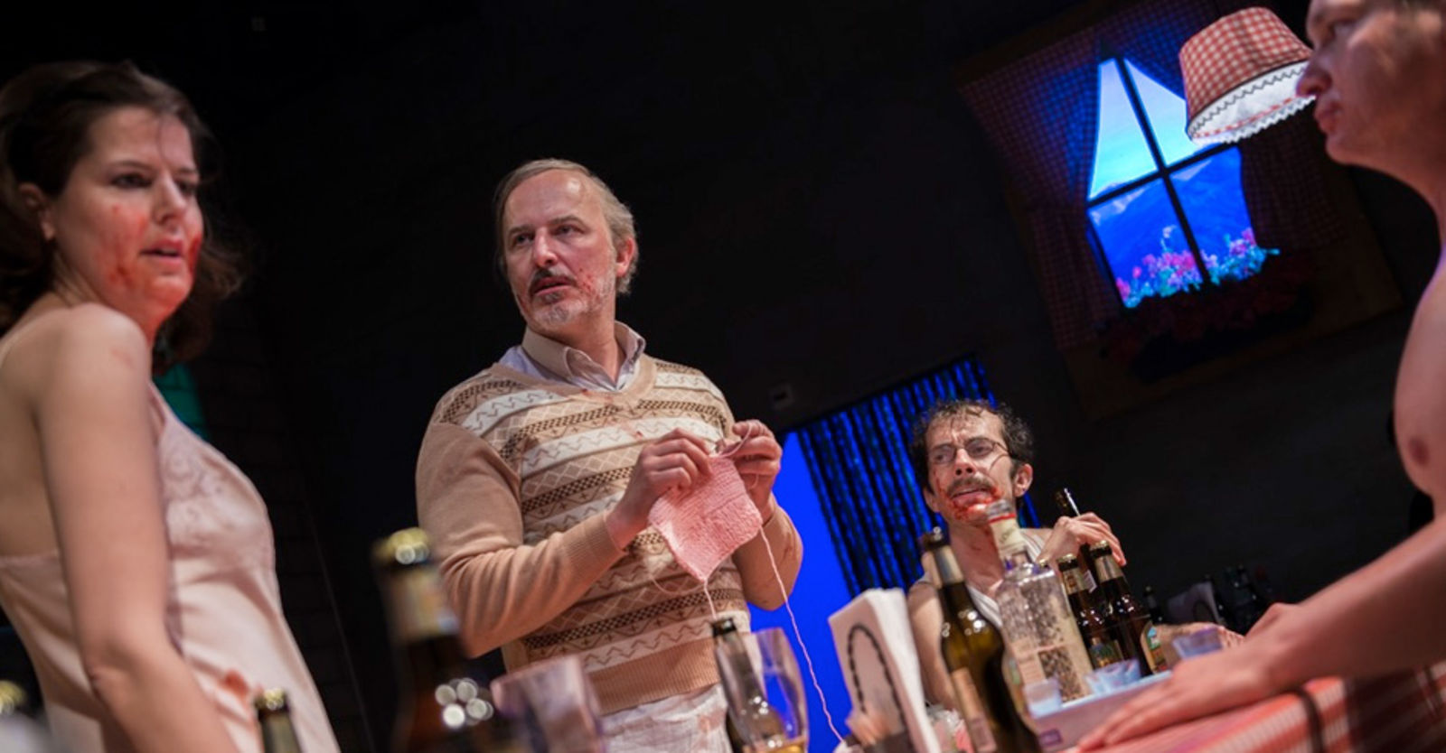 „Solange das formidable Ensemble alias trümmliges Trüppchen in Sophia Bodamers Inszenierung unter seinesgleichen bleibt, halten sich die verschiedenen Schrägen in einer erprobten, wenngleich fragilen Balance. Aber in dieser Festhütte ohne Zauber von Prisca Baumann muss ja unbedingt „ein schönes Paar“ aufkreuzen und dem Sextett aus lauter Grenzdebilen qua barer Präsenz versinnbildlichen, wie sehr alle in dieser verschworenen, sich hassliebenden Gemeinschaft von der herbeigesehnten Perfektion entfernt sind. Dieser unbeschreibliche Affront reizt sie natürlich bis aufs Blut. Dass die Reaktion darauf ein entfesselter Blutrausch wird, der die Meute jeglicher zivilisatorischer Grundlage beraubt und sie jäh ins wildeste Urverhalten von fressen oder gefressen werden drängt, wirkt nachgerade zwangsläufig. Einzig Lisa-Katrina Mayer als Herta, der hierarchisch am untersten Ende befindlichen Figur, findet mittels ihrer Zurückhaltung eine neue Perspektive auf den Rest ihrer Umgebung, dessen Launen zu erleiden sie bislang für den eigentlichen Sinn des Lebens hielt, und findet für sich endlich einen Ausweg. Ein Abgesang auf jede Fähigkeit eines Menschen, sich der Gattung entsprechend stets nach dem Noblen, Guten, Richtigen zu richten und diesem hehren Ziel nach eigenen Möglichkeiten alles unterzuordnen. Eine schlagende Fundamentalkritik an Moral, Anstand und der Fähigkeit eines jeden Menschen, sich im aufklärerischen Sinne zu einem zivilisierten Wesen zu entwickeln – natürlich abgesehen von Theorie und Behauptung.“ P.S.