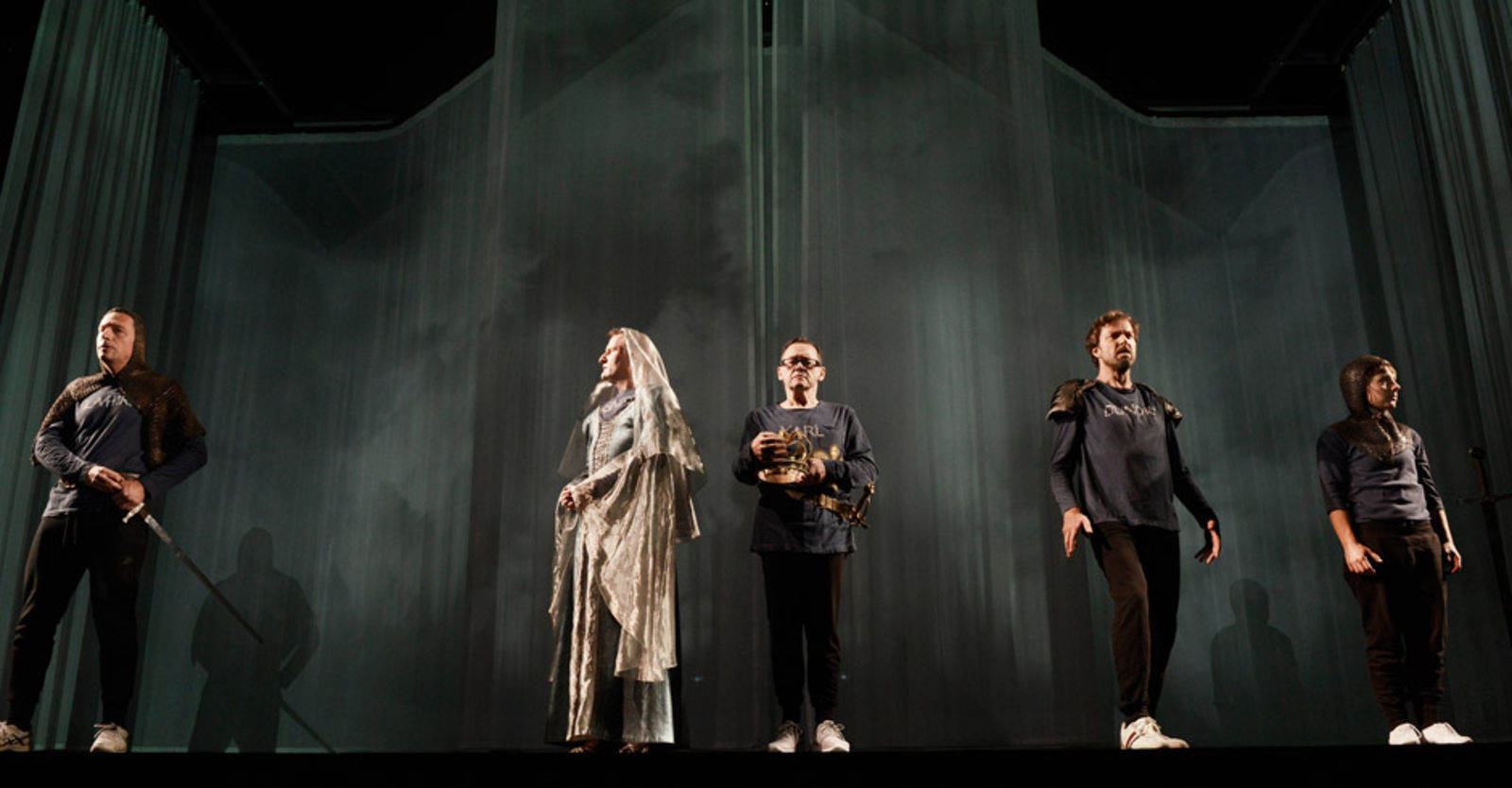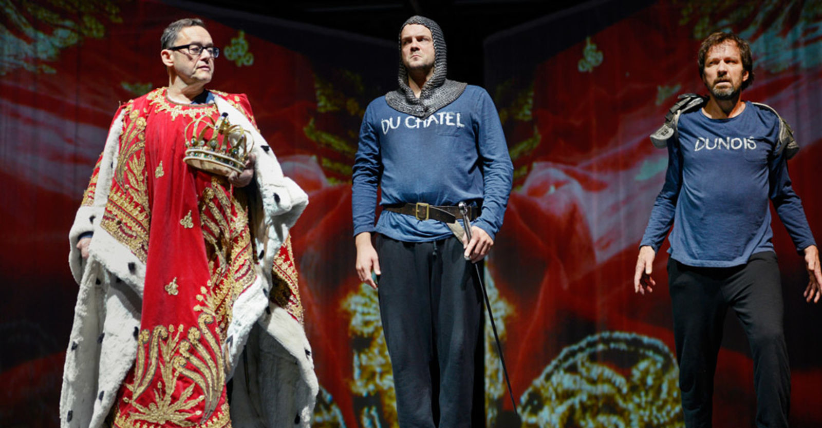 „Die historische Jeanne d‘Arc wird 1431 nach einem Inquisitionsprozess als Hexe verbrannt. Friedrich Schiller hat seine Jungfrau als ein zwischen Neigung und Pflicht schwankendes Wesen angelegt. Regisseur Stephan Kimmig zeichnet das Psychogramm dieser Ikone und reichert das Stück mit Gegenwartsbezügen von Peter Stamm an. Die Rede ist vom Terrorismus unserer Zeit, die Parallelen zur fanatischen Kriegstreiberin Johanna herstellen soll. Die Bühne ist mit mehreren transparenten Vorhängen ausgestattet, die je nach Verlauf geöffnet und wieder geschlossen werden. Mit von der Partie ist ein Kameramann, der die Darsteller überlebensgross auf die Vorhänge projiziert (Bühnenbild: Katja Hass).“ seniorweb.de