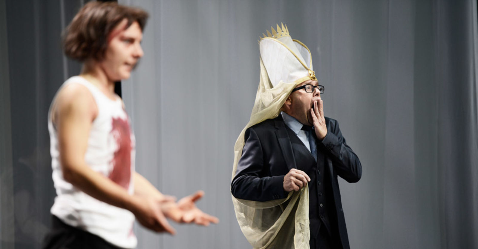 Anders ist nur Johanna, das verstörte Kind mit der Prinz-Eisenherz-Frisur – die grazile Schauspielerin mit dieser Power-Aura. Wenn die Herren sich im ersten Teil an der Rampe aufreihen, reden, reden, reden und das hallende Echo sie zu verspotten scheint, zieht sich die Chose. Noch die letzte, entlarvende Nichtigkeit wird aus den Versen herausgehämmert. Aber wo die Gotteskriegerin auf den jungen Montgomery trifft, den Engländer angewidert niederringt, die Augen auf den leeren Himmel fixiert; wo sie, die Kleine, auf den Grossen klettert, seinen Kopf wegdreht, ihn besiegt, ohne ihn anzusehen, den Menschen entfremdet und auch in Distanz zu Schillers Drama: Dann ist das Theater, das keine Erklärung braucht, ist geschichtenpralle Gegenwart.“ Tages-Anzeiger