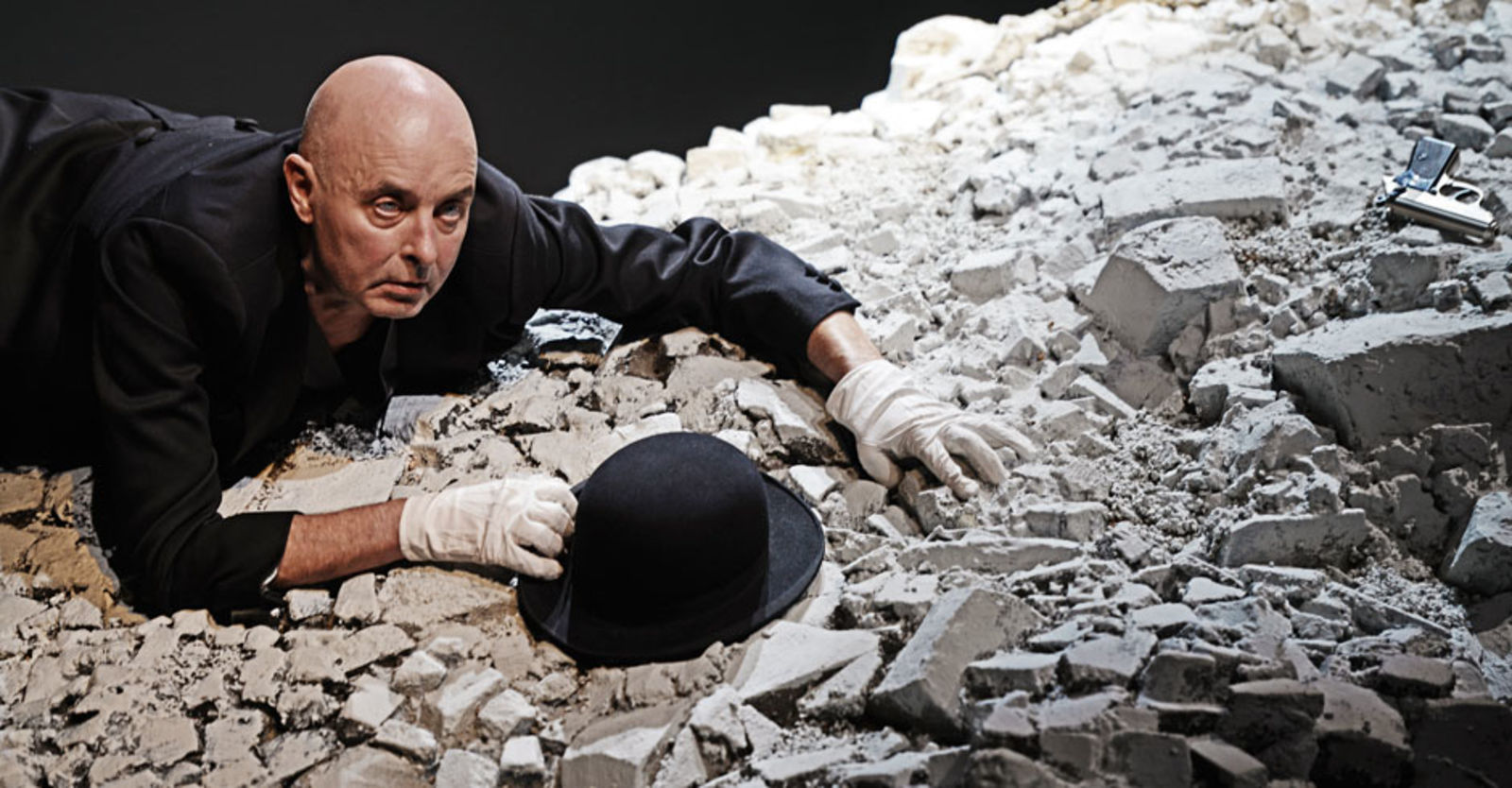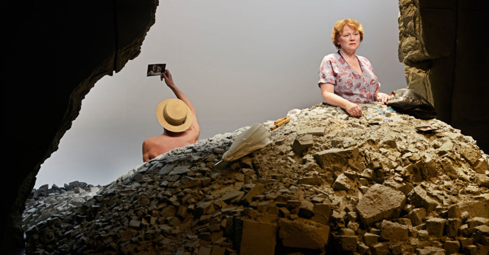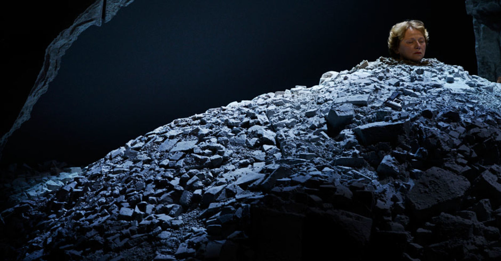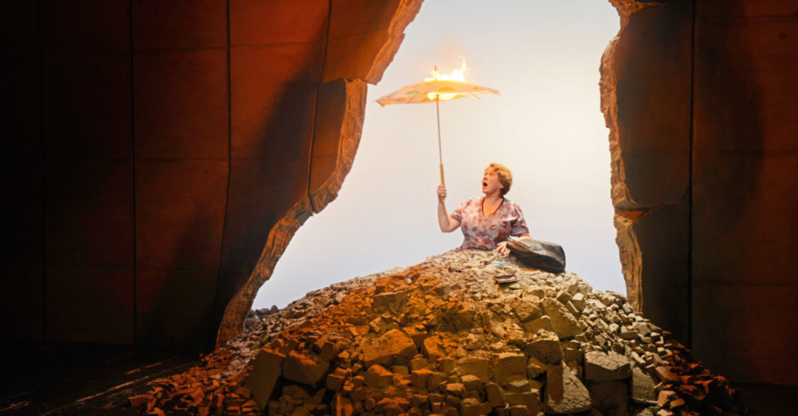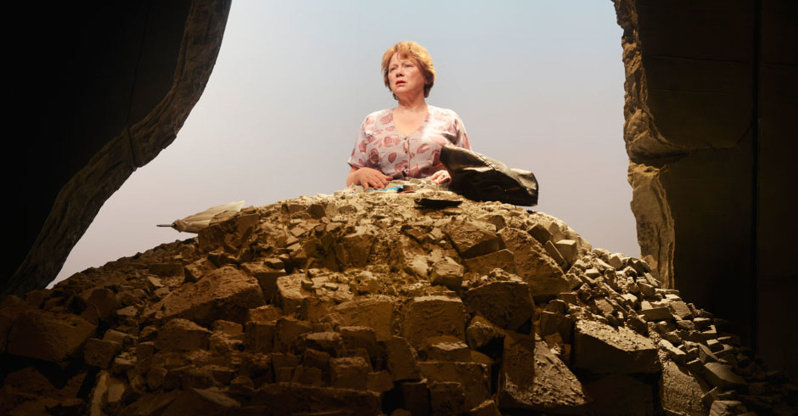 Winnie, die Frau, steckt bis zur Brust in einem Erdhaufen und droht tiefer und tiefer darin zu versinken. Sie hält an alltäglichen Tätigkeiten fest, die einst einen Sinn gehabt haben mögen, aber angesichts der völligen Auflösung von Winnie nur mehr die Funktion haben, sich die Zeit zu vertreiben. Ihr Mann Willie ist zum wortkargen schläfrigen Vierbeiner verkommen, der sich nur noch kriechend fortbewegen kann. Plötzlich wird er von einem Funken Erotik durchglüht und versucht, den Erdhaufen, der die Frau langsam verschlingt, zu besteigen. Im krassen Widerspruch zur äusserlich katastrophalen Situation erscheint die Frau doch als Inbegriff eines glücklichen Menschen, da sie sich über unscheinbarste Ereignisse freut und ihr Schicksal mit unbeirrbarem Optimismus belächelt. Wie die Personen in anderen Stücken von Samuel Beckett bestehen auch Winnie und Willie auf der Illusion des Wartens auf etwas nie Eintreffendes und überspielen in tragikomischer Hilflosigkeit ihren eigenen Verfall. Das 1961 in New York uraufgeführte Stück ist einer der visionärsten Theatertexte des 20. Jahrhunderts. Werner Düggelin, 1929 in Siebnen im Kanton Schwyz geboren, verbindet eine langjährige, intensive Beschäftigung mit Beckett. Düggelin lernte in den Fünfzigerjahren in Paris das Regiehandwerk, wo er Samuel Beckett persönlich kennenlernte. Er war massgeblich daran beteiligt, dass es 1954 zur Schweizerischen Erstaufführung von „Warten auf Godot“ in der Regie von Roger Blin kam. Ausserdem war er einer der ersten deutschsprachigen Regisseure, der Stücke von Samuel Beckett, Eugène Ionesco, Georges Schehadé, Albert Camus, Jean Genet und Paul Claudel in deutscher Sprache inszenierte. Werner Düggelin prägte von 1968 bis 1975 als Schauspieldirektor des Theater Basel die Schweizer Theaterlandschaft. Seitdem arbeitet er als freier Regisseur. 1995 erhielt er den Kulturpreis der Stadt Basel und im Juni 2014 den Kunstpreis der Stadt Zürich. Zuletzt waren am Schauspielhaus Zürich in seiner Regie Jon Fosses „Schönes“ und Molières „Der Bürger als Edelmann“ zu sehen.