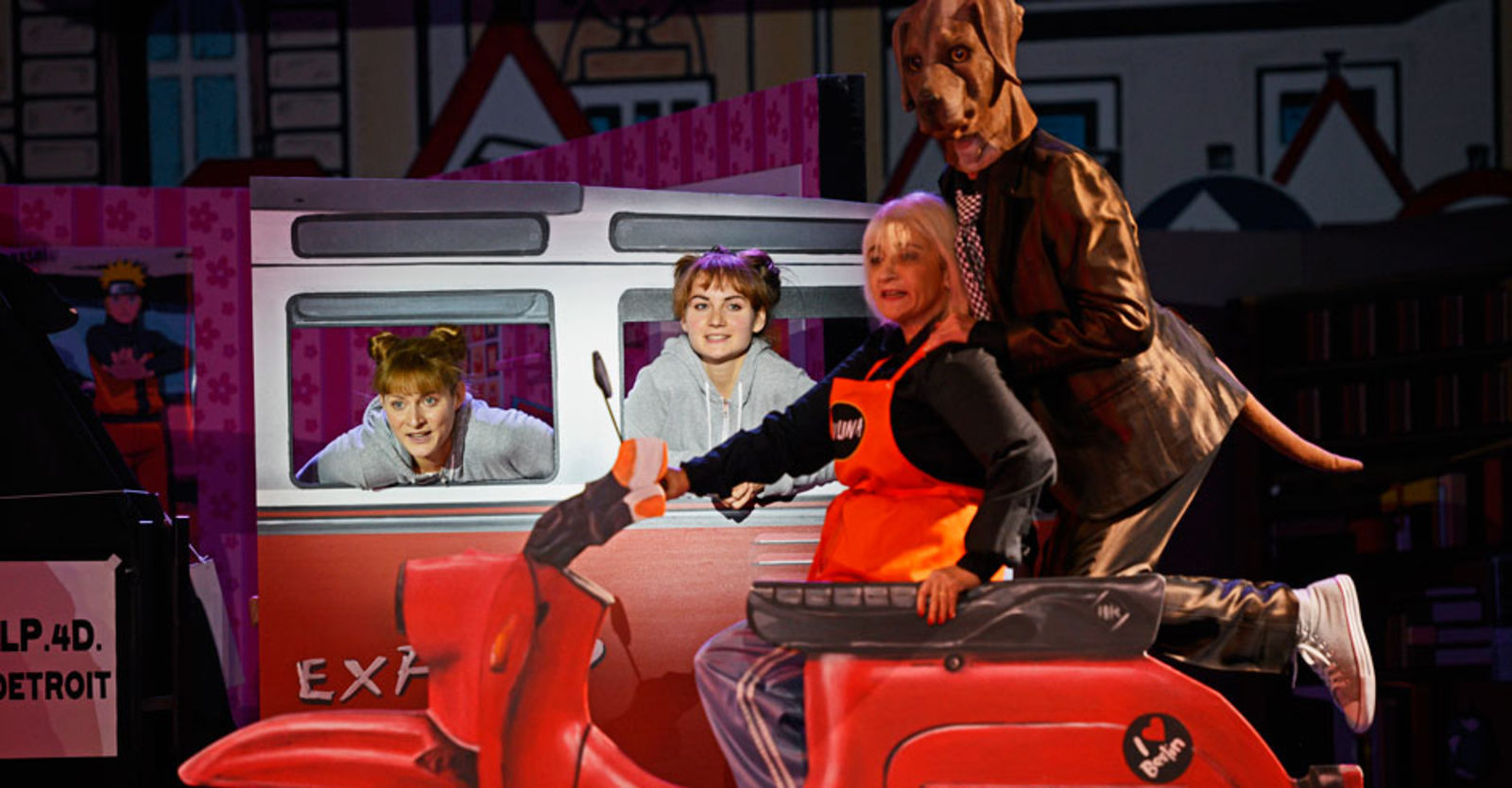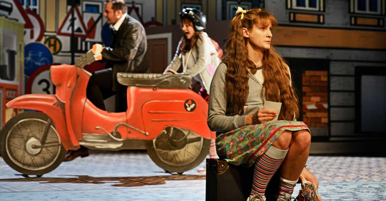 „Die Regisseurin Christina Rast und die Ausstatterin Franziska Rast – auch zwei Schwestern – haben nun Kästners Welt neu möbliert – und sie ist komplett aus Pappe. Der Bus ist aus Pappe, der Fisch für die Fischsuppe ist aus Pappe, die Blumen und Bäume sind aus Pappe – wie Motorrad, Taxi oder Currywurststand. Auch die Räume lassen sich aufklappen wie in einem Bilderbuch. Hinter der Pappe ist aber das ganze Leben – wie es sich heute zusammensetzt. Und da kann die Mutter schon mal Pizza bestellen, wenn sie keine Lust aufs Kochen hat.“ Zürcher Unterländer