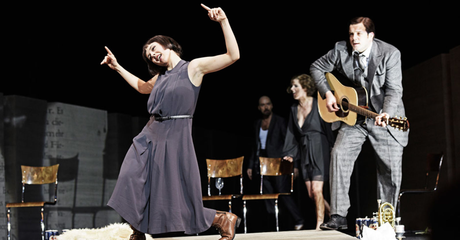 „Barbara – im wahren Leben Klaus Manns Schwester Erika – lässt sich von Höfgen hofieren und bleibt doch kühl. „Wir könnens ja versuchen“, erwidert sie trocken auf seinen Heiratsantrag, und das ist einer der Momente, in denen das Talent der umwerfenden Zürcher Nachwuchsschauspielerin Elisa Plüss voll zur Geltung kommt.“ Theater heute