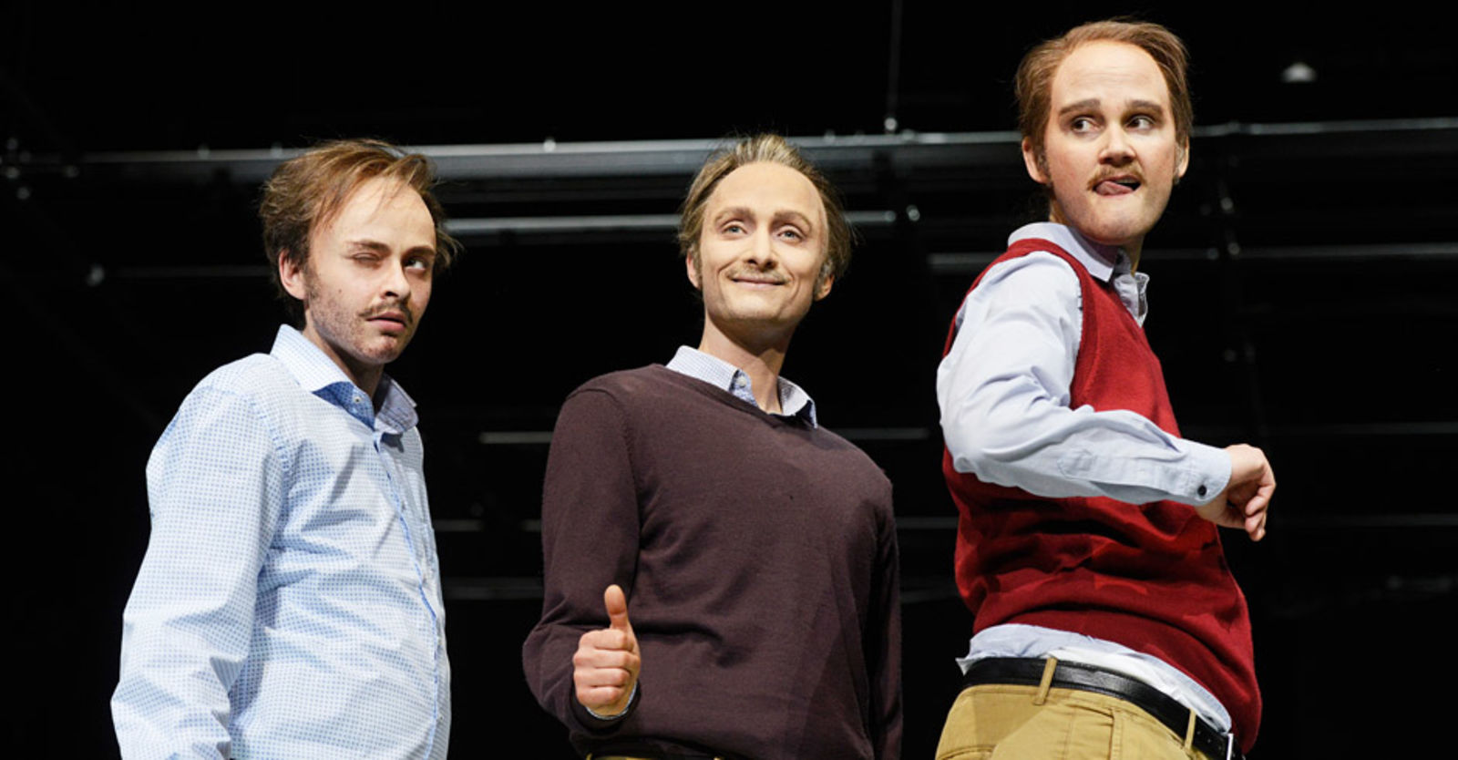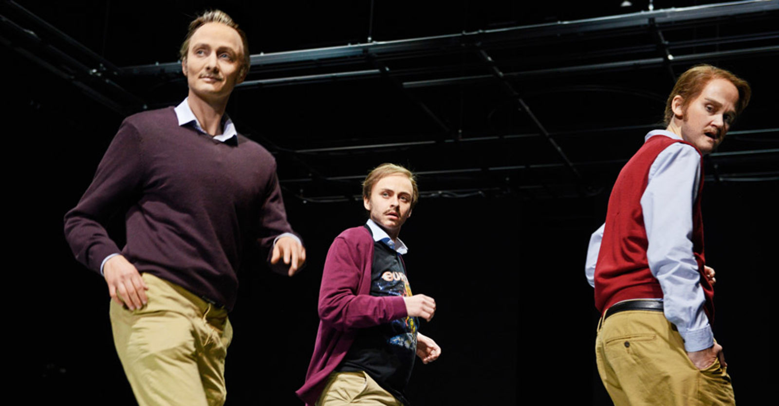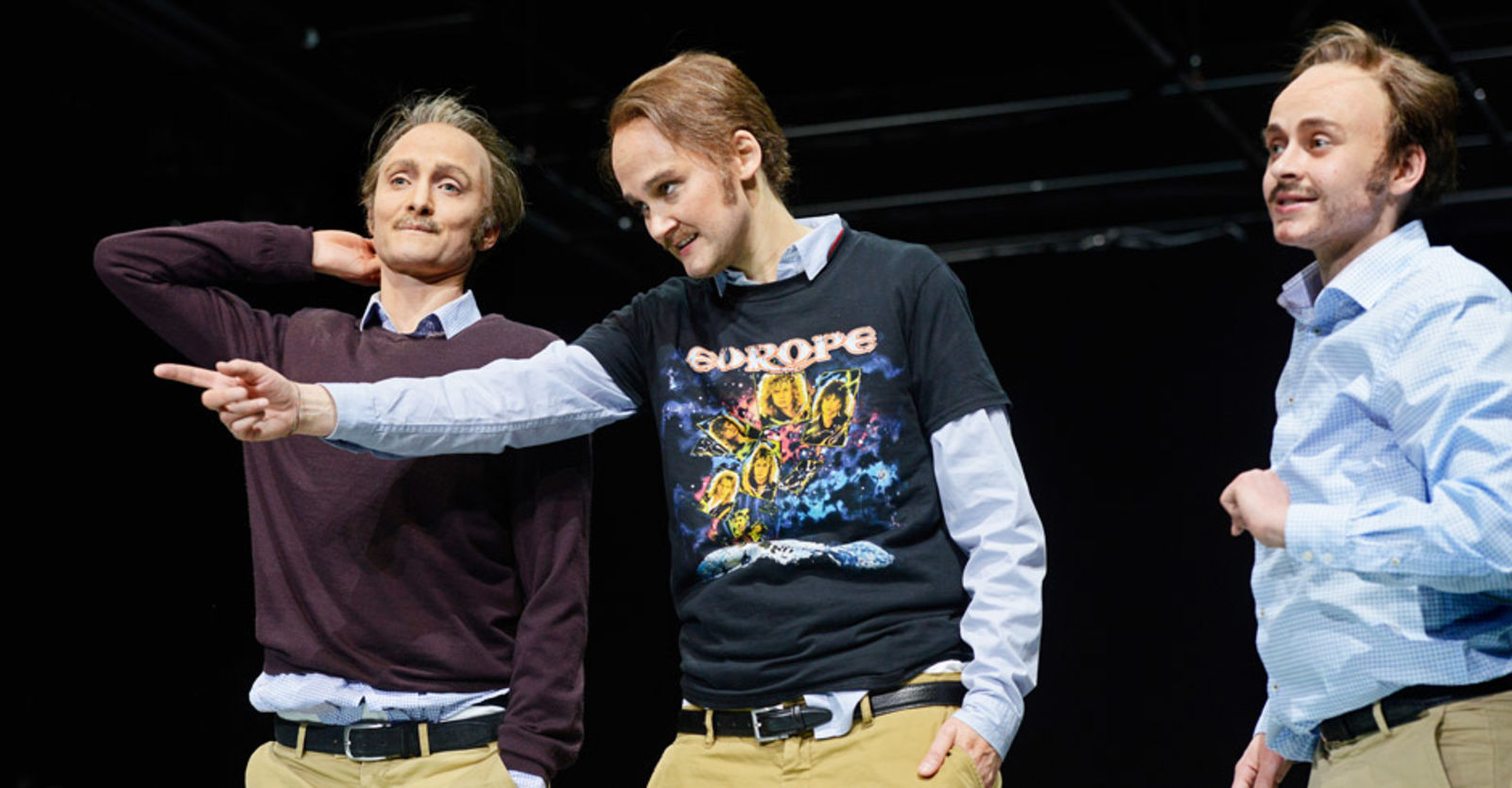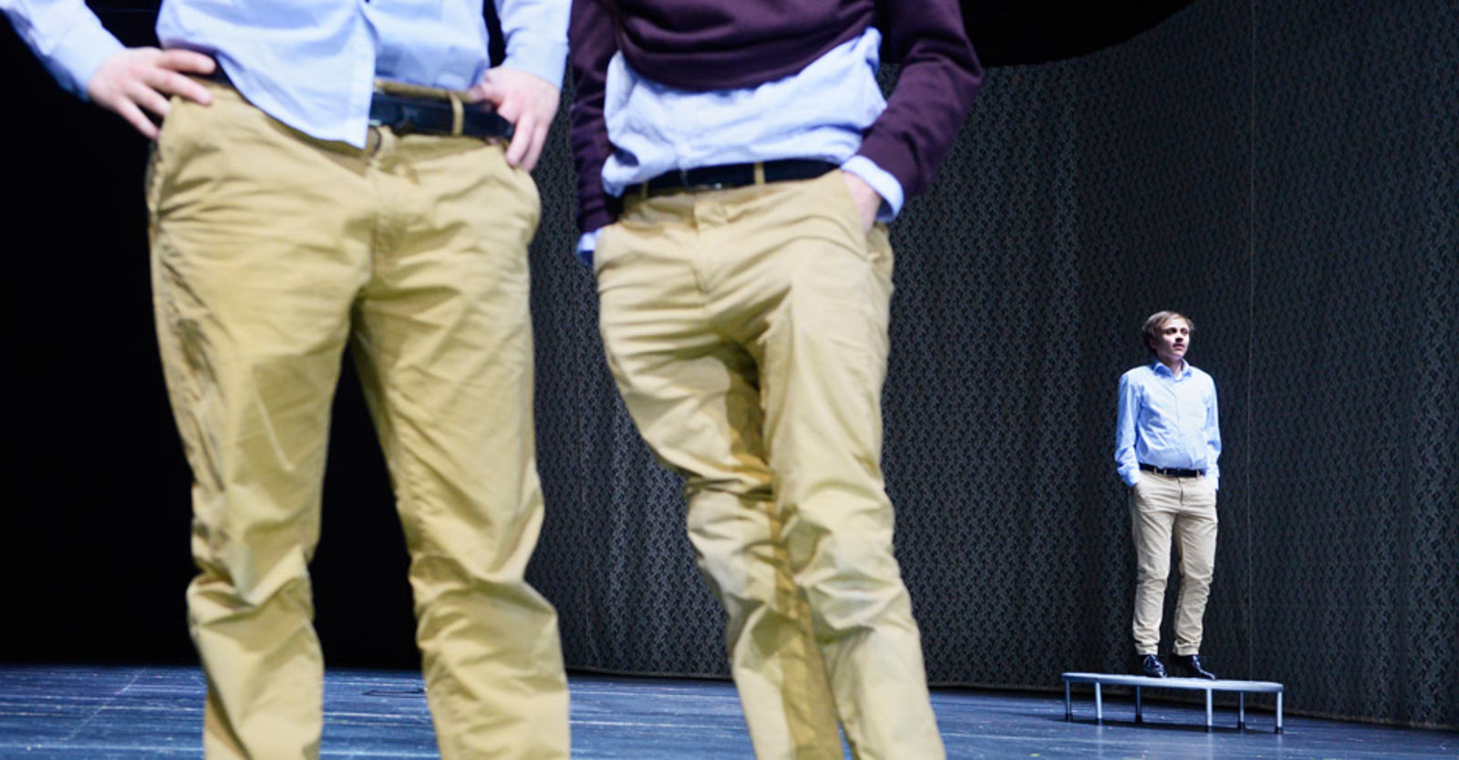 „Diesmal spielen drei Frauen – Hilke Altefrohne, Henrike Johann Jörissen, Lena Schwarz – die Rolle des Mannes, der durch die weibliche Besetzung vollends zur Kunstfigur wird. Die Kostümbildnerin Pascale Martin hat das Trio nahezu identisch eingekleidet: beige Hosen, hellblaues Hemd, darüber Pullover, Debardeur oder Sweatshirt. Alle tragen einen feinen Schnauz, die braun-blonden Haare sind streng nach hinten gekämmt. Auch darstellerisch variieren die drei ihren Grundtyp. Schwarz gibt sich, die Hände in den Hosentaschen, cool und überlegen; Altefrohne ist eher behäbig und hat fast schon gewohnheitsmässig die Hand im Schritt; Jörissen zeigt den missgelaunten kleinen Proll.“ Die Südostschweiz