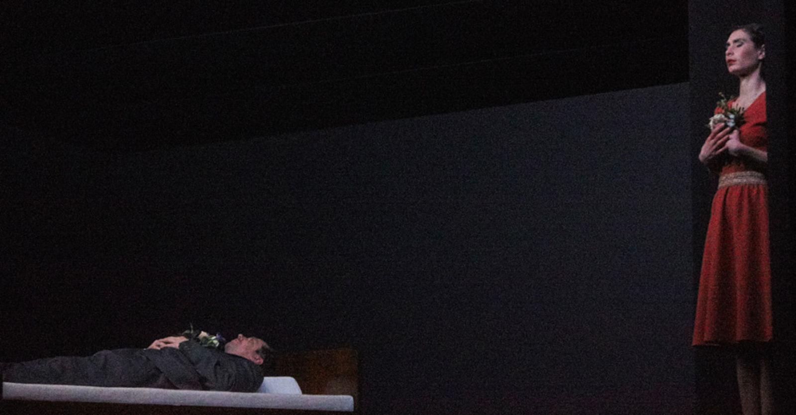 „Erwartungsvoll und schon fast totenstill ist es im Publikum, bevor es ganz dunkel wird. Ein grauer Screen zeichnet sich schwach im Dunkeln ab, man hört den Stundenschlag einer kleinen Kirche. Elf – zwölf – dreizehn … über Mitternacht hinaus, die Glocke schlägt weiter und weiter. Im Zimmer oben geht Licht an, ein Mensch im Bett. Der pulsierende Klang setzt sich fort, das Licht geht aus und wieder an. Eine Figur steht vor dem Bett. Aus – an, präzis für Nächtliches eingerichtet von Rainer Küng. Der Mensch im Bett hat einen Blumenstrauss in den Händen auf der Decke. Ob das eine Totenwache ist? Flashes auch draussen, rechts vor dem grauen Screen. Draussen unter einer Strassenlaterne sitzt ein Mann auf einer Bank. Drinnen – draussen: wie Filmstills erstarrte Bewegung, Fraktale einer Geschichte, die in der Phantasie der Zuschauer ihren Ablauf sucht, perfekte Projektionsfläche für Assoziationen und reiner Genuss zum Schauen und Hören.“ seniorweb.ch