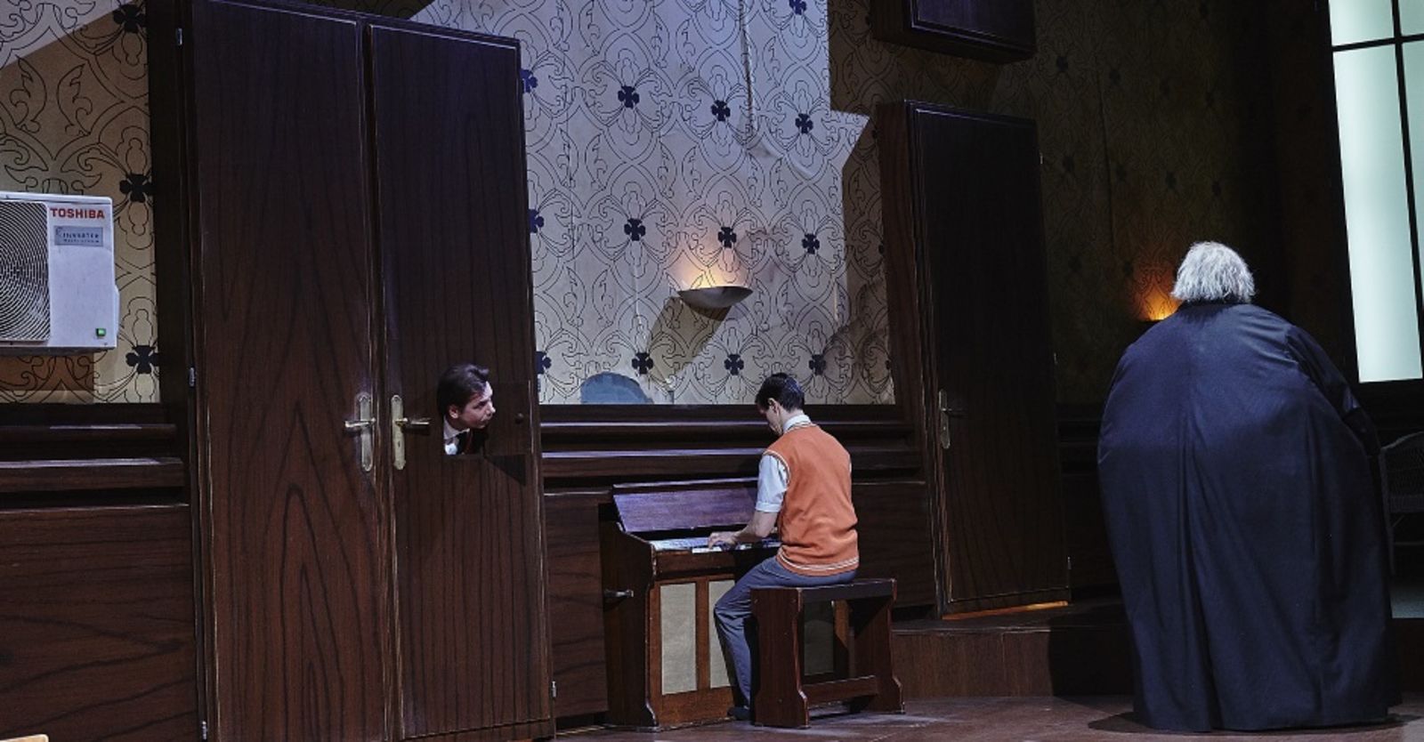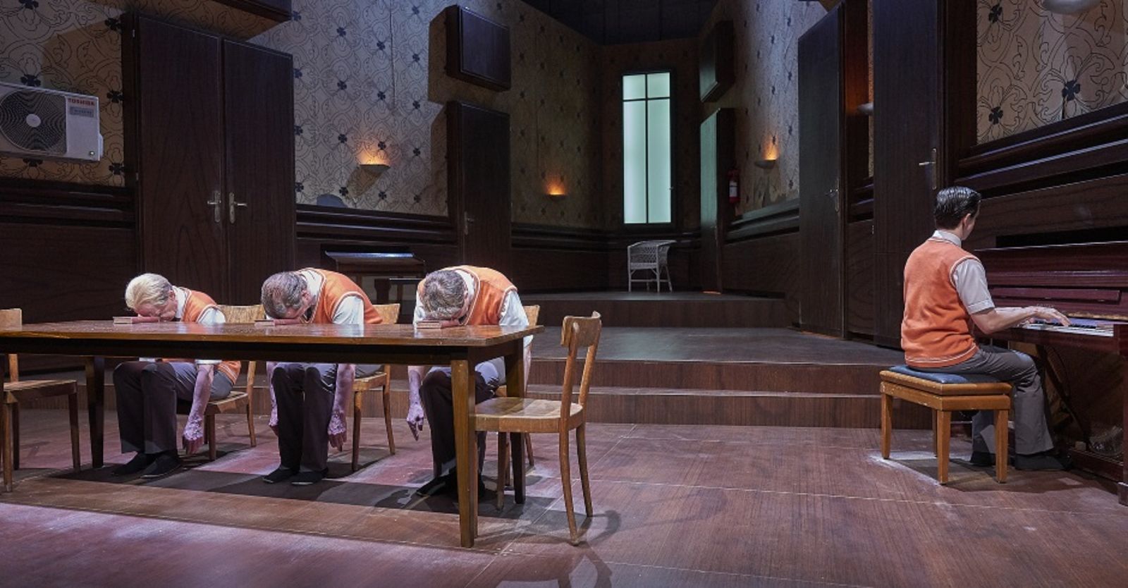 „In diesem dumpfen Gehäuse vegetieren vier betretene Zöglinge: in orangen, ärmellosen Pullovern über weissen, kurzärmeligen Hemden, schwarzen Krawatten und grauen Hosen. Einer von ihnen, Michael Maertens, übernimmt dann den Part des Jakob von Gunten, der sich freiwillig in diese Schule der Erniedrigung begeben hat, um sich in Demut zu üben, seine Aufmüpfigkeit aber nicht ganz lassen kann. Ein anderer, Hans Kremer, schlüpft von der Rolle des Mitschülers Kraus alsbald in die des Institutsleiters Benjamenta, eines Kolosses von Mann, hinter dessen Sanftheit der Übergriff lauert. Der dritte Zögling ist Stefan Kurt: Hinreissend mutiert er immer wieder zum Fräulein Benjamenta, einer wandelnden Salzsäule, eingepfercht in ein enges, bodenlanges Kleid aus abgeschabtem Samt, das dieser tänzelnden verlorenen Seele unter dem Stoff die Arme in Achtungsstellung an den Leib schnürt. Der vierte Zögling schliesslich, der Musiker Iñigo Giner Miranda, begleitet das albtraumhafte Treten am Ort mit leisen Klängen am Klavier.“ Basler Zeitung