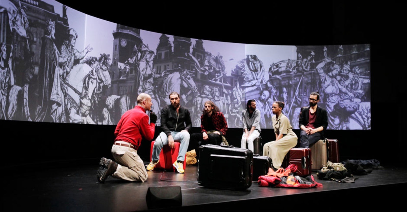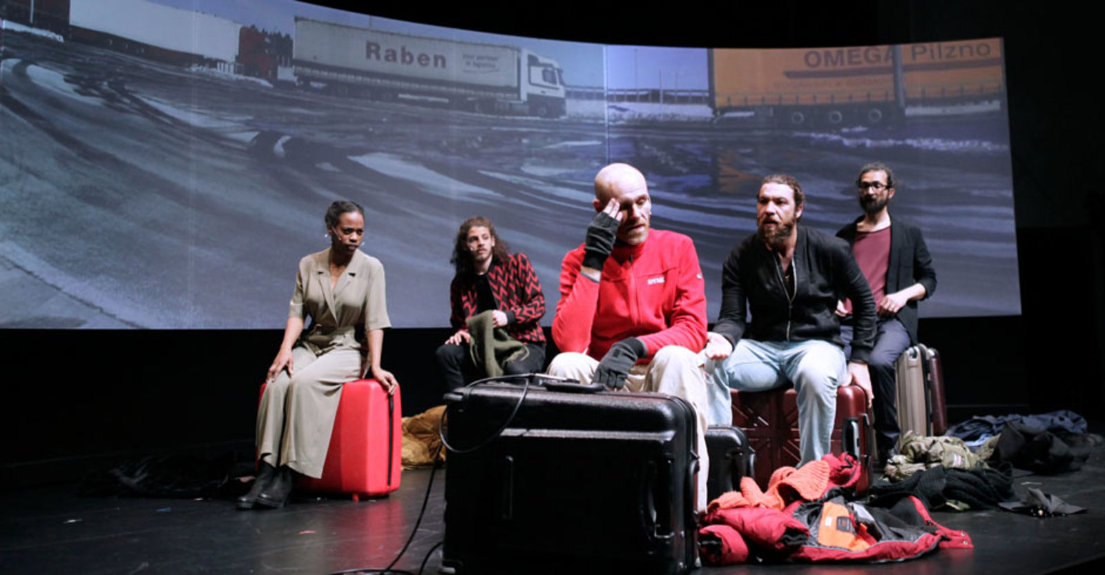 Januar, 2017. Das neu gegründete Exil Ensemble des Maxim Gorki Theaters Berlin – bestehend aus Neuberliner SchauspielerInnen aus Afghanistan, Syrien und Palästina – unternimmt eine zweiwöchige Bustour durch das winterliche Deutschland, mit einem Abstecher in die Schweiz. Was ist Deutschland oder die Schweiz? Niels, ein deutscher Kollege, beschliesst ihnen ein Deutschland und eine Schweiz zu zeigen, die anders können und mehr sind als Hitler, Dirndl und Alpen. Welchen Blick werfen Ayham Majid Agha, Maryam Abu Khaled, Hussein Al Shatheli, Karim Daoud, Mazen Aljubbeh, Kenda Hmeidan und Yael Ronen auf diese Exil-Länder? Wie nehmen sie das Zusammensein mit den Eingeborenen, mit den ExpertInnen, die versuchen, Deutschland und die Schweiz zu erklären, mit dem Busfahrer wahr? Welche gegenseitigen Annäherungsversuche gibt es, wie werden die Beziehungsverhältnisse ausgelotet? Bereits 2015 gastierte die israelische Regisseurin Yael Ronen mit „Common Ground“ im Pfauen.