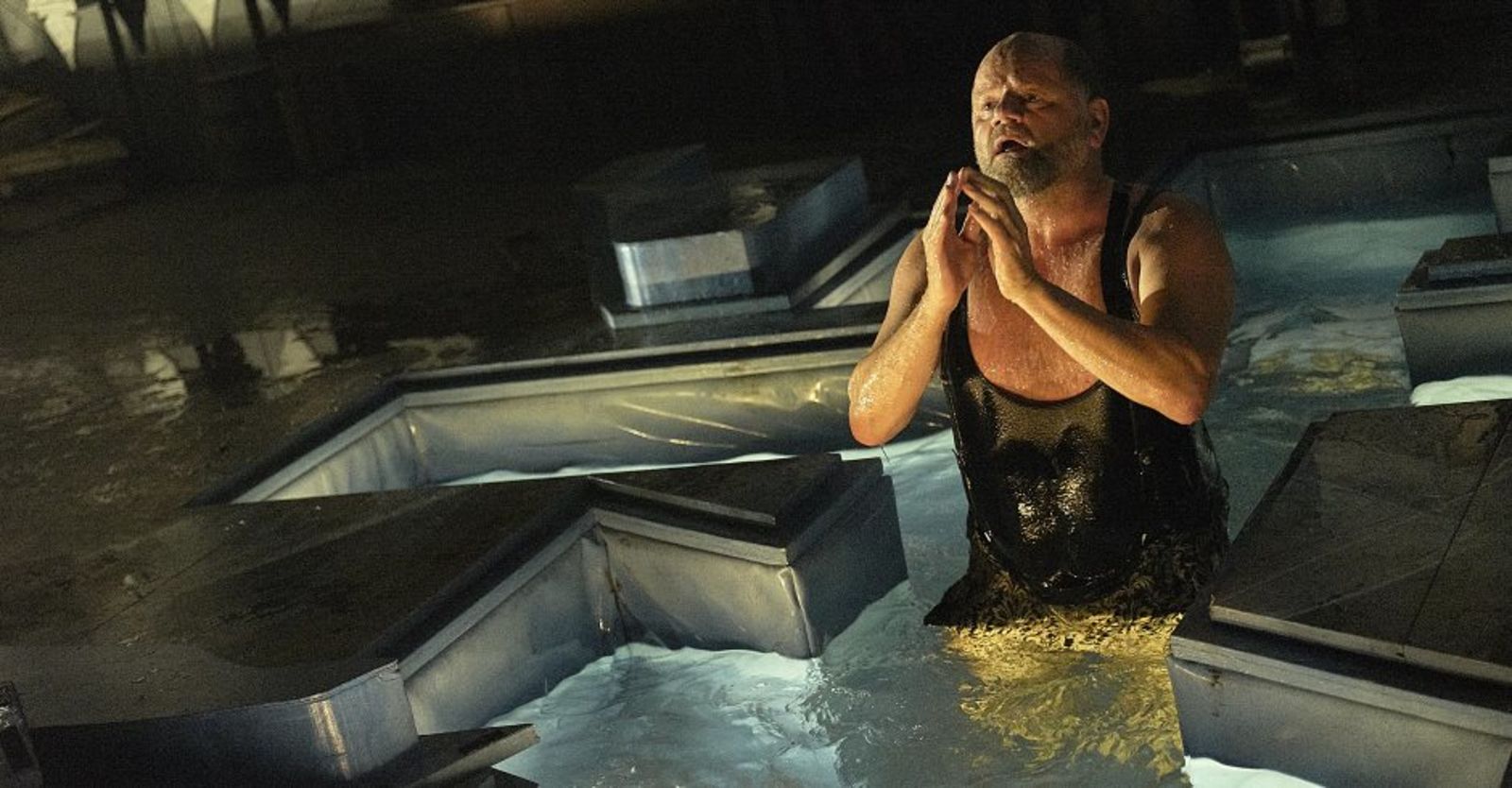 „Im Zürcher Schiffbau fügt Frank Castorf zwei Dostojewski-Erzählungen zu einem überwältigenden Badeerlebnis ineinander“ Nachtkritik.de