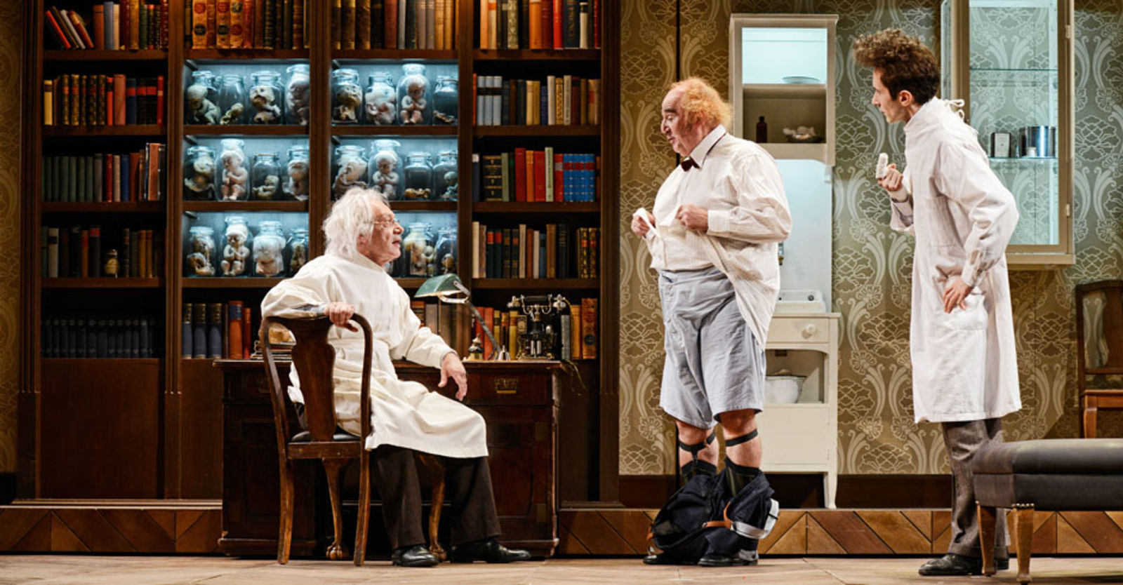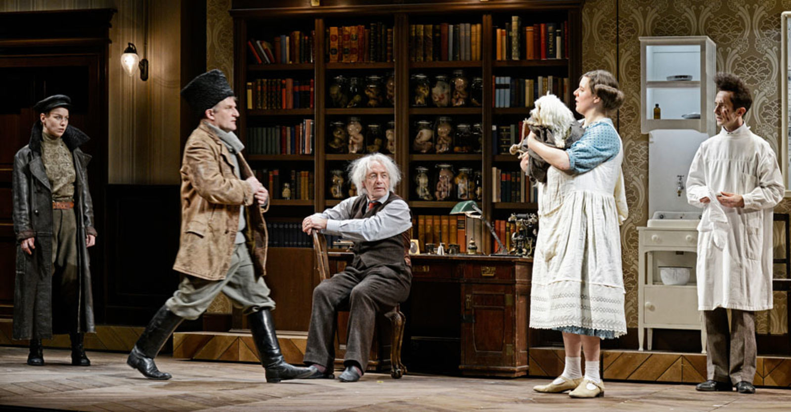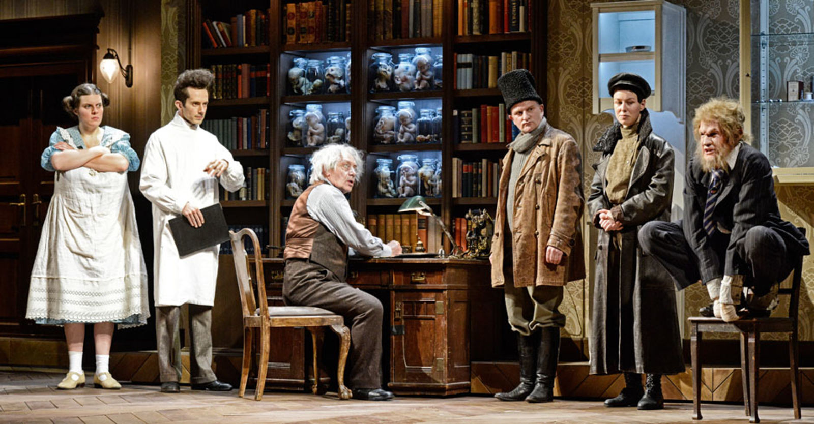 „Professor Filippowitsch – in der Person des grossartigen Schauspielers Robert Hunger-Bühler – ist ein grauhaarig-zerzauster Anhänger des Zarenreichs, der weder mit dem Proletariat noch mit der neuen kommunistischen Hausverwaltung zugange kommt. Ihm zur Seite der auftoupierte Assistent Doktor Bormenthal (Claudius Körber), ein drahtiger Weisskittel mit Hang zum Übereifer. Darja (Vera Flück) als üppig gebaute Magd dient an beiden Tischen.“ St. Galler Tagblatt