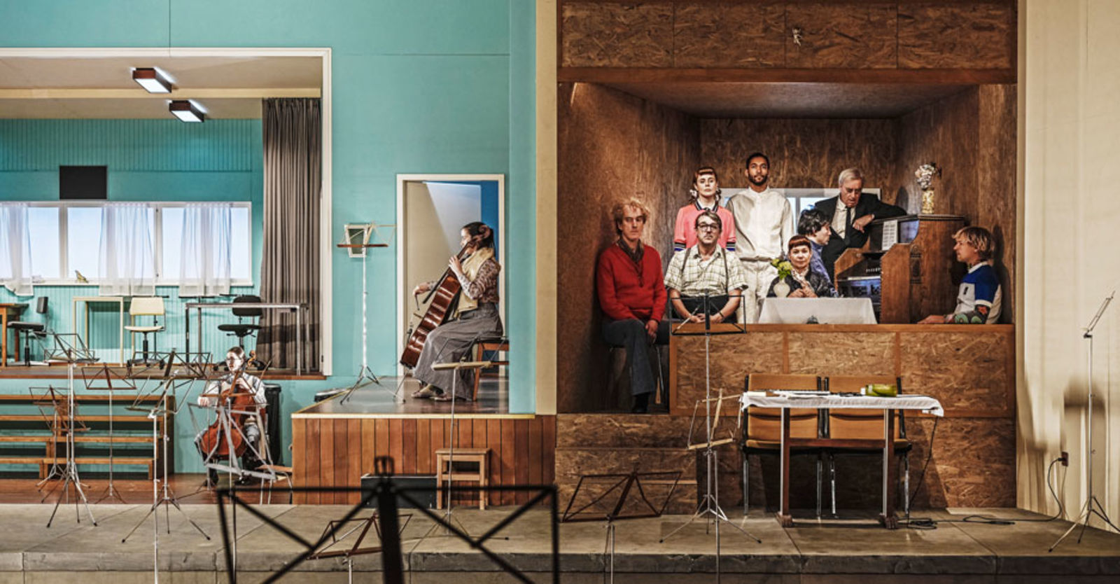 Der Titel von Christoph Marthalers erster Inszenierung in der Halle seit über zehn Jahren klingt rätselhaft? Ja. Und nein. Denn alles wird rasch übersichtlicher, wenn sich herumspricht, dass der Titel gar nicht von Marthaler, sondern von dem amerikanischen Komponisten John Cage (1912 – 1992) erfunden wurde. Und zwar als Überschrift für ein 1976 entstandenes Werk, das vom simultanen Erklingen amerikanischer Kirchengesänge handelt und von heftigen Auflösungserscheinungen hinsichtlich der Wahrnehmung von Raum und Zeit. Kein Wunder, dass Marthaler und sein Ensemble dem Eintritt in diese frei schwebenden Klanglandschaften mit einiger Vorfreude entgegensehen. Und weil die von Cage betriebene Wechselwirkungsforschung in den Bereichen Natur, Zufall, Alltag und Erleben erst dann ihre volle Wirkung entfaltet, wenn scheinbar Unzusammenhängendes aufeinandertrifft, öffnet sich in „44 Harmonies from Apartment House 1776“ ganz unvermittelt noch die Tür zu einem von John Cage besonders bewunderten Universum: der majestätisch wuchernden Welt der Pilze!
