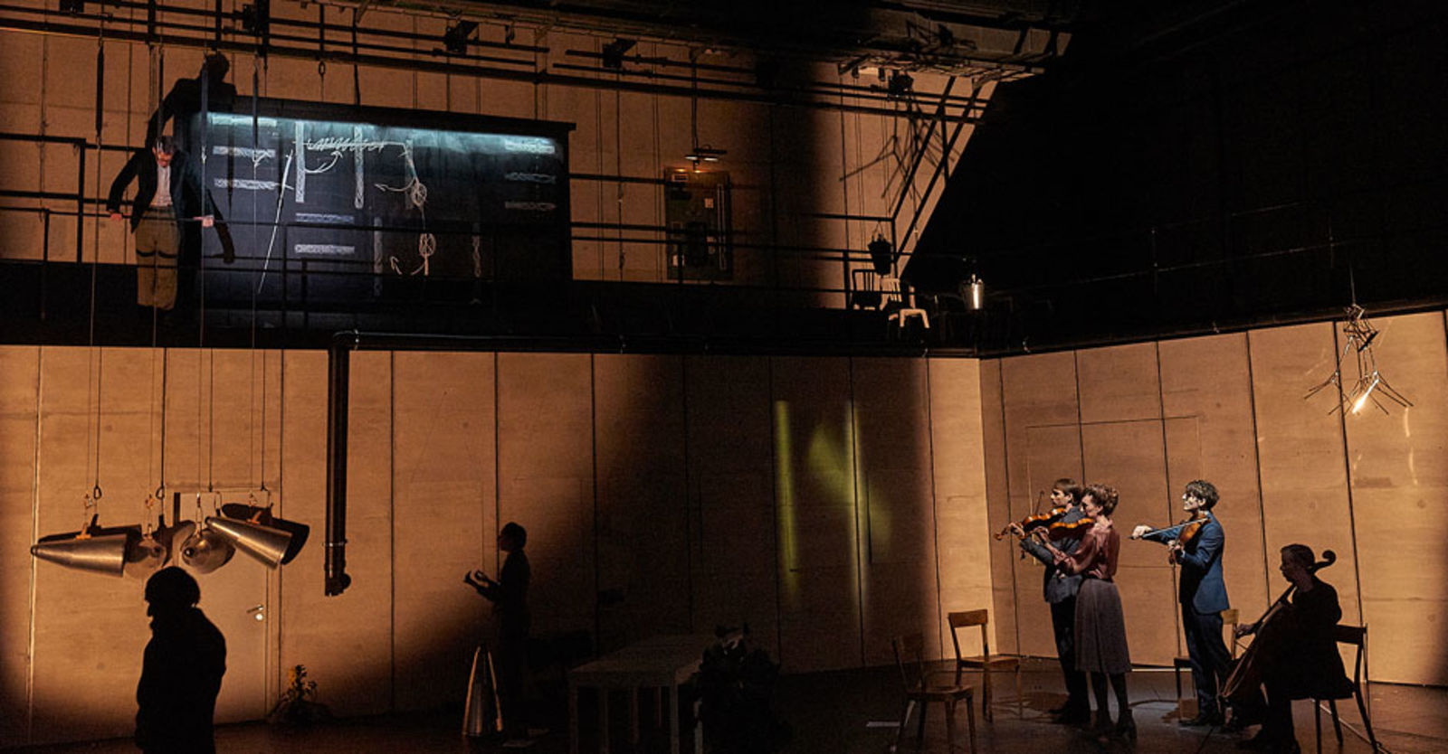 In Ruedi Häusermanns zehnter Arbeit am Schauspielhaus Zürich stehen die vier MusikerInnen des Henosode-Quartetts (Henosode auf Berndeutsch: so ist es eben) zusammen mit sieben SpielerInnen auf der Bühne. Gemeinsam erkunden sie geheimnisvolle Verbindungen zwischen Musik und Raum und machen verschiedene Versuche: Wie wandert eine Wolke? Wie kann man Menschen und Dinge zum Verschwinden bringen? Wie fängt man ein Echo ein? Es geht um Konzentration, Hingabe und die Entdeckungen, die man machen kann, wenn es kein Ziel gibt. Häusermann erzählt vom Staunen über das, was man zustande bringt in der Kunst: sich scheinbar mit nichts zu beschäftigen. Der Abend, der wie immer ein heimliches Konzert ist, gipfelt in einer Überraschung – in einer grob-feinen Hymne ans Theater. Mehr darf hier nicht verraten werden.