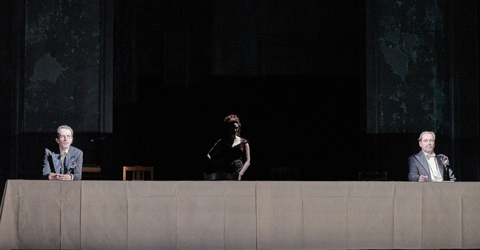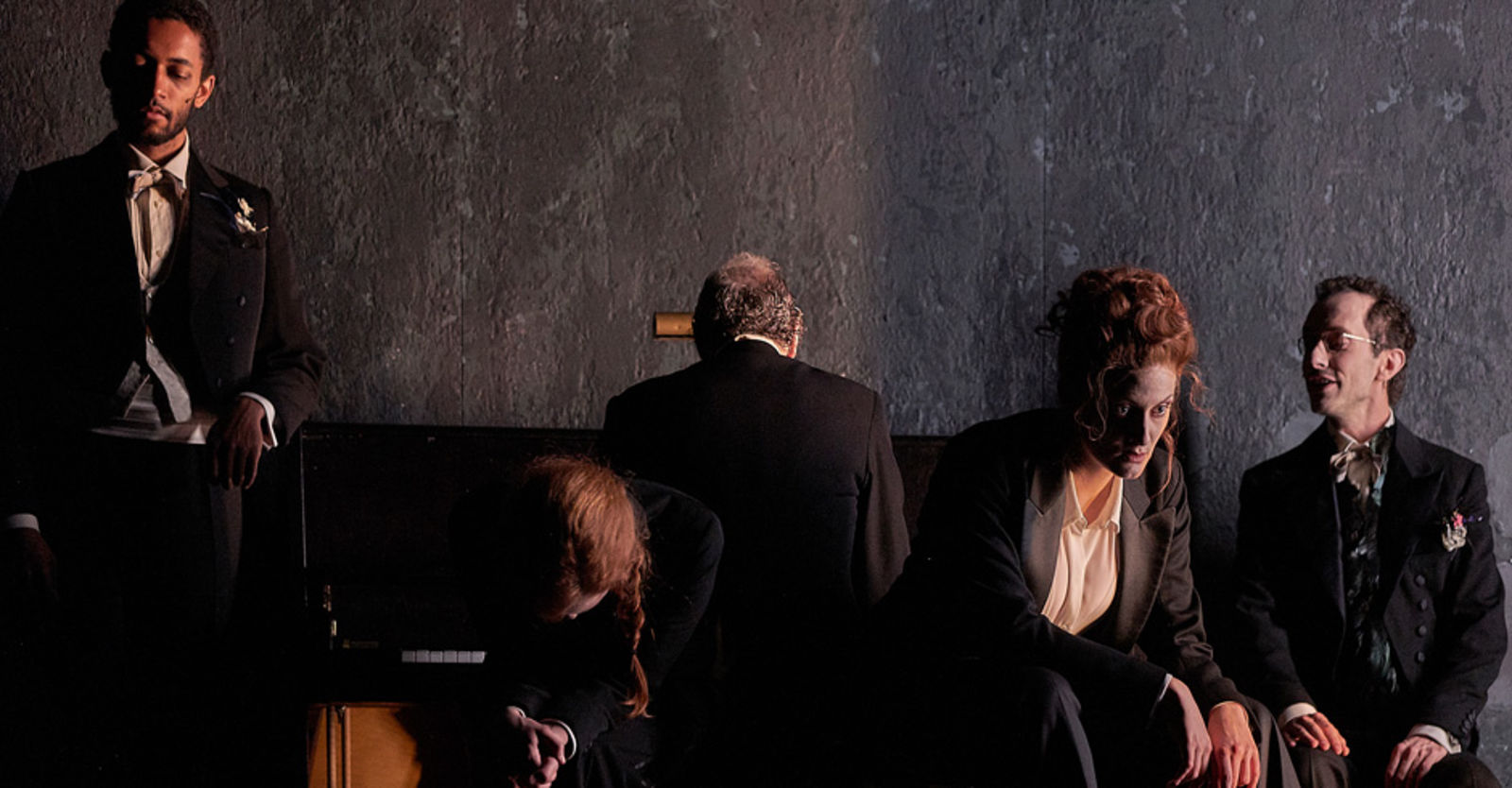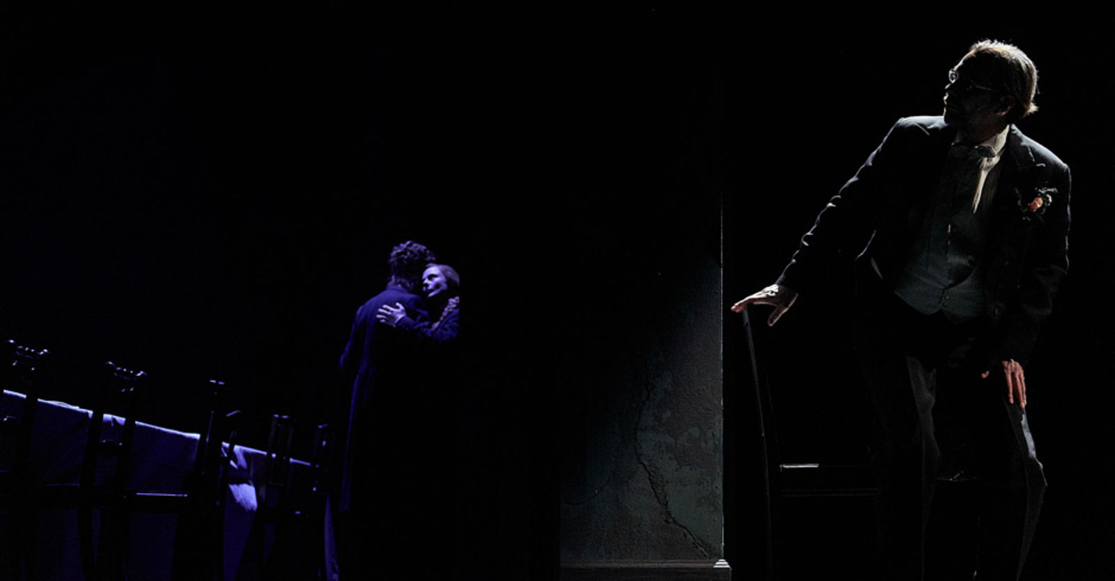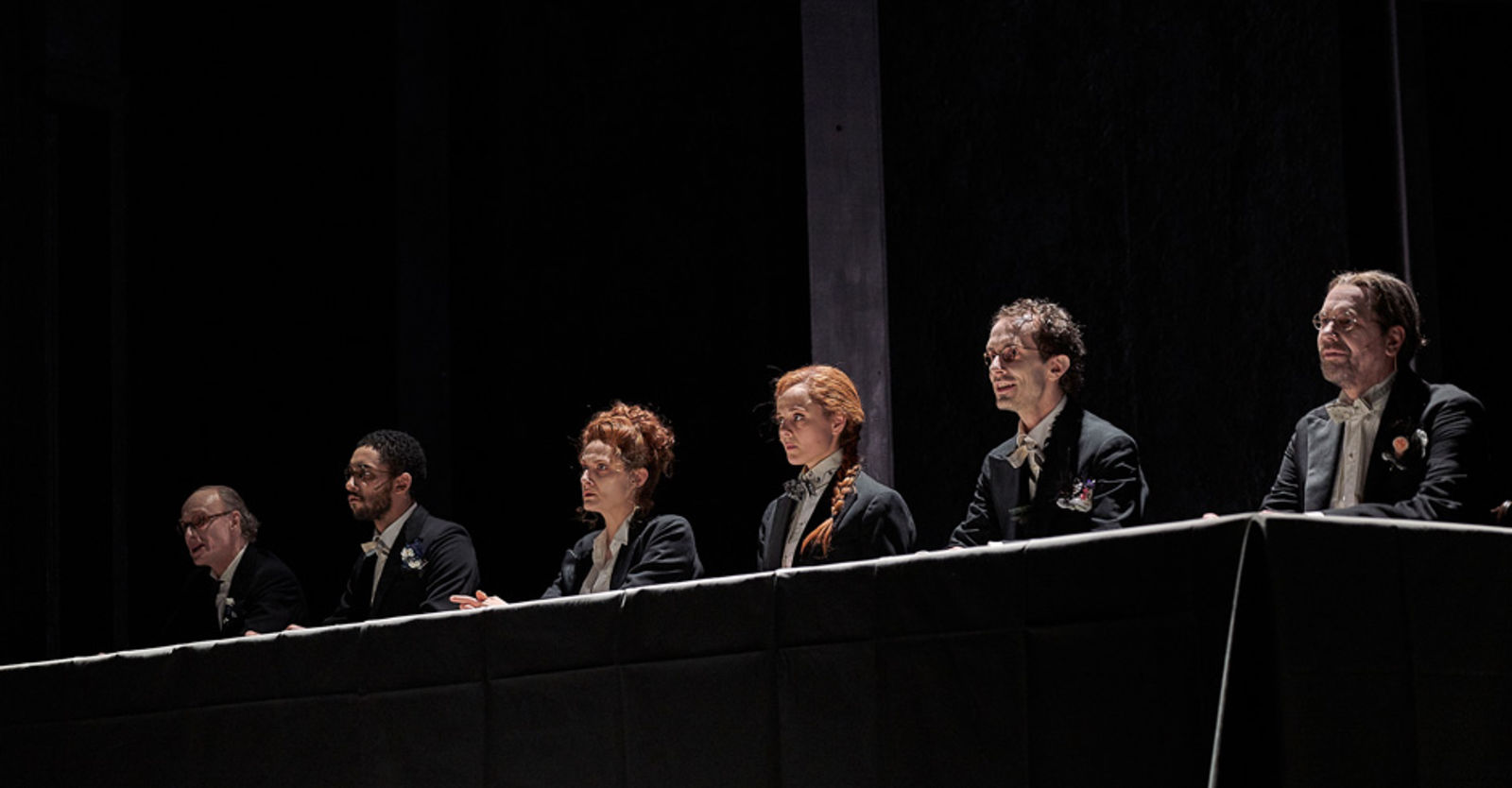In diesem Zustand befindet sich Gabriel Conroy – die Hauptfigur aus der Erzählung „Die Toten“ von James Joyce – nachdem seine Frau ihm eröffnet hat, dass sie vor der Ehe eine leidenschaftliche Beziehung zu einem jungen Mann unterhalten habe, der ihretwegen gestorben sei. Das Fortleben der Toten unter den Lebenden ist eines der Themen dieses Projekts, das Barbara Frey als die letzte Produktion ihrer Intendanz am Schauspielhaus Zürich gewählt hat. Es ist James Joyce gewidmet, der viele Jahre seines Lebens in Zürich verbracht hat und auch hier gestorben ist – wenige Tage nach einem Gastmahl in der Kronenhalle. Sein Geist ist wieder auferstanden und erobert nun die Bühne des Pfauen. „Die Toten“ sprechen mit vielen Stimmen auf uns ein. Eine entfesselte Sprache im fliessenden Übergang zu Musik. Sie singen und tanzen und erzählen vom kleinen Glück und von der Enge des Lebens in Dublin, der Stadt, die für Joyce die ganze Welt bedeutete.