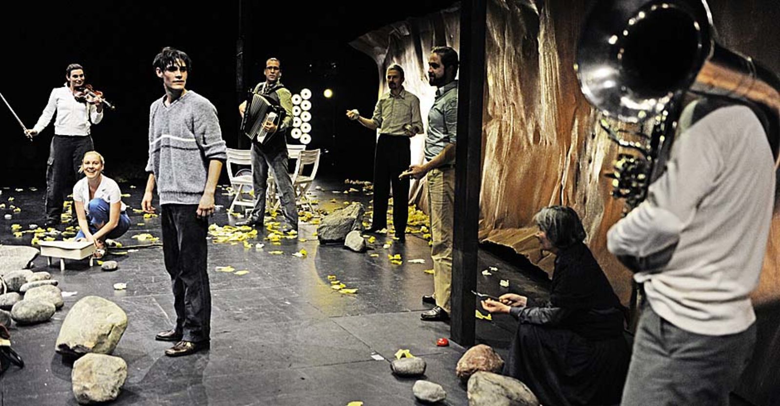 Der „weite Weg“ führt im Stück des englischen Autors Charles Way durch das ganze Leben: Aus Liebe zog die junge Gaia vom Meer ins Dorf ihres Mannes im Wald. Jetzt, wo ihr Mann tot ist und die Söhne fort sind, will sie zurück ans Meer. In einem Laubhaufen findet sie einen verwilderten Jungen. Sie sucht für ihn ein Zuhause – findet aber keines. So ziehen sie gemeinsam weiter und haben Abenteuer und Prüfungen zu bestehen. Schliesslich erreichen sie das Meer. Im Heimatdorf von Gaia ist jedoch nichts mehr so, wie es war. Regie in der Box führte Enrico Beeler, der in der Spielzeit 2009/10 in der Matchbox „Stones“ und „Ein himmlischer Platz“ inszenierte.