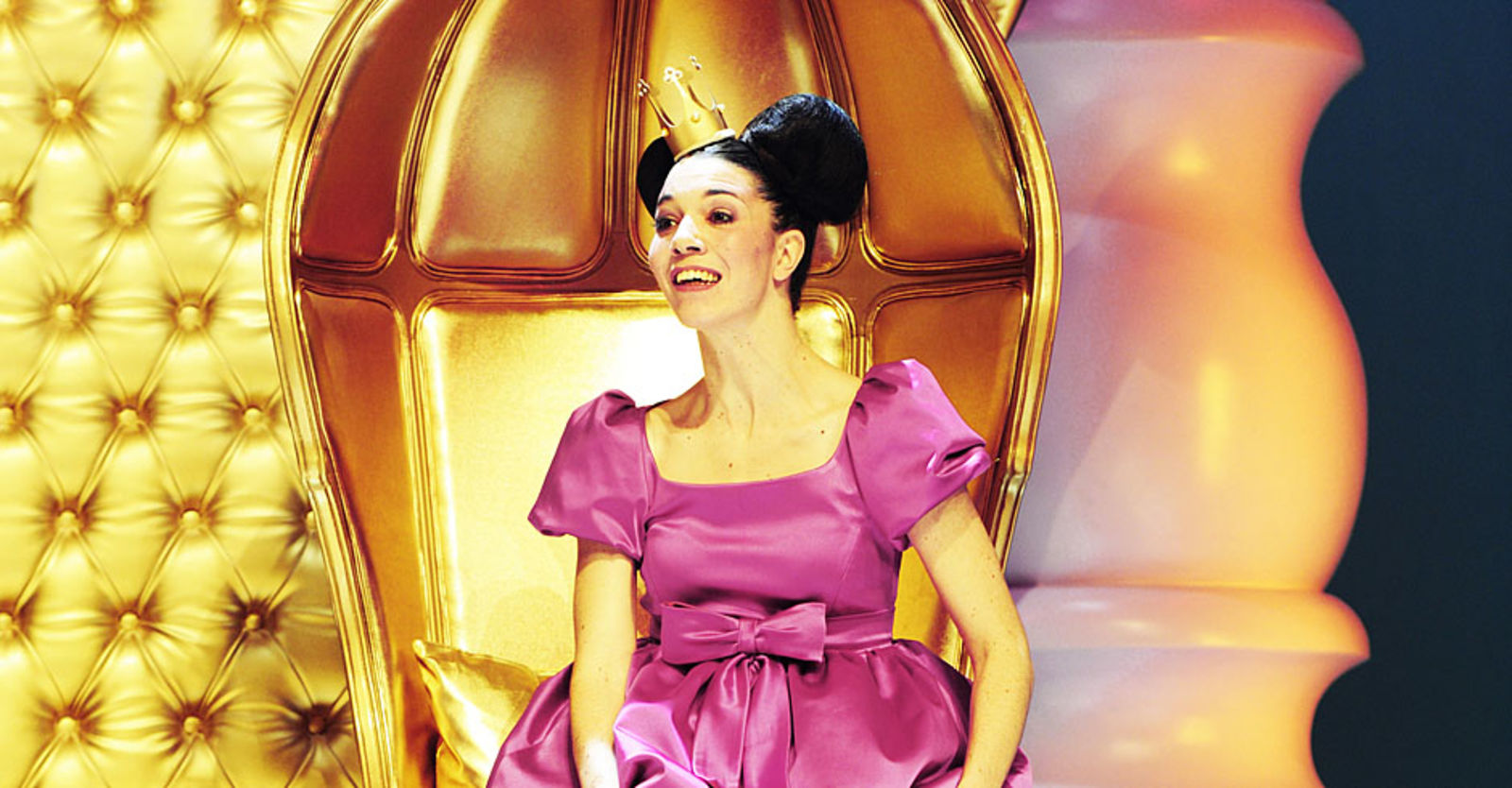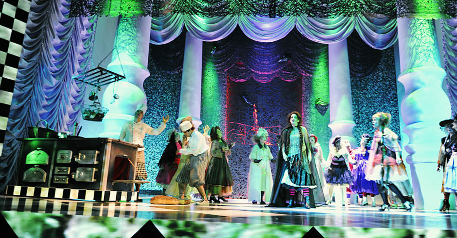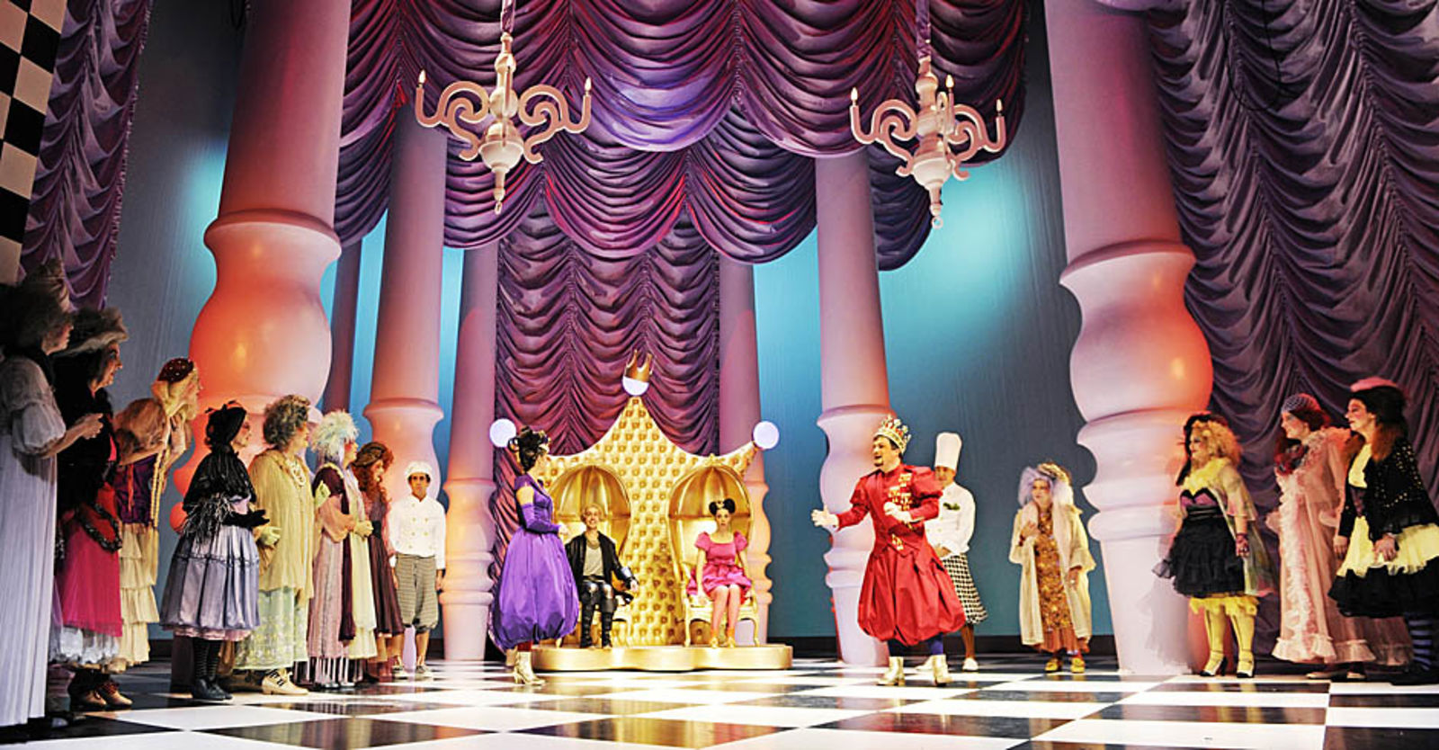 „Punkto Ausstattung (Henrike Engel) kann es die Produktion mit jedem Disney-Film aufnehmen. So entstehen, auch mittels Projektionen, immer wieder neue Räume auf der Bühne, einer pompöser als der andere. Die Kostüme sind von glitzernder Opulenz.“ NZZ