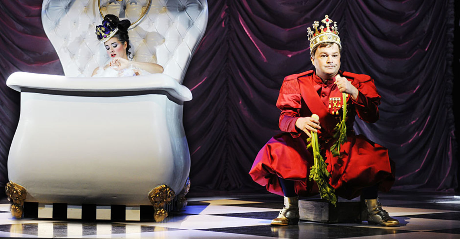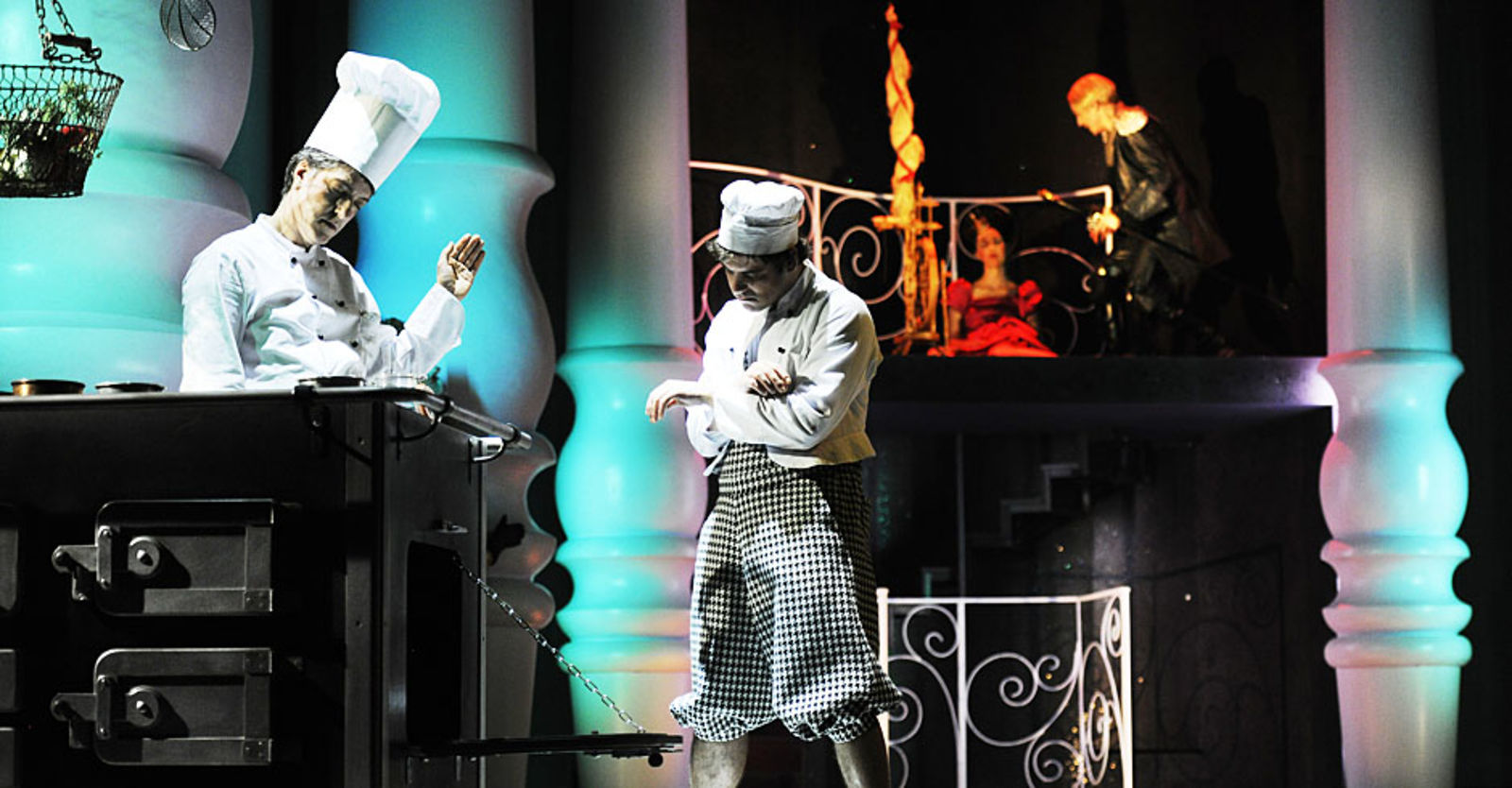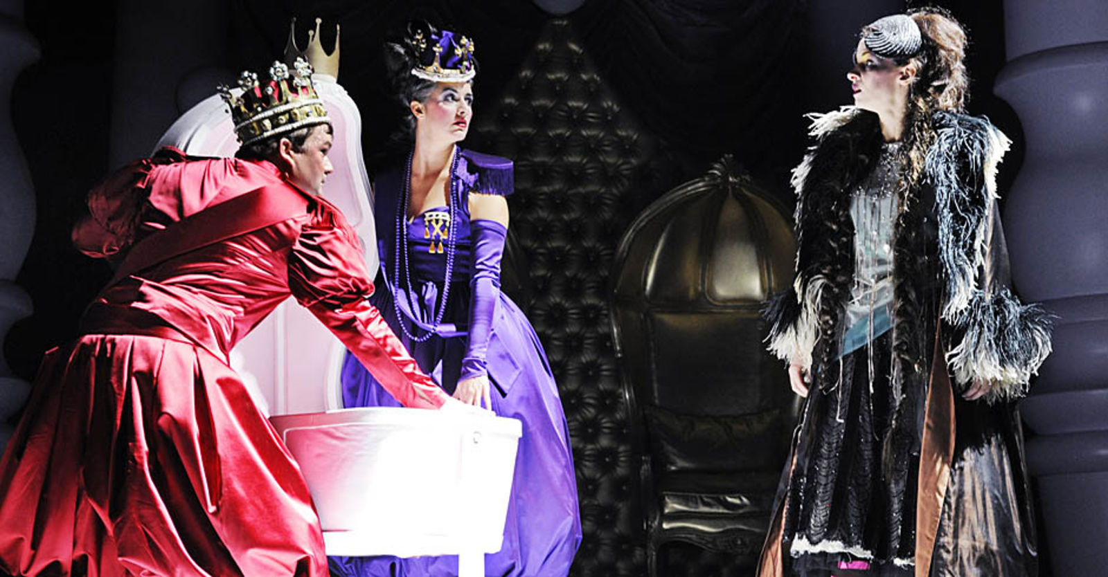„Punkto Ausstattung (Henrike Engel) kann es die Produktion mit jedem Disney-Film aufnehmen. So entstehen, auch mittels Projektionen, immer wieder neue Räume auf der Bühne, einer pompöser als der andere. Die Kostüme sind von glitzernder Opulenz.“ NZZ
