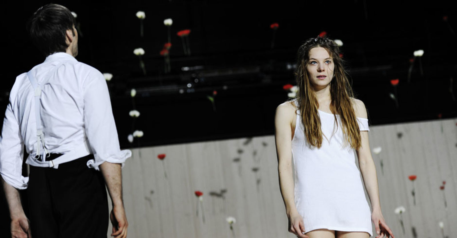 Wie der Blitz schlägt der Graf Friedrich Wetter vom Strahl im Leben des Mädchens Käthchen ein, der Tochter eines Heilbronner Waffenschmieds. Käthchens Waffe, so Kleist, ist „gänzliche Hingebung“, nur durch sie gelangt sie über hochdramatische Umwege ans Ziel … Die Inszenierung fällt in das 200. Todesjahr eines Dichters der Unruhe und der Unbedingtheit. Regie führte der auch in Deutschland erfolgreiche Prager Theaterleiter Dušan David Pařízek, der sich letzte Spielzeit in Zürich mit „Gestern“ von Agota Kristof vorstellte.