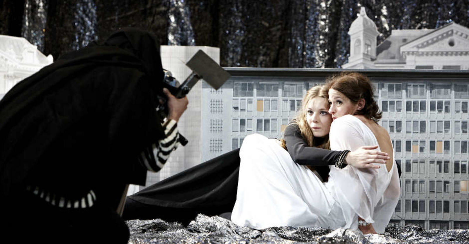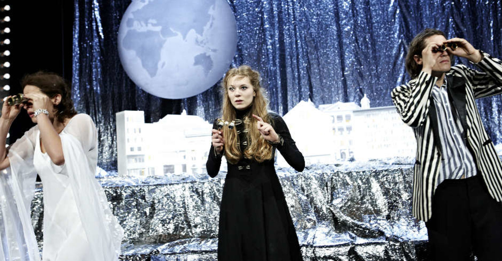 Das Publikum ist schon da und die Schauspieler streiken. Drei Übriggebliebene versuchen ein Theaterstück auf die Beine zu stellen, etwas wie „Unsere kleine Stadt“, fragen sich aber: „Wieso müssen w i r denn jetzt ran?“ – „Na, weil Kreativität nunmal von jedem erwartet wird. Dagegen kannst du nichts tun. Früher hätten wir dann wenigstens eine Rolle spielen können, aber jetzt müssen wir wir selbst sein. Jetzt betrifft es alle. Zieh das an!“ Kreativität ist das beherrschende Thema in „Fahrende Frauen“, der neuen Diskurskomödie von René Pollesch (zuletzt in Zürich mit „Calvinismus Klein“).