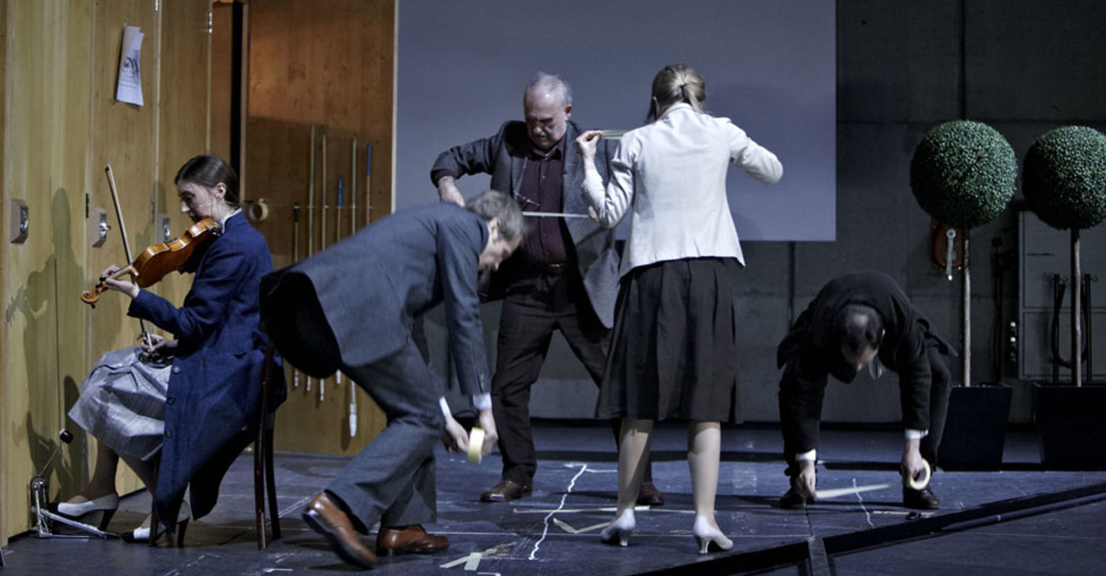 Mit Ferdinand Hodler (1853–1918) stellt der Schweizer Komponist und Regisseur Ruedi Häusermann zum ersten Mal einen bildenden Künstler und einen der wichtigsten Maler der Schweiz ins Zentrum seiner musiktheatralischen Arbeit. „Der Motor ist immer, eine eigene Welt zu platzieren und wenn ich um jemanden kreise, ist es für mich wichtig, eine Atmosphäre zu schaffen, eine Umgebung, in der ihm dann der rote Teppich ausgerollt werden kann.“ Mit vier Schauspielern und vier Musikern erforscht Häusermann den Hodlerschen Kosmos auf die ihm eigene Weise und wendet sich dabei den weniger bekannten Seiten des Malers zu: Hodler hat berauschend schöne Landschaften von extremer farblicher und formaler Intensität geschaffen, ohne die bestimmte Entwicklungen der modernen Malerei kaum möglich gewesen wären. Seine Darstellungen des menschlichen Sterbens gehören zu den komplexesten in der Geschichte der Kunst und seine zahlreichen Selbstporträts zeugen von einer fortlaufenden, künstlerischen wie persönlichen Selbstbefragung. Auf poetische und humorvolle Weise konfrontiert Ruedi Häusermann diese Bilder mit Briefen und Notizen Ferdinand Hodlers, mit Texten von Robert Walser und Peter Bichsel und mit den so genannten „Hodler-Quartetten“ – einer Sammlung neuer Streichquartette, die eigens für den Abend in Zürich entstanden und „live“ zu hören sind. Text, Ton, Bild und Szene fügen sich in dieser musiktheatralischen Einsicht in eine übergreifende, fein verästelte Partitur, die nicht nur um den Maler Ferdinand Hodler und sein Werk kreist, sondern die Aufmerksamkeit auch immer wieder auf sich selbst lenkt und so von den Mitteln und Möglichkeiten der Kunst selbst erzählt.