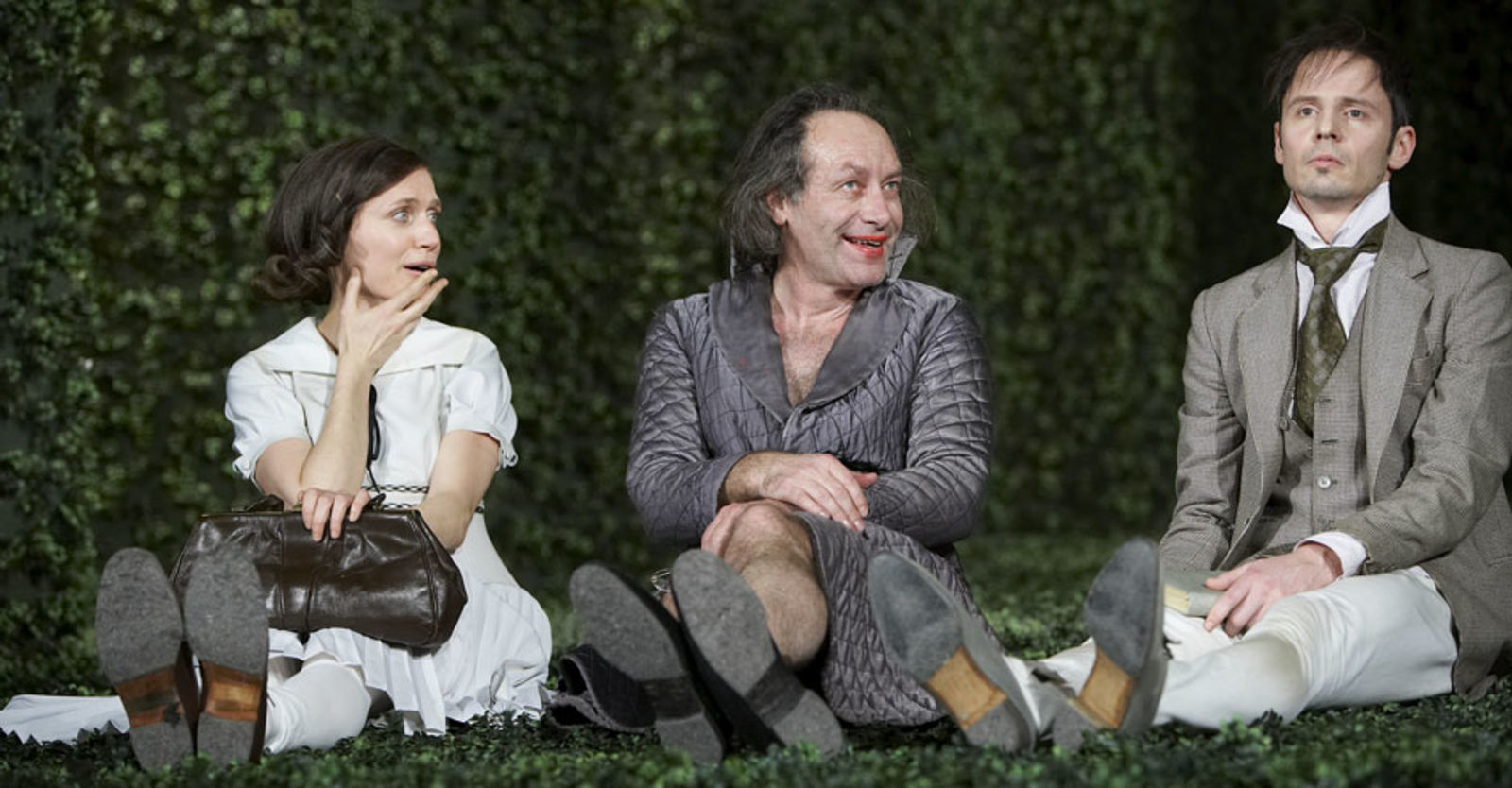 Triumph der Liebe“, geschrieben 1732, spielt im Park des Philosophen Hermokrates, in einem fiktiven antiken Griechenland (Marivaux hat etliche Namen Plutarchs Doppelbiographien entlehnt, dem „Leben von Agis und Kleomenes“, den Königen von Sparta). In diesem märchenhaften Land, in dem sich Hermokrates mit seiner Schwester Leontine und seinem Ziehsohn Agis in die Einsamkeit seiner Eremitage zurückgezogen hat, regiert Leonida, die Prinzessin von Sparta. Sie verfügt über ein Landschloss in der unmittelbaren Nachbarschaft und hat gewichtige politische und persönliche Gründe, in diesen Park, in dem die Weisheit, die Vernunft und der Verzicht das Mass aller Dinge sind, einzudringen. Leonida weiss, dass sie ihren Thron zu Unrecht einnimmt. Ihr Onkel, den sie beerbt hat, hatte sich durch eine Art Militärputsch an die Macht gebracht, nachdem seine Geliebte vom König entführt und geheiratet worden war – an die Macht gekommen, warf der Onkel das Paar ins Gefängnis. Der dort zur Welt gekommene rechtmässige Thronerbe Agis wiederum ist noch als Säugling entführt worden und geriet in die Obhut von Hermokrates und seiner Schwester, die ihn bis heute von allem Bösen fernzuhalten versuchen. Leonida hat Agis’ geheimen Aufenthalt aufgedeckt und will die alte Schuld wieder gut machen. Als persönliches Motiv kommt hinzu, dass Leonida Agis lesend im Wald angetroffen hat und von ihm bezaubert war. Einer Unbekannten, schon gar der verhassten Prinzessin, würde Hermokrates allerdings niemals gestatten, sich Agis zu nähern. Also will sich Leonida als gelehrsamer Jüngling mit Namen Phokion ausgeben, der beim weisen Hermokrates in die Schule gehen möchte. Und sie weiss, dass um an Agis’ Herz vorzudringen, auch an den Herzen von Hermokrates und Leontine kein Weg vorbei führt …