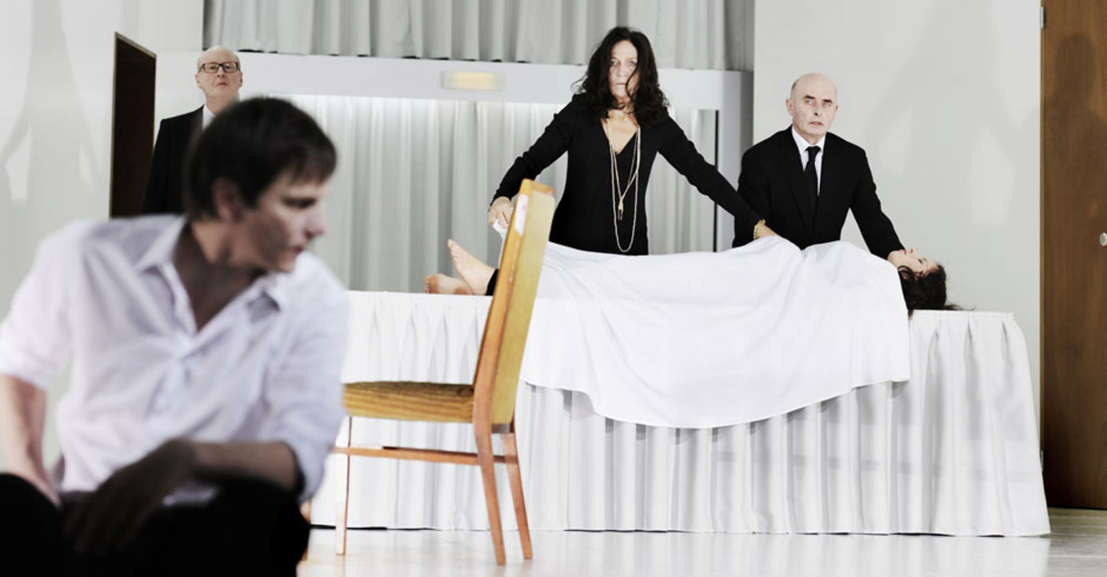 Admet, König von Thessalien, muss sterben, erhält aber von den Göttern die Möglichkeit, seinen Tod aufzuschieben, wenn ein anderer Mensch für ihn stirbt. Admet rechnet damit, dass seine alten Eltern das Opfer auf sich nehmen werden, doch weder sie noch andere Verwandte wollen für ihn in den Tod gehen. Nur Admets junge Frau Alkestis erklärt sich zum stellvertretenden Sterben bereit. „Alkestis“ setzt an dem Tag ein, an dem das Versprechen eingelöst werden muss. Euripides lässt Alkestis, anders als im Mythos, nicht unmittelbar nach ihrem Versprechen sterben, sondern es vergehen bis zu ihrem Todestag mehrere Jahre. Wie sieht Alkestis, die inzwischen Kinder hat, die sie liebt und nicht verlassen will, ihre Entscheidung aus dem zeitlichen Abstand? Wie hat Admet im ständigen Bewusstsein der heroischen Selbstaufopferung seiner Frau gelebt und wie die Familie im Wissen, dass jeder sich für das eigene Leben und gegen Admet entschieden hat? Alkestis stirbt und lässt Admet untröstlich zurück. Gerade weil er dem Tod ausgewichen ist, ist dieser nun umso präsenter – in den Erinnerungen an seine tote Frau, in den ausgesprochenen und unausgesprochenen Vorwürfen der Mitmenschen, in seinen Selbstmordgedanken. Aber die unerwartete Ankunft des Halbgottes Herakles bringt Hoffnung in das Geschehen. Vielleicht kann der Tod noch einmal überlistet werden und Alkestis von den Toten zurückkehren. Aber wird der zweite Handel zu einem glücklicheren Ende führen als der erste?