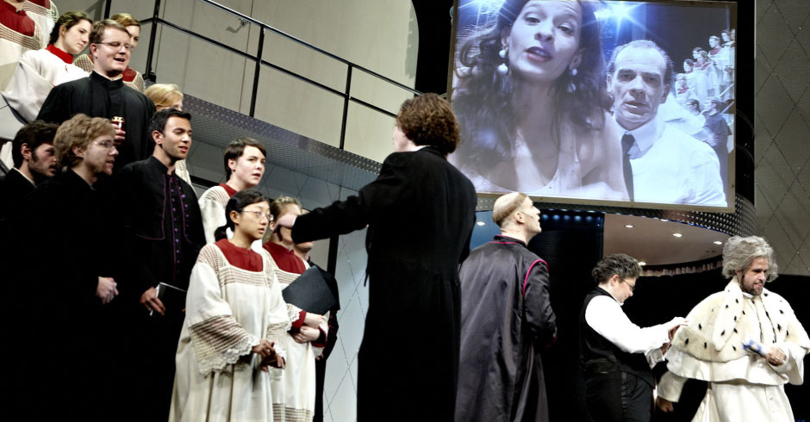 René Polleschs Theaterabende sind Angriffe auf die Gegenwart. Sie sind gleichermassen Boulevardkomödien und philosophischer Diskurs, verbinden persönliche und politische Fragestellungen mit Melodramatik und theatralischem Nonsens. Polleschs Stücke sind kongeniale sprachliche Antworten auf die globalen Lebens- und Arbeitszusammenhänge, er gilt als der profilierteste Theater-Analyst des Turbokapitalismus – auch nach dessen vermeintlichem Ende. Religion und Kapitalismus vermengen sich im Titel seines neuen, für Zürich geschriebenen Stücks. Calvinistische Ethik als Leitbild moderner Lebensführung ist für ihn dabei ebenso von Interesse wie die skeptische Frage nach dem Mitgefühl oder dem Wert dessen, was man liebt.