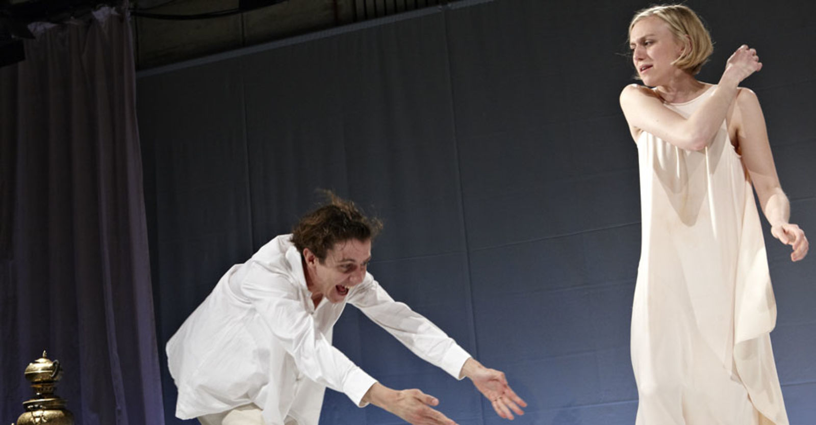 „Über die glatte weisse Fläche der Bühne, begrenzt von raumhohen Vorhängen (Bühne: Jochen Schmitt), gehen oder auch kriechen, turnen und rollen die Figuren, hängen mit ihren Sätzen, mit denen sie ihre sich wandelnden Gefühle und Beziehungen zu fassen versuchen und dabei gerade auch erst ihre Emotionen erfinden, wie Traumwandler im Stoff ihrer ins Märchenhaft-Phantastische auswachsenden Kostüme (Michael Sontag).“ NZZ