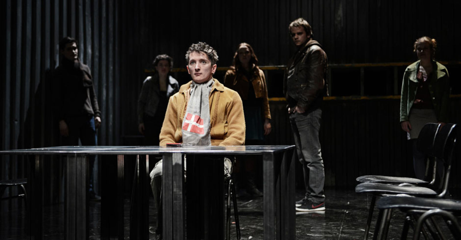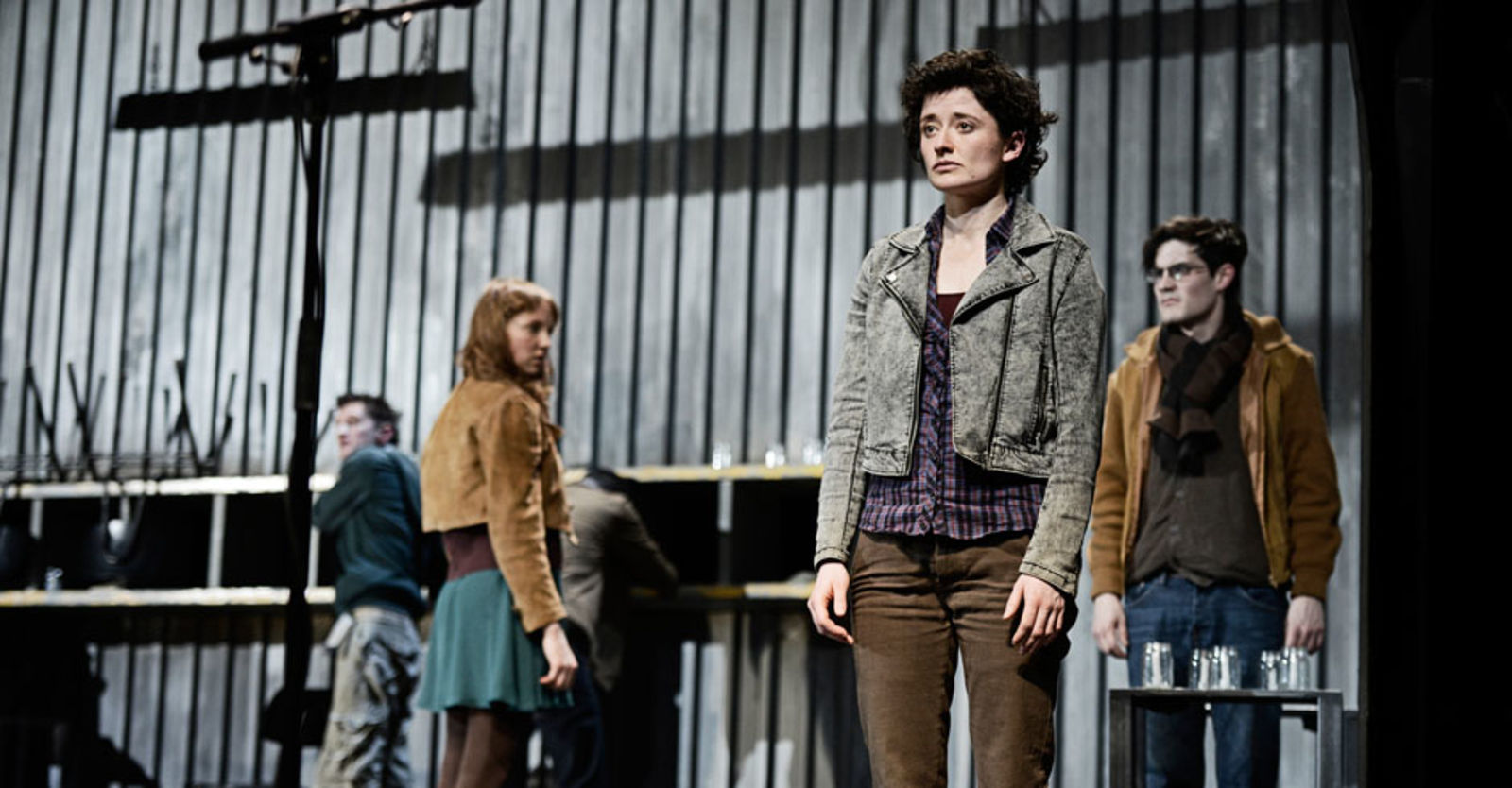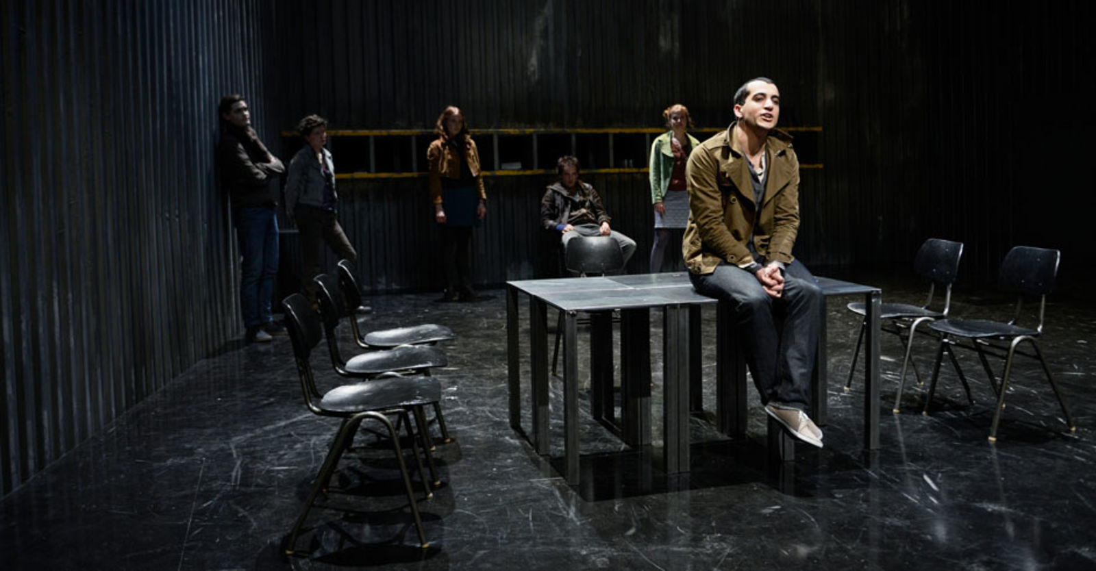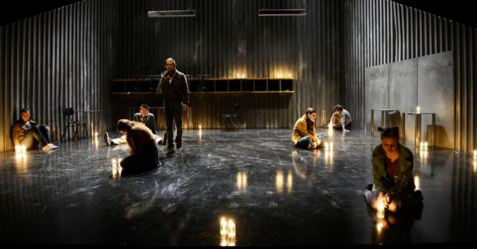 „Das sehr schlicht gehaltene Bühnenbild von Marc Totzke bietet einen stimmigen Rahmen dafür. Die Bühne ist auf drei Seiten von einer sehr hohen Wellblechwand umgeben, auf dem Boden stehen ein paar metallene Tische und an der hinteren Wand ist ein Regal angebracht. Damit wird optisch dargestellt, was die Jugendlichen fühlen: eine kalte Umwelt, deren Konventionen und Erwartungen sie umschliessen.“ kulturkritik.ch