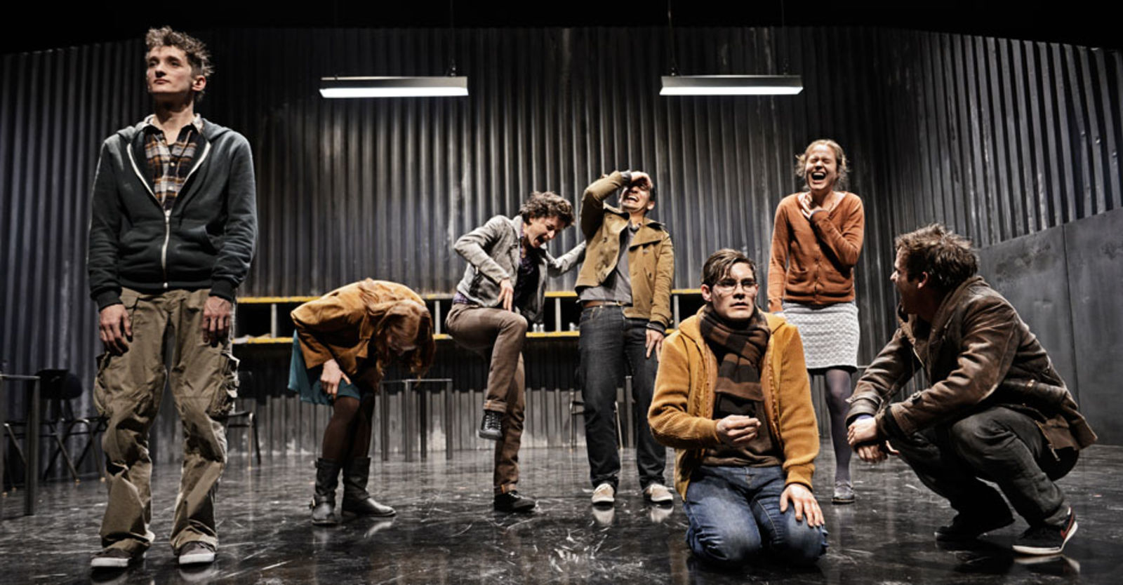 „So kühl wie Tellers Erzählton wirkt auch die Bühne (Mark Totzke) im Theater der Künste. In kaltem Neonlicht kämpft ein junges, starkes Ensemble den bald eskalierenden Kampf um das, was dem Leben Bedeutung gibt. Es fliesst kein Blut, Requisiten gibt es kaum. Hart ist der Abend dennoch. Der Fokus liegt auf der Sprache: Es wird geschrien, geflüstert und getobt, bis die drei grossen Wellblechwände zittern. Zudem ist da eine starke Körperlichkeit: Siegessicher wird Streetdance getanzt, verzweifelt die Wände hochgeklettert.“ Tages-Anzeiger
