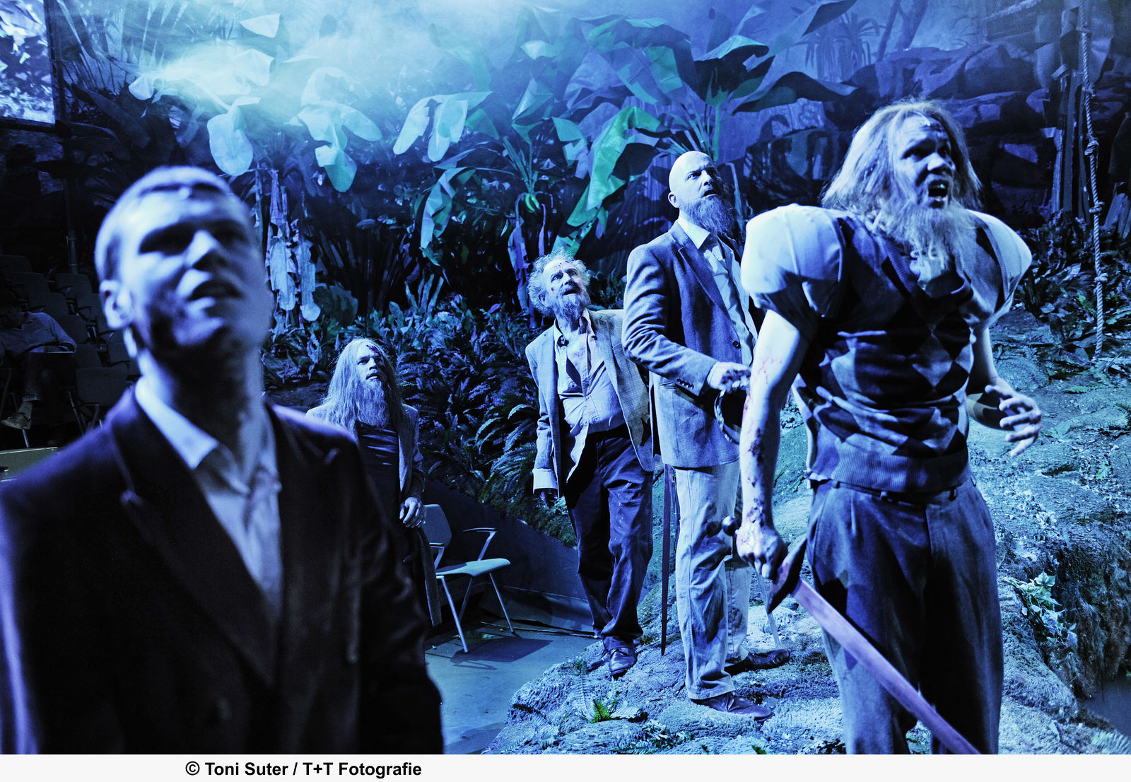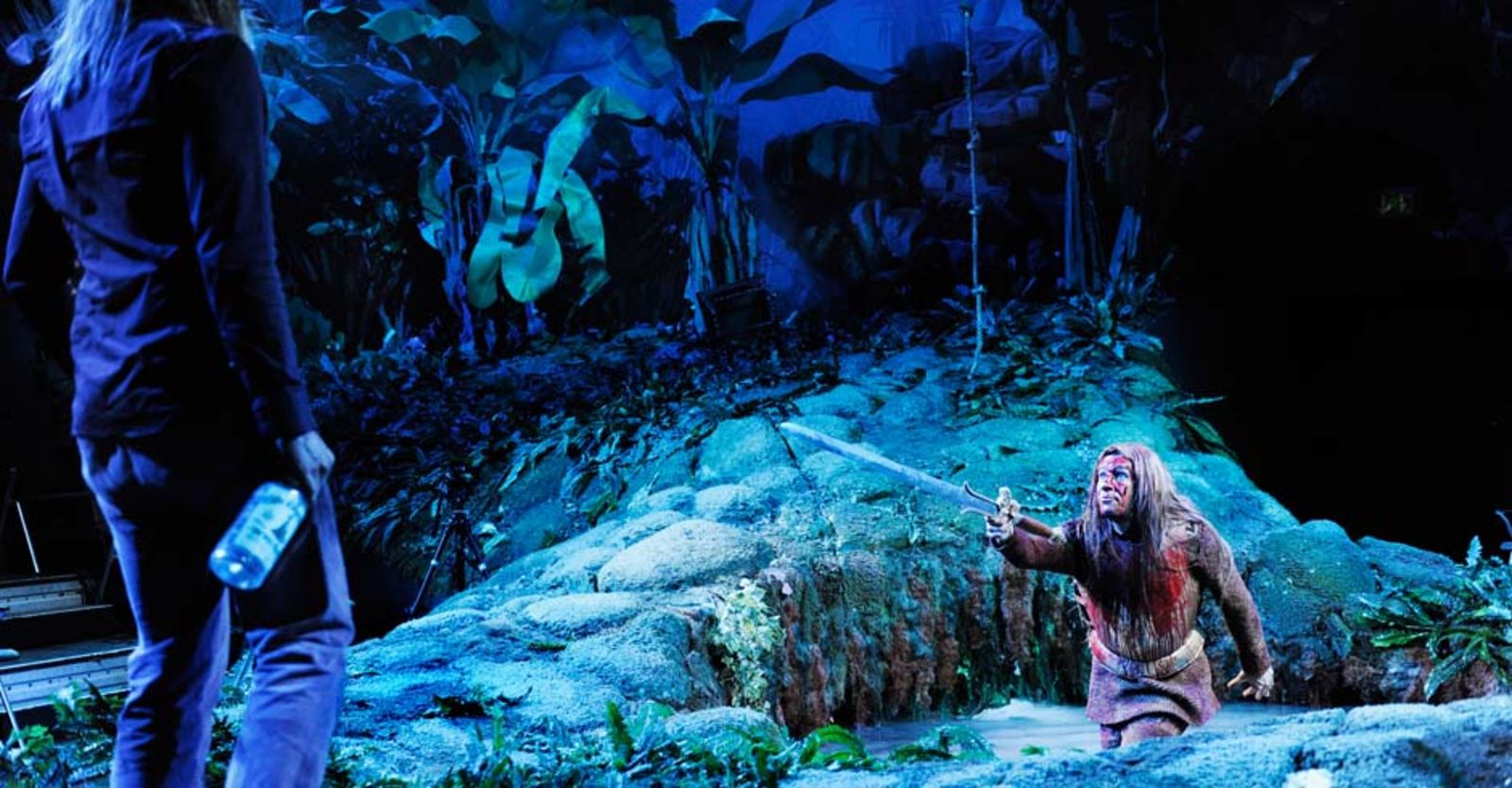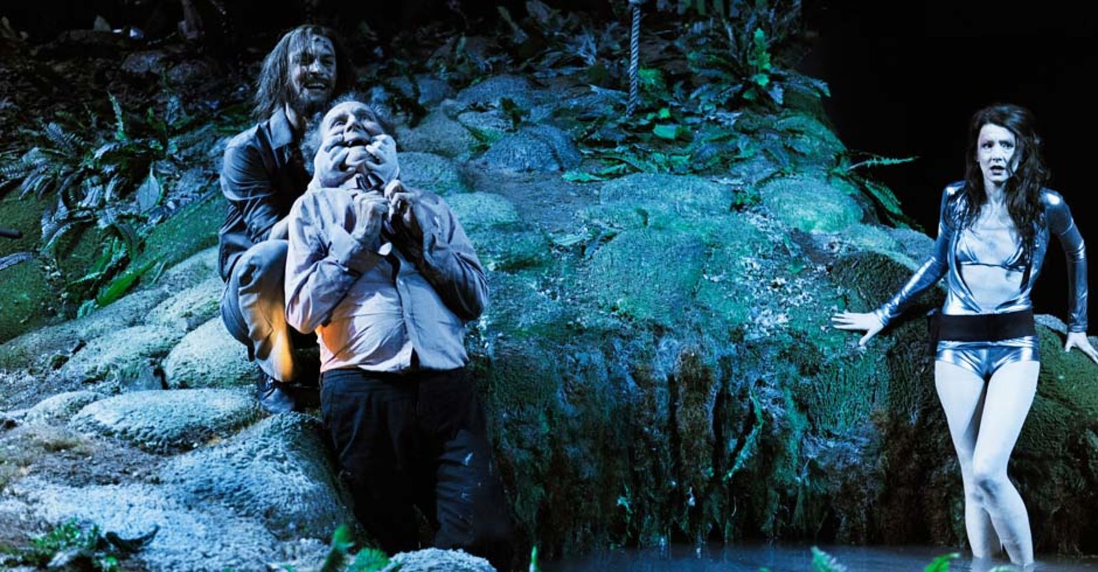 „Jirka Zetts grüblerischer Entertainer ist in jeder Hinsicht das Gegenteil von Gottfried Breitfuss, der den Teufel so herrlich als speckigen Proleten ins Unterholz der Inszenierung fläzt: ein böser Clown, ein Gaffer, dem der Fall der Menschheit die lange Zeit vertreibt. Hängebrücke. Tümpel. Unterholz. Das Erste, was den Zuschauer im Zürcher „Merlin“ bezaubert, ist die Bühnenarena. Blätterdächer, Mooshänge, Urwaldgrün, soweit das Auge reicht. Stefan Hageneier (Bühne und Kostüme) pflanzt das Publikum mitten hinein in ein grandioses Dschungelcamp, mit einem Teich im Zentrum, der Artus den Runden Tisch ersetzt.“ Basler Zeitung