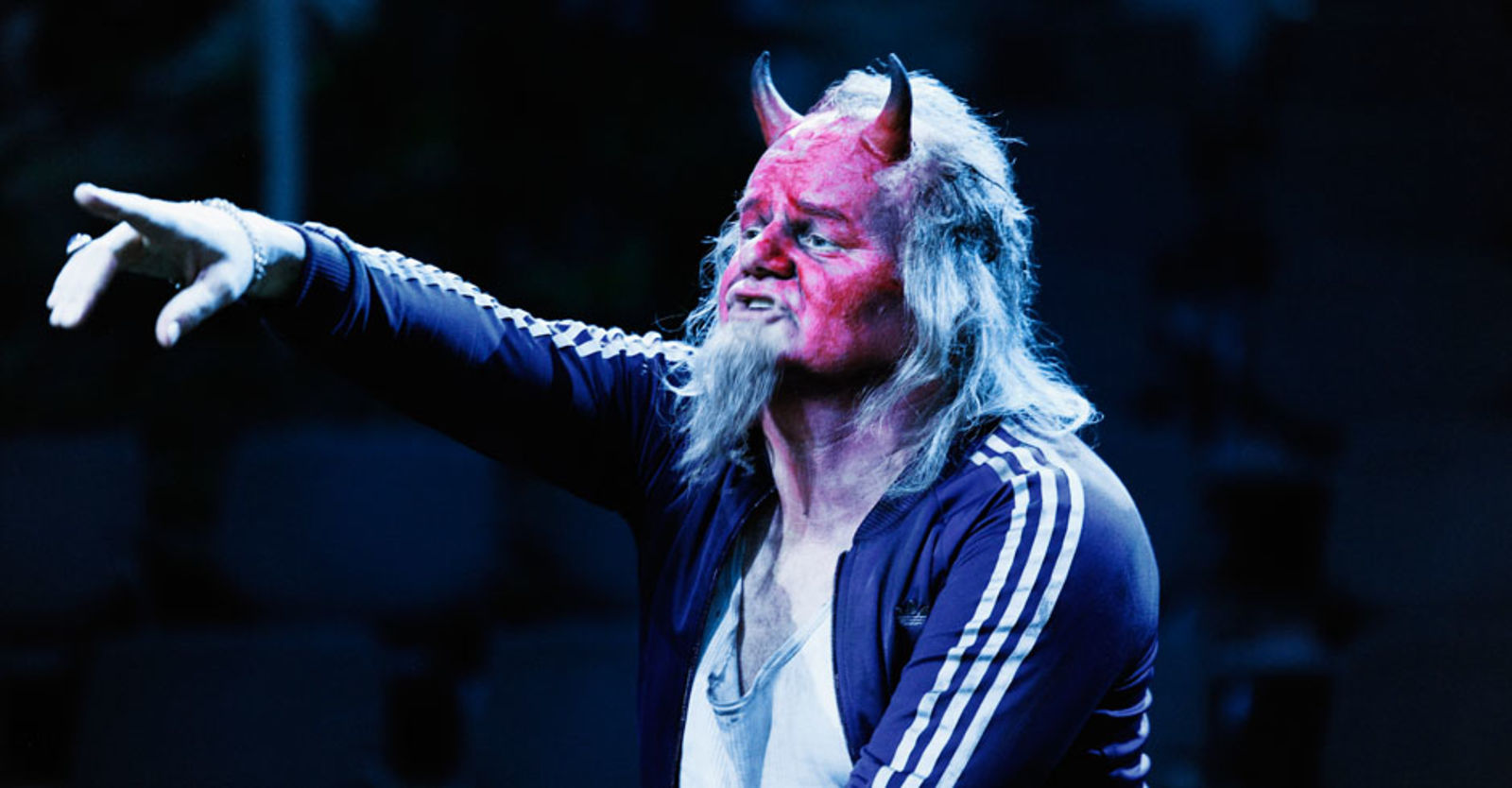 „Obwohl auf „nur“ dreieinhalb Stunden Spielzeit eingedampft, lässt sich das Geschehen kaum nacherzählen. Nur so viel: Der Teufel – der treffliche Gottfried Breitfuss im Trainer – zeugt mit einer Sterblichen einen Sohn. Die Frucht plumpst von der Hängebrücke in den Teich. Gischt, Fontänen und Gewoge. Und alsbald entsteigt dem aufgewühlten Wasser Merlin, ein ewiger Jüngling in makellosem Weiss: Der blonde Jirka Zett passt hervorragend zur Rolle des magischen Spielleiters, der stets das Gute will, vom Bösen aber zunehmend fasziniert ist. Das ist ein echter „coup de théâtre“, und man folgt dem grotesken, mal zirzensisch angelegten, mal variétéhaften Märchenzauber willig.“ Aargauer Zeitung