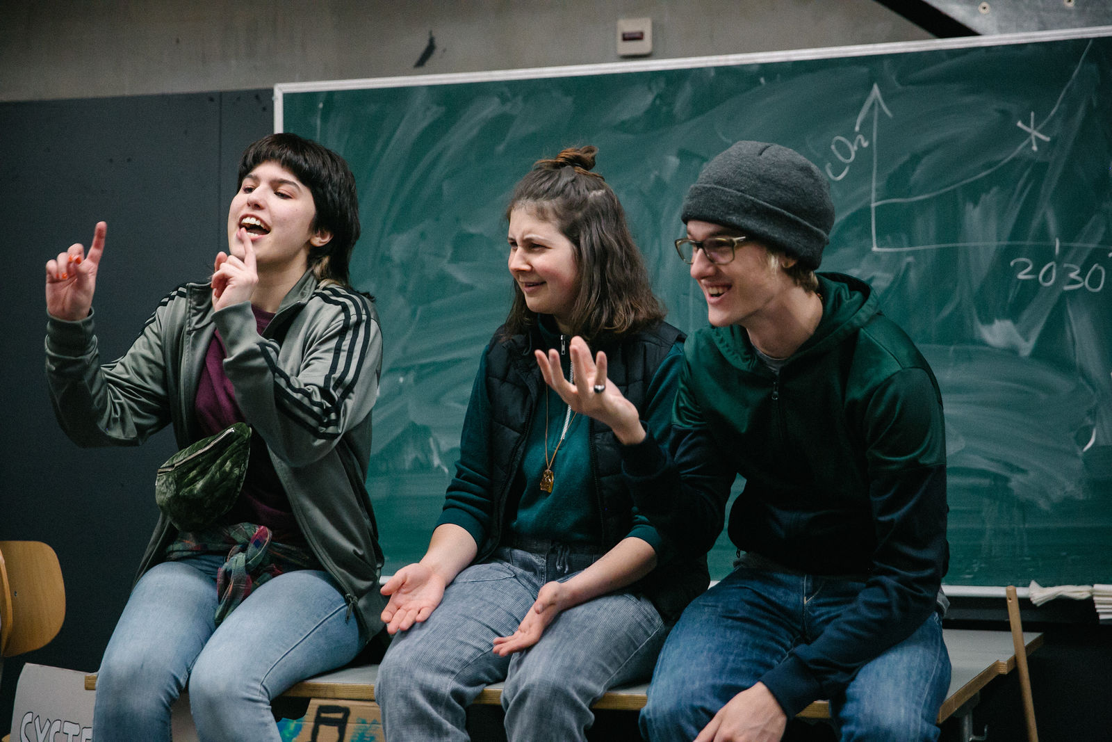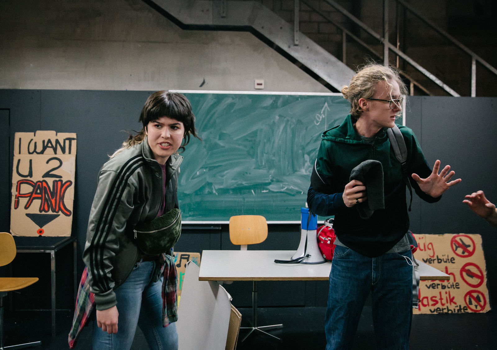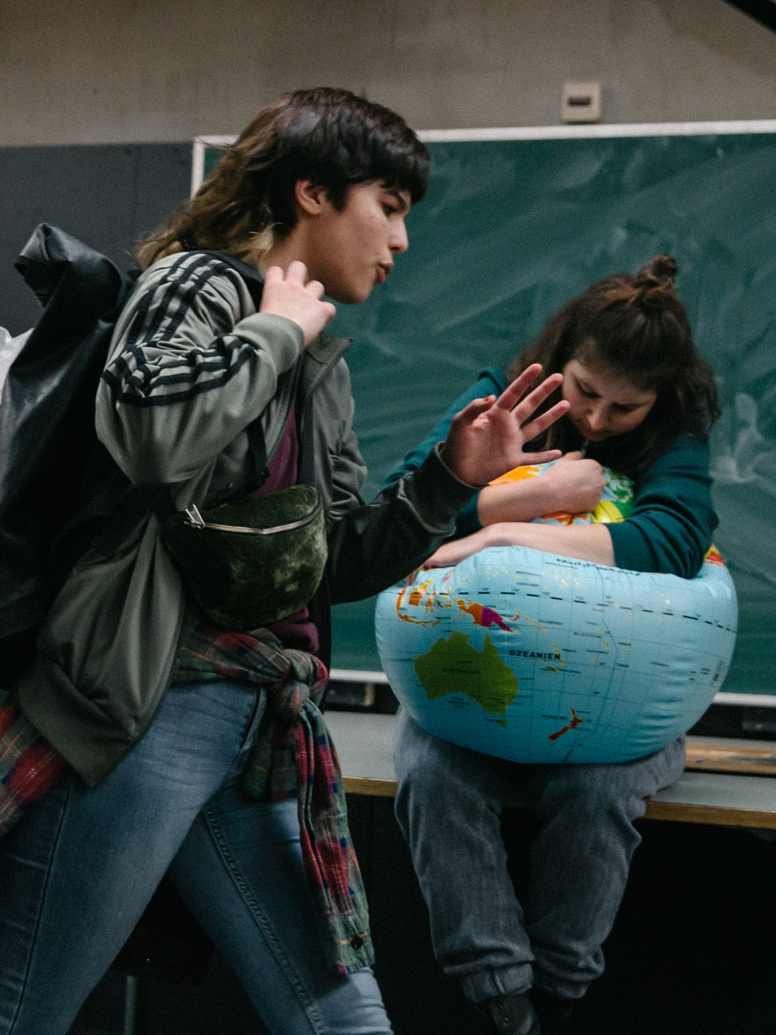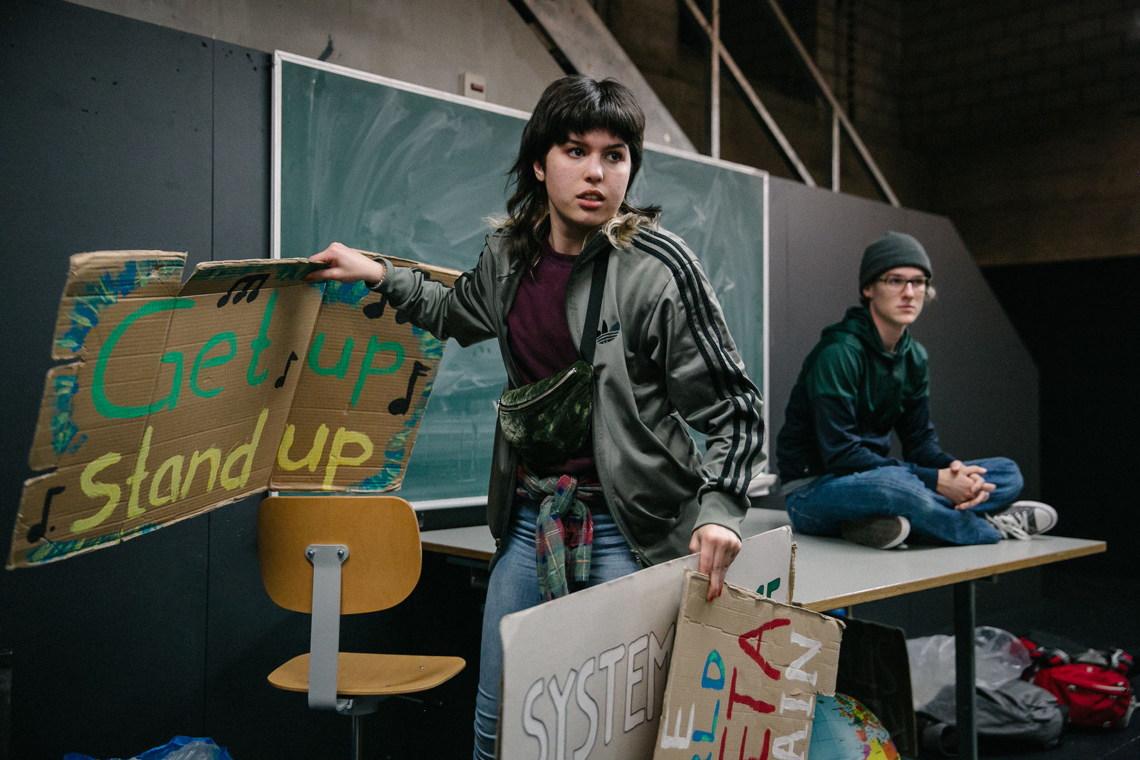 Die Regisseurin Suna Gürler geht mit ihrem ersten Stück fürs Schauspielhaus an den Ort, wo heute Politik gemacht wird: ins Klassenzimmer. Sie fragt Schüler*innen aus Zürich und Umgebung, wie viel Greta in ihnen steckt. Und warum Streik Schule macht. Wo stehen wir, wenn wir die Wahl haben zwischen Rebellion und Kooperation, zwischen Ich-gegen-die-Welt und We-are-the-world? Greta erzählt vom Mut, den es braucht, um in die Sichtbarkeit zu treten und zur Angreiferin zu werden. Von der Zeit, die nötig ist, um eine Haltung zu entwickeln. Und vom Recht, weder Schwarm noch Shitstorm zu folgen und sein ganz eigenes Ding zu machen.