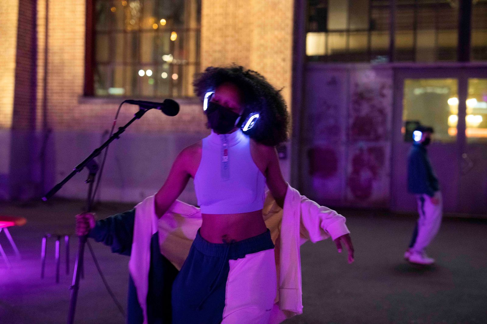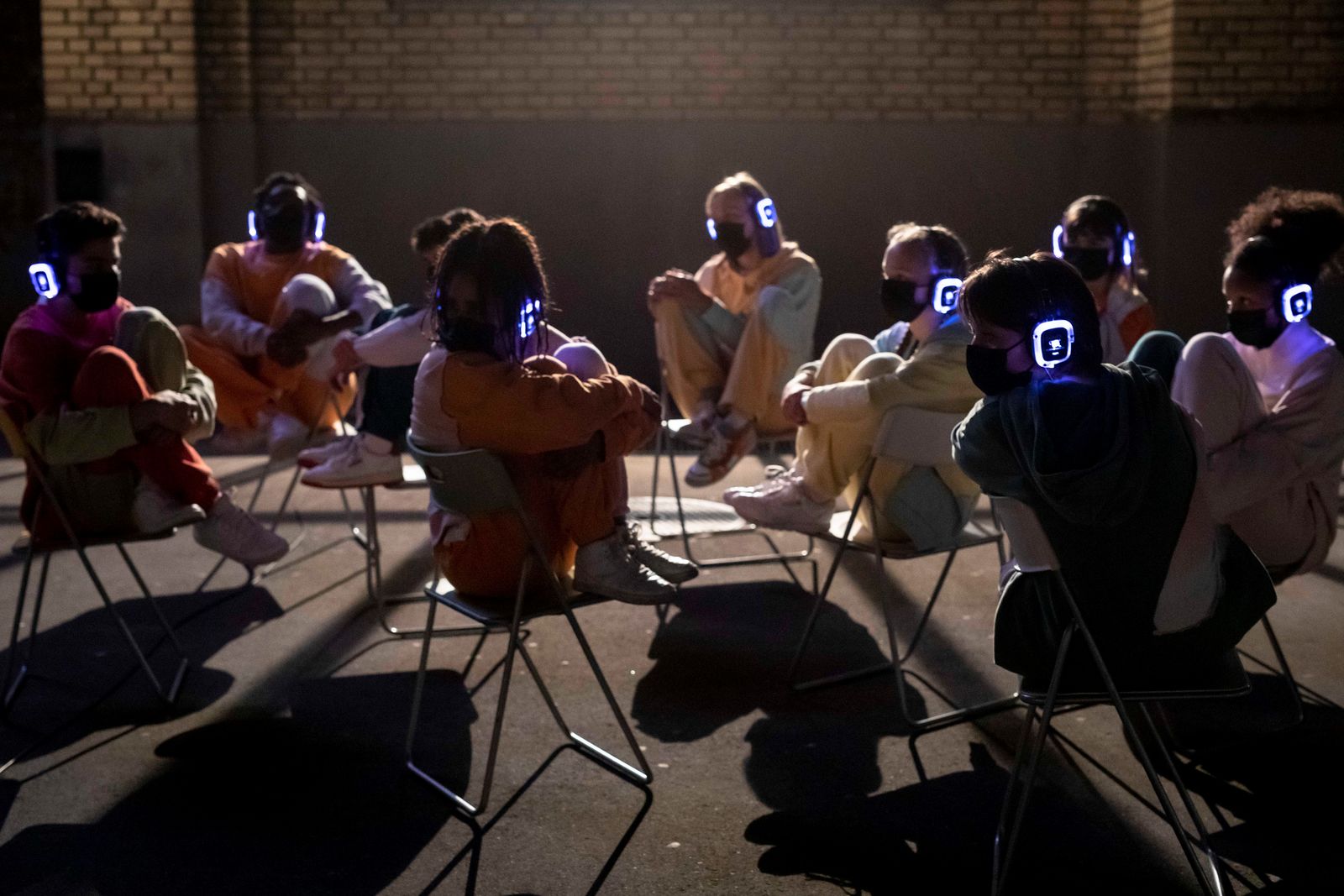 Darum: In Sicherheit sitzend und mit Kopfhörern auf den Ohren tauchen wir gemeinsam mitten im Straßenalltag ab, in eine Parallelwelt von Clubbing und Utopie. Wir erinnern uns an: Wildes Tanzen, schweres Atmen - im Kampf um Selbstbestimmung und Zugehörigkeit.