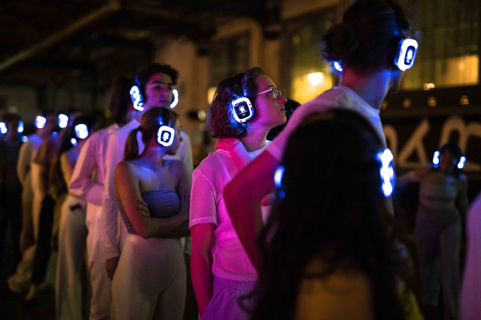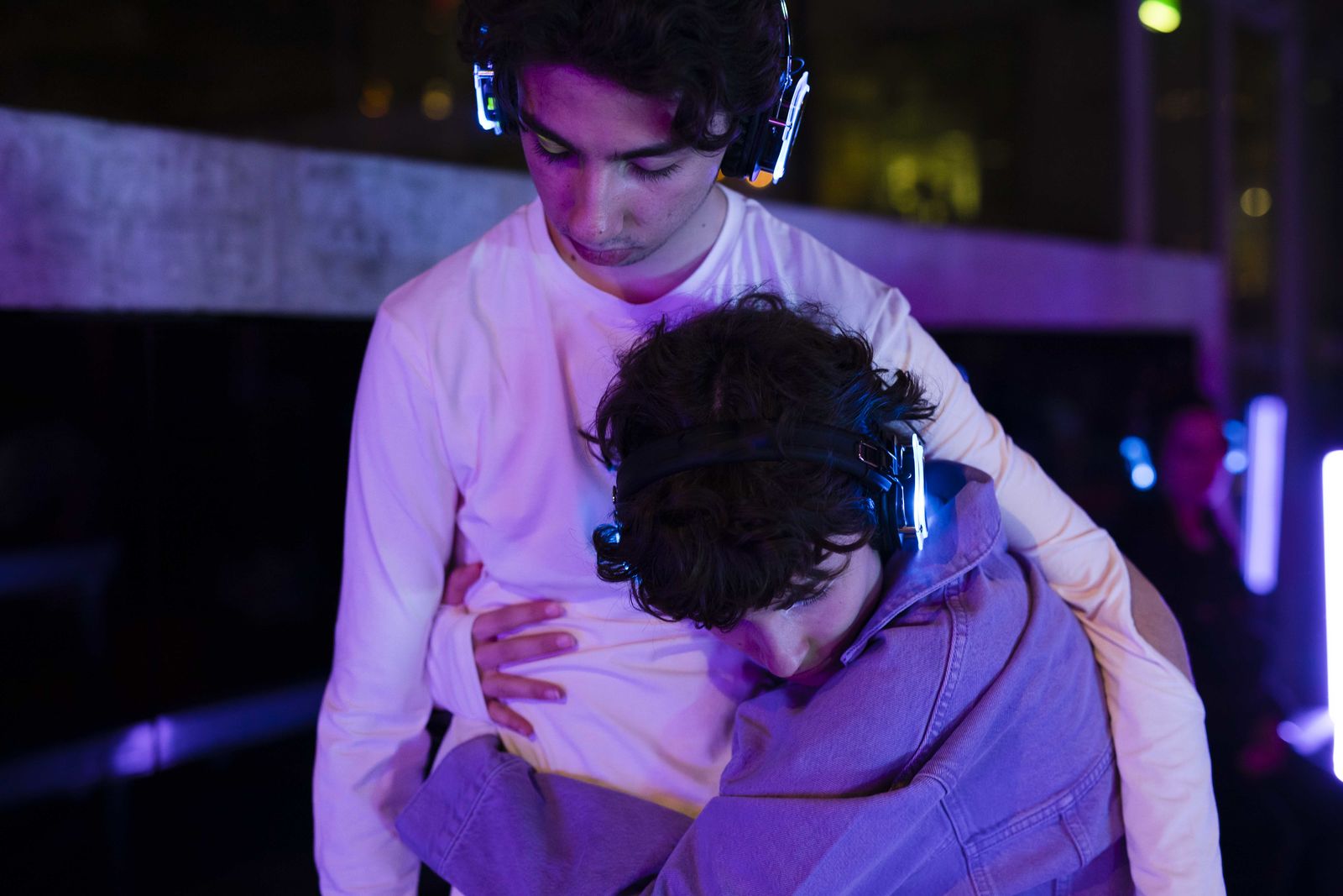 Hinter trendigen Tanzbewegungen, flüchtigen Blicken und in halb-angehörten Sprachnachrichten entfalten sich im Laufe des Abends emotionsgeladene Stories von Sehnsucht, Anziehung, Eifersucht, Freundschaft, Missverständnis und Verletzlichkeit.