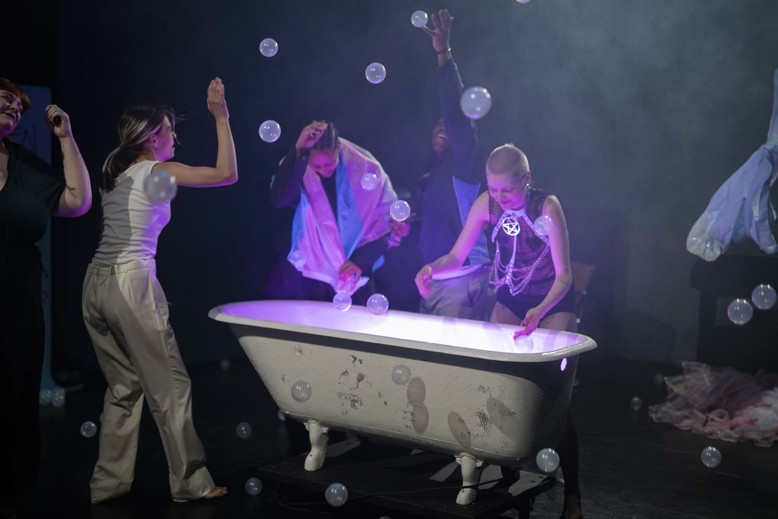 «Wir verbiegen und verlieben uns. Ineinander, voneinander und schliesslich zueinander. Wir sind Herz, Lunge, Gehirn. Wir schlagen, atmen und beraten. Wir verformen, verwandeln und feiern mit euch.»