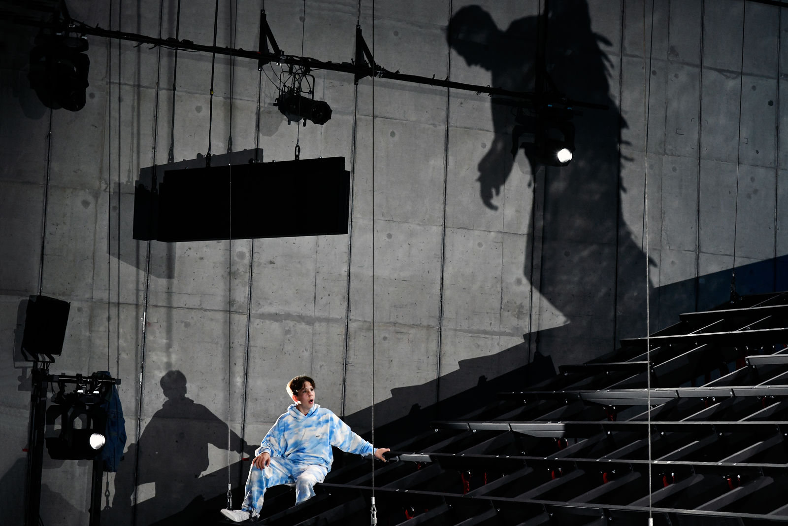 Da plumpst einer mit gebrochenen Flügeln vom Dach mitten ins Nest einer gebrochenen Familie: Auftritt Tearjerker, schweizweit berühmt für seinen verpatzten Eurovision Song Contest. Er findet einen Vater und einen Sohn vor, die um ihre Partnerin und Mutter trauern, dazu eine Menge gelebter und verdrängter Gefühle, verdruckste Versuche von Zärtlichkeit und die Frage, wie das eigentlich geht mit dem Füreinander-da-sein.