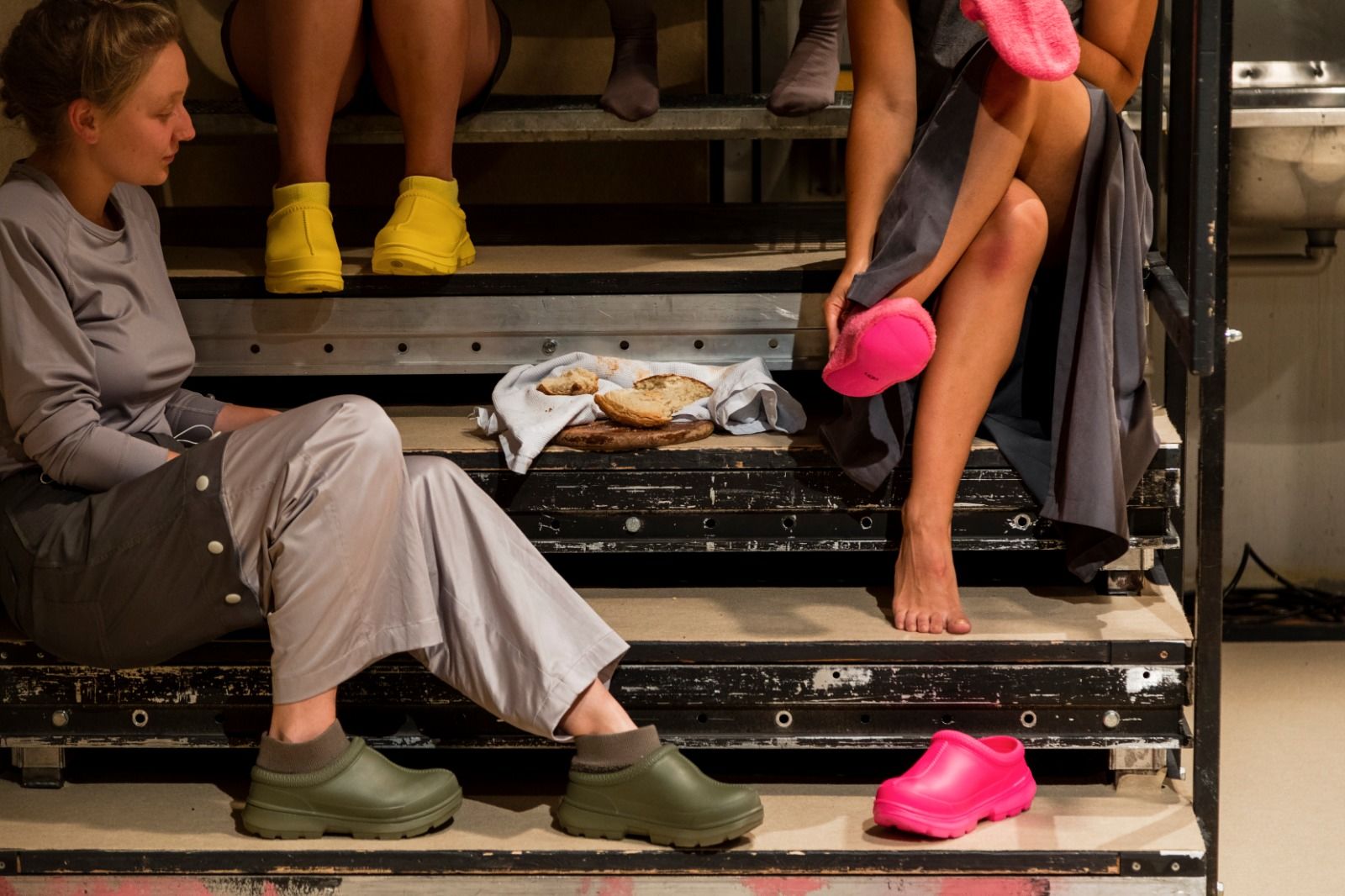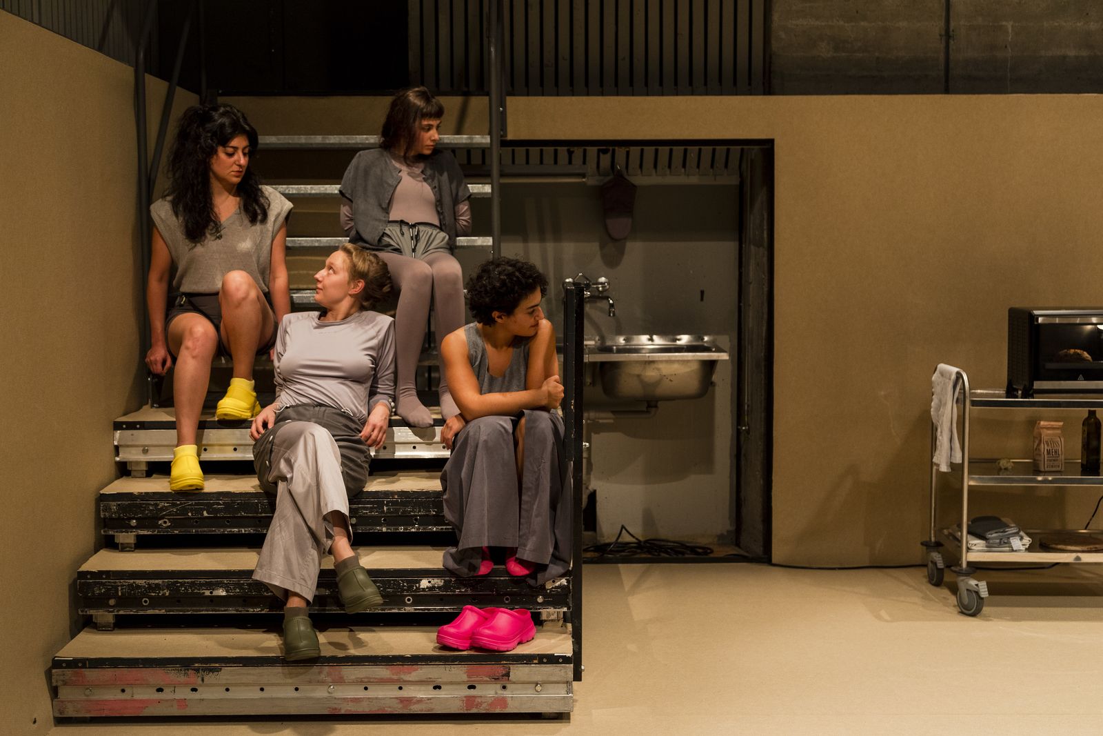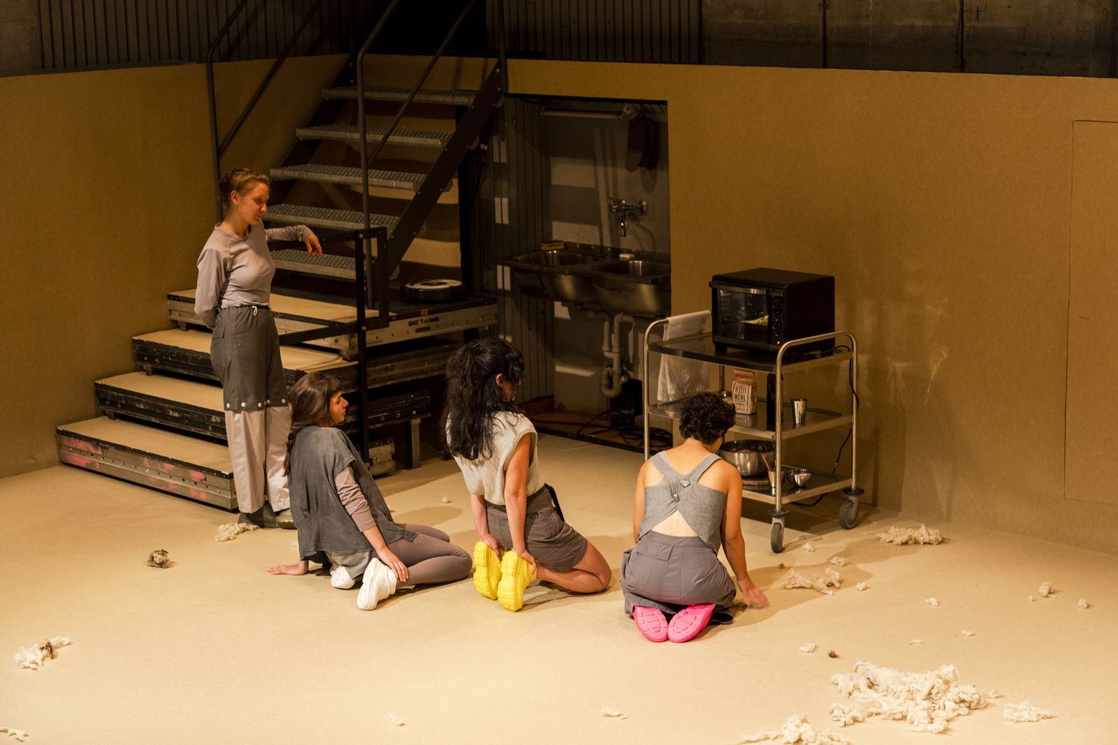 Was lässt sich bewahren? Erinnerungen drohen allzu schnell hinter Gewohnheiten und alltäglichen Beschäftigungen zu verschwinden. Fünf Performerinnen haben einen Vorgang gefunden, der es ihnen erlaubt, Trauerprozesse auf der Bühne zu bearbeiten. Sie werden zu den Protagonistinnen ihrer eigenen Suche nach einem Umgang mit Verlust. Dabei entsteht Gemeinschaft. Und Brot.