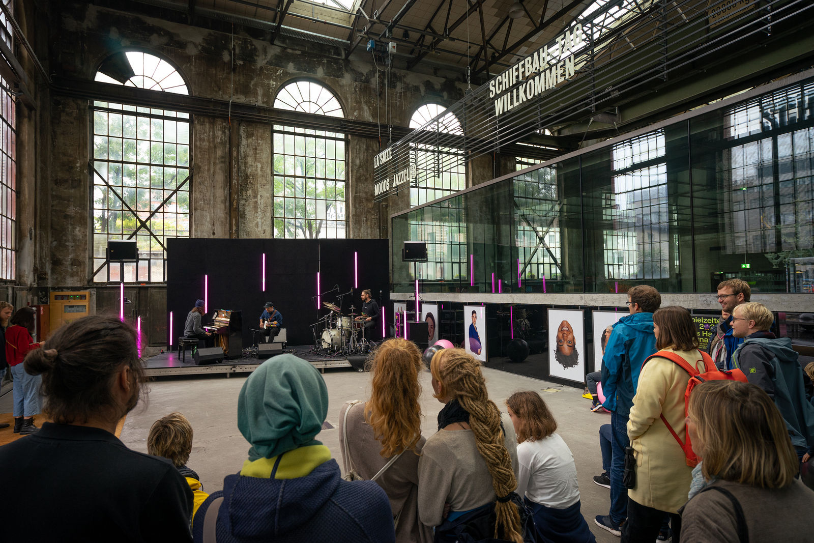 Angeboten werden Führungen durch den Schiffbau, Workshops von Ensemble-Mitgliedern und verschiedenen Abteilungen, Live-Musik, ein Picknick und Orte der Begegnung. Der Jazzclub Moods co-kuratiert die musikalischen Acts und lädt zur Afterparty. Timetable hier als PDF herunterladen