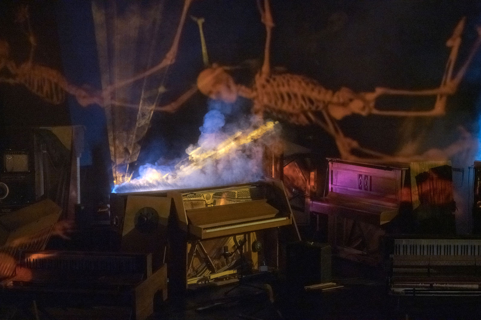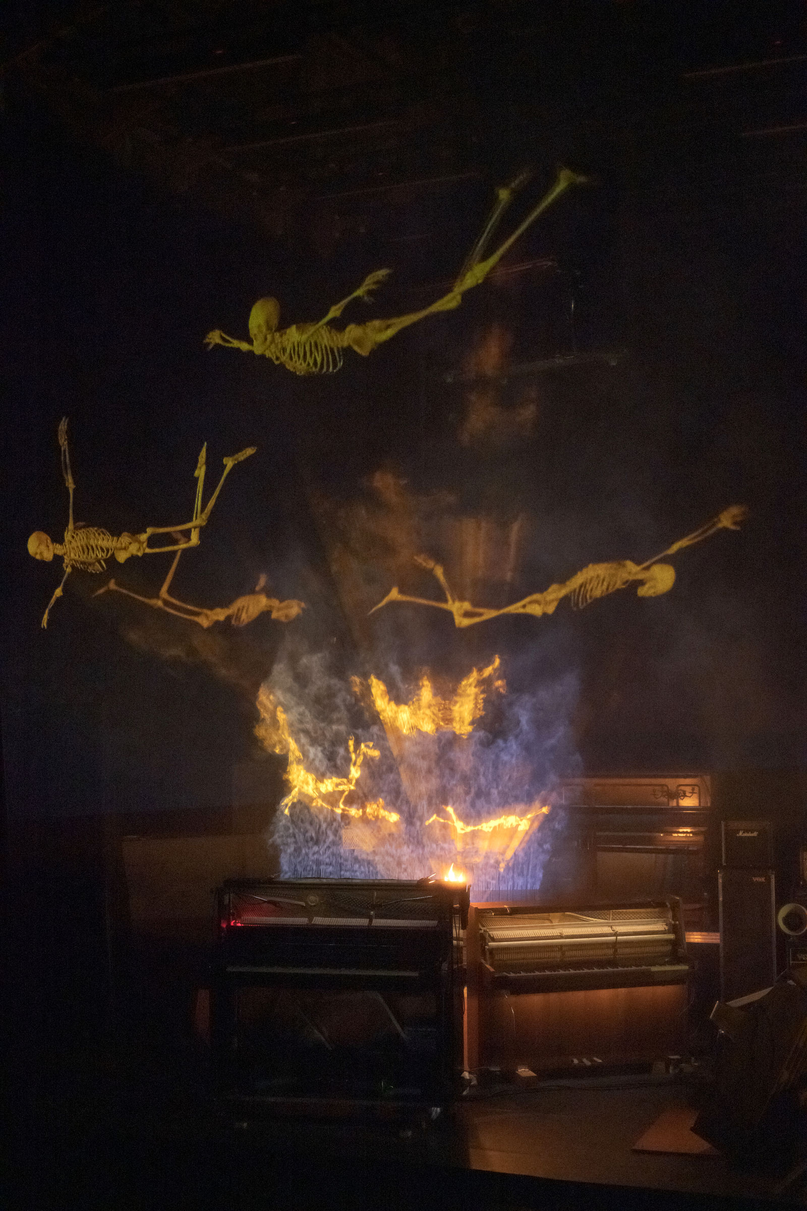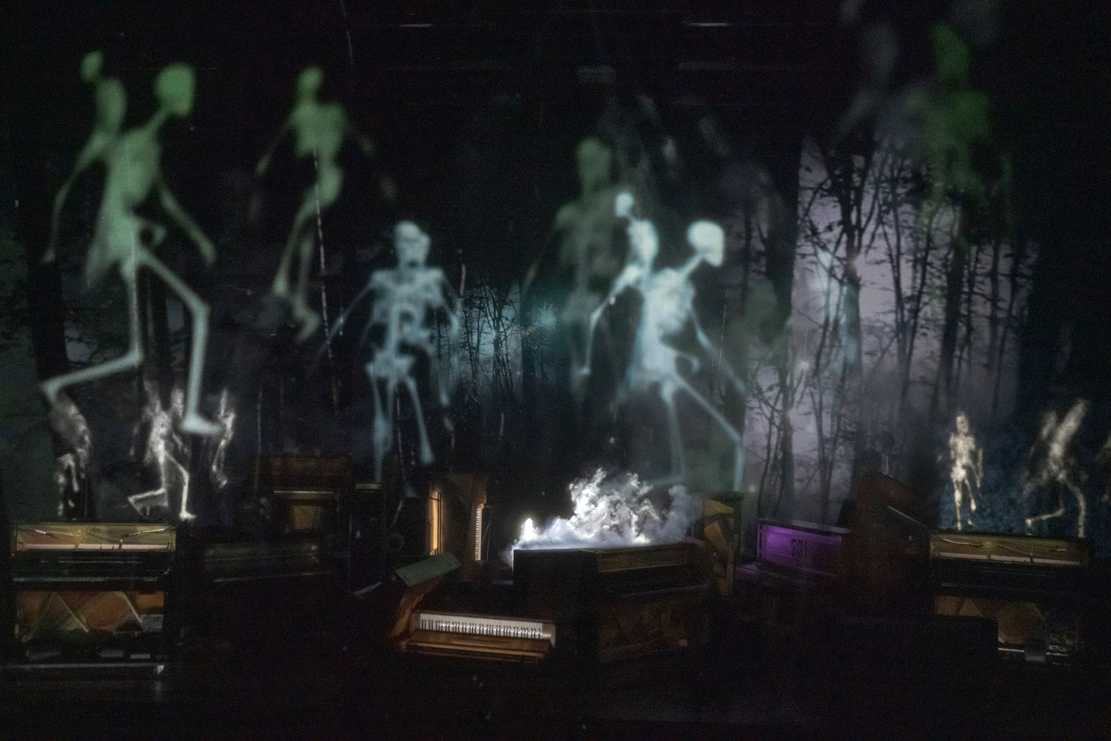 Für diesen zauberhaft-unheimlichen Abend orchestriert der französische Künstler Philippe Quesne ein Theaterkabarett ohne Schauspieler. Die Protagonisten sind einsame Klaviere und makabre Totenreigen, vertont von Pierre Desprats. Eine Theaterattraktion aus flüchtigen Erscheinungen und magischen Laternen, eine Zauberwelt, die Fantasien aller Gattungen und Genres willkommen heisst.