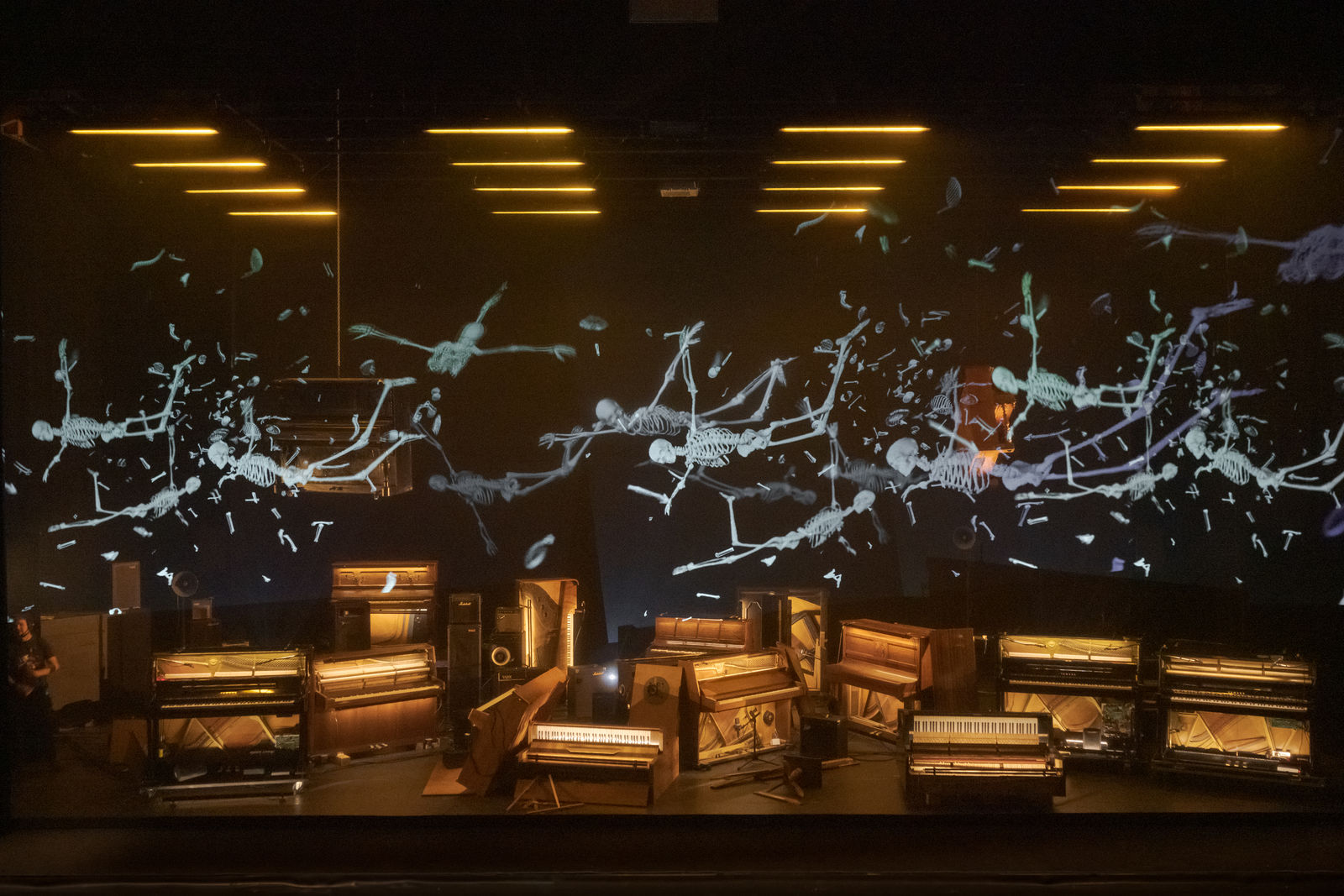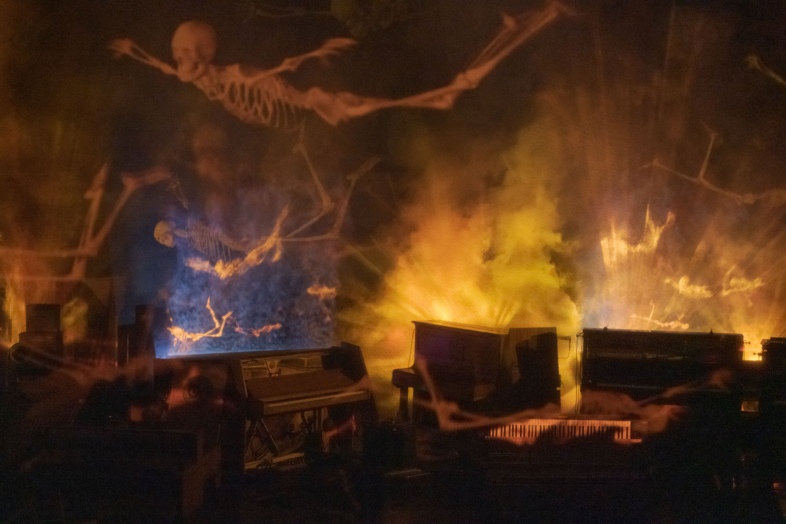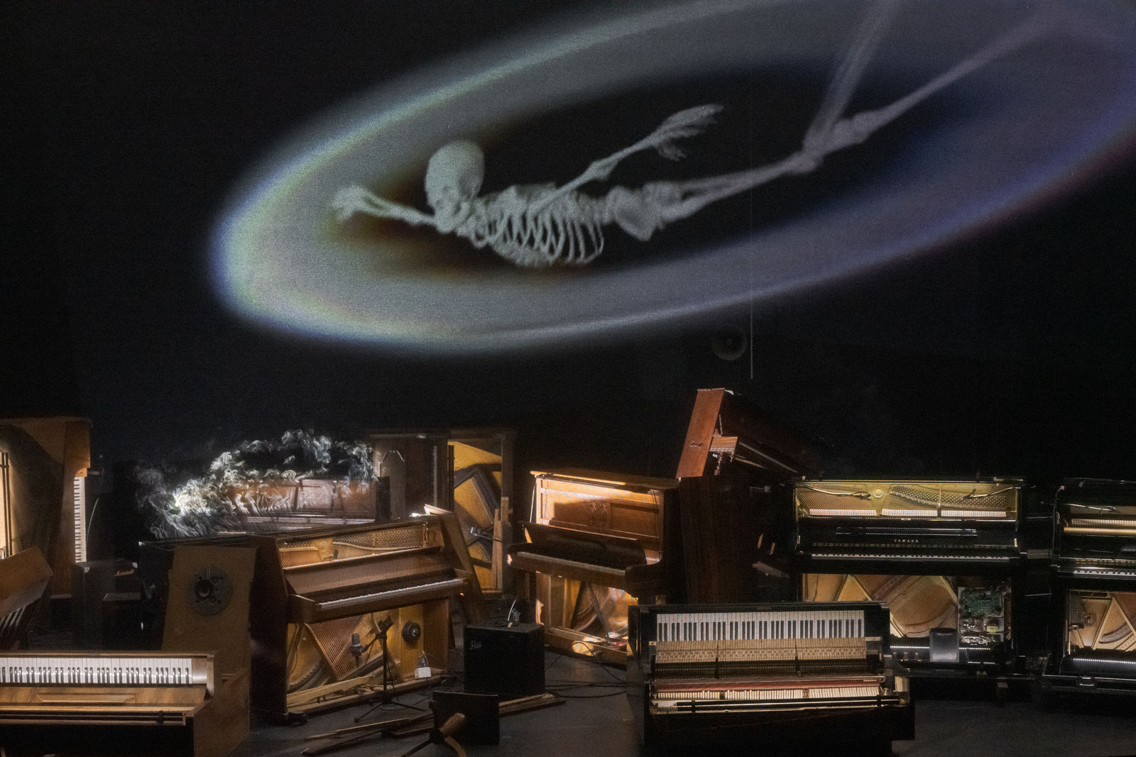Für diesen zauberhaft-unheimlichen Abend orchestriert der französische Künstler Philippe Quesne ein Theaterkabarett ohne Schauspieler. Die Protagonisten sind einsame Klaviere und makabre Totenreigen, vertont von Pierre Desprats. Eine Theaterattraktion aus flüchtigen Erscheinungen und magischen Laternen, eine Zauberwelt, die Fantasien aller Gattungen und Genres willkommen heisst.