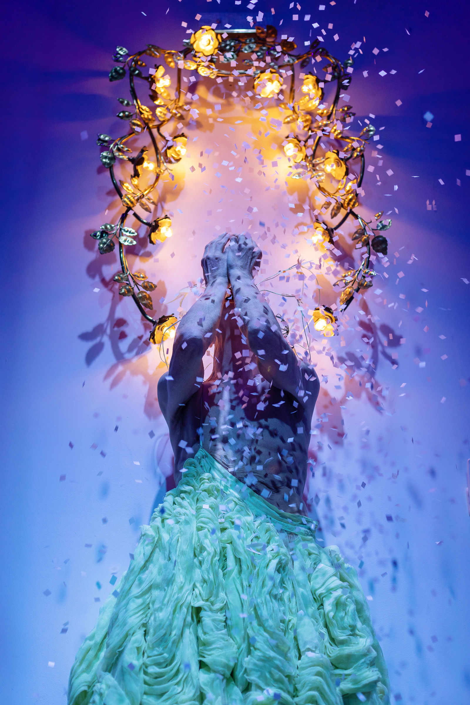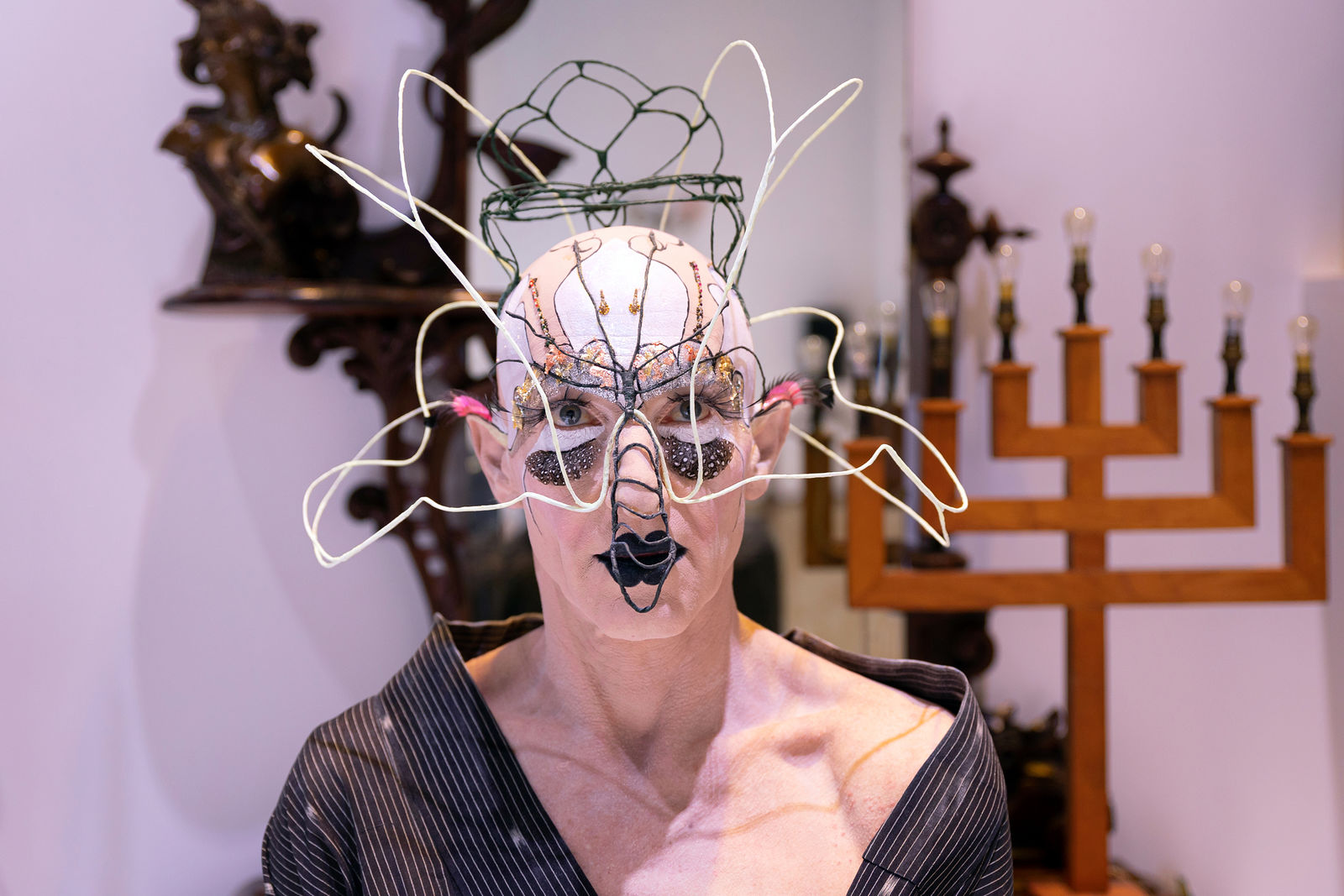 Willkommen im Boudoir, jenem Raum in einem bürgerlichen Haushalt, der den Frauen vorbehalten ist und den der Marquis de Sade zum Zentrum seiner praktischen Philosophie erkor. Hier werden Körper und Intimität politisch. Das Boudoir des aus Südafrika stammenden Künstlers Steven Cohen ist elegant, melancholisch und grausam. Die zarte Raffinesse der Möbel und Einrichtungen weckt intime Erinnerungen an koloniale, politische und religiöse Gewalt, während Cohen selbst (oder das Feenwesen, das er verkörpert) sich mit der Geschichte physisch auseinandersetzt.