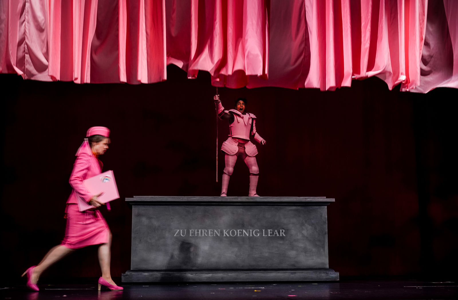 König Lear möchte, als clevere Idee der Machterhaltung, weit vor seinem Tod, Reich und Besitz gerecht an seine drei Töchter Regan, Goneril und Cordelia übergeben – allerdings nicht ohne den Königstitel samt aller Privilegien zu behalten, versteht sich. Doch statt Dankbarkeit und Harmonie erntet er Verständnislosigkeit und Revolte. Die jungen Frauen machen dem Vater die Abrechnung und rufen eine Zeitenwende herbei: «Gleiches Recht für alle Menschen». Ein Ende von Patriarchat und Hierarchie? Lears Albtraum beginnt.