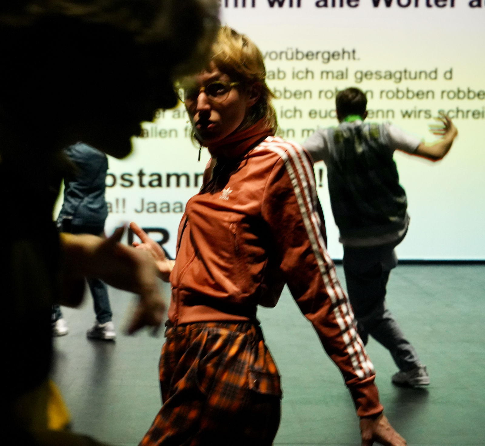 Regisseur Sebastian Nübling, Musiker*in Jackie Poloni und Autor Lucien Haug beschäftigen sich in ihrer täglichen Theaterarbeit damit, prozessual und kollaborativ ein Produkt zu kreieren. Dass die neue Inszenierung nicht von der Entstehung eines Theaterstückes handelt, sagt schon der Titel WRITERS’ ROOM. So begeben sie sich in diesem Projekt mit sieben Spieler*innen des jungen theaters basel vielmehr auf die Suche nach Entwicklungsmöglichkeiten für die untrainierten Muskeln des gesellschaftlichen Zusammenhalts.