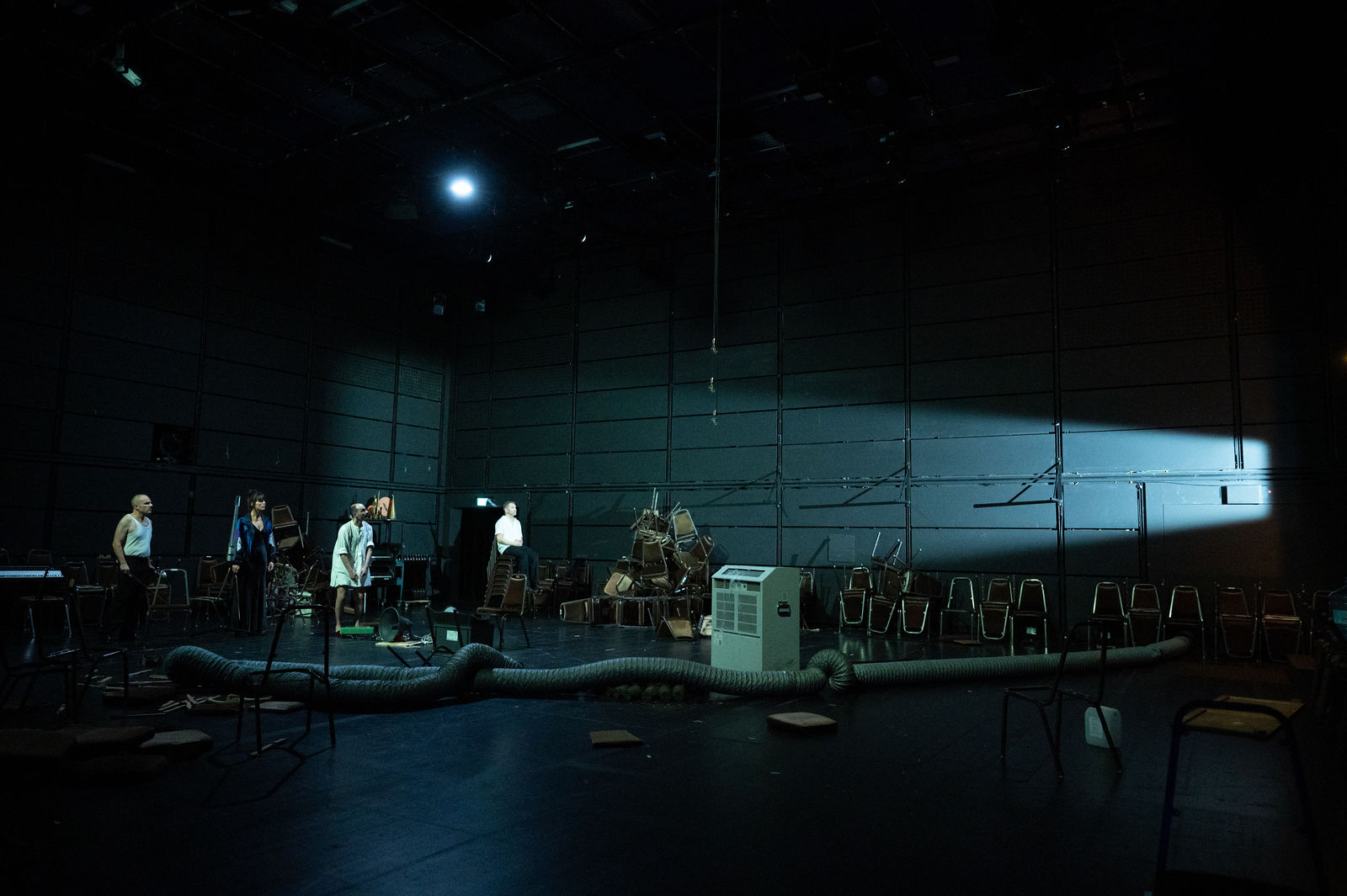 Vier Menschen stranden in einem leeren Raum und können ihm nicht mehr entkommen – ausser durch Gesang. So planen sie singend ihre Flucht - oder ihr Verbleiben in der Falle.