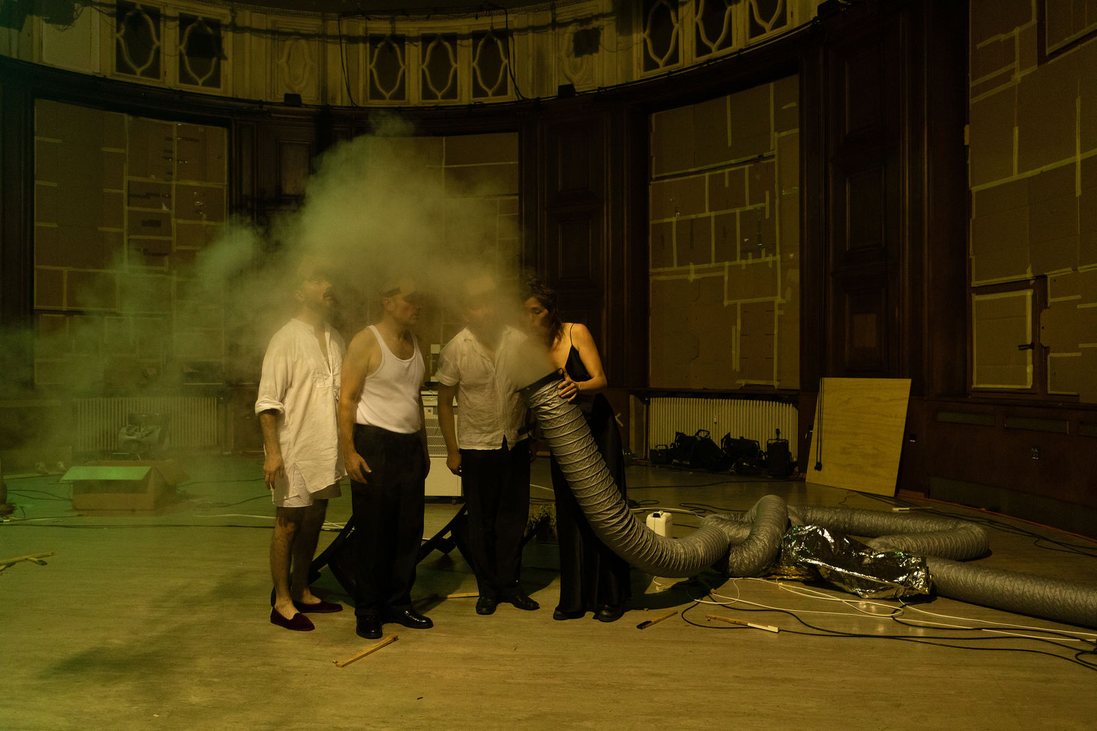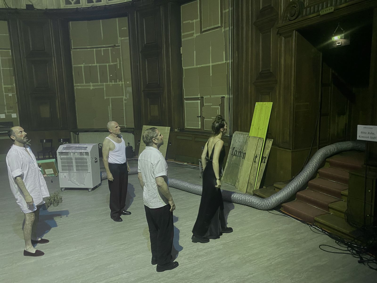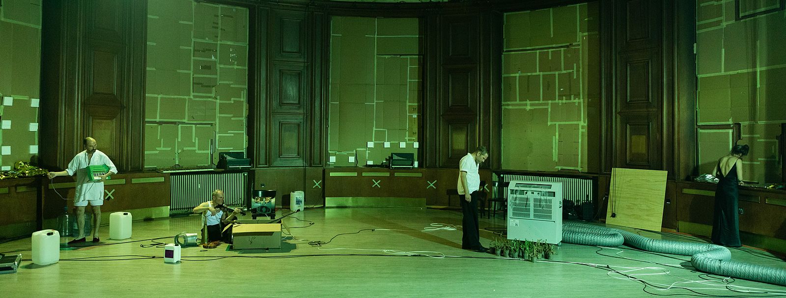 Aus Liedern und Sinfonie-Fragmenten von Gustav Mahler bauen Thom Luz und sein Ensemble eine kurze Weltgeschichte in Klängen. Die Produktion erforscht die musikalischen Möglichkeiten eines leeren Saals am Ende der Zeit, in dem vier singende, zweifelnde Figuren gestrandet sind, um Mahlers riesige Orchesterbesetzungen in kammermusikalische Arrangements für ungewöhnliches Instrumentarium zu überführen. Klassische Instrumente existieren nur noch als ferne Erinnerung, gesungen wird von grünen Wäldern und linden Düften, die ebenfalls zur Welt von gestern zu gehören scheinen.