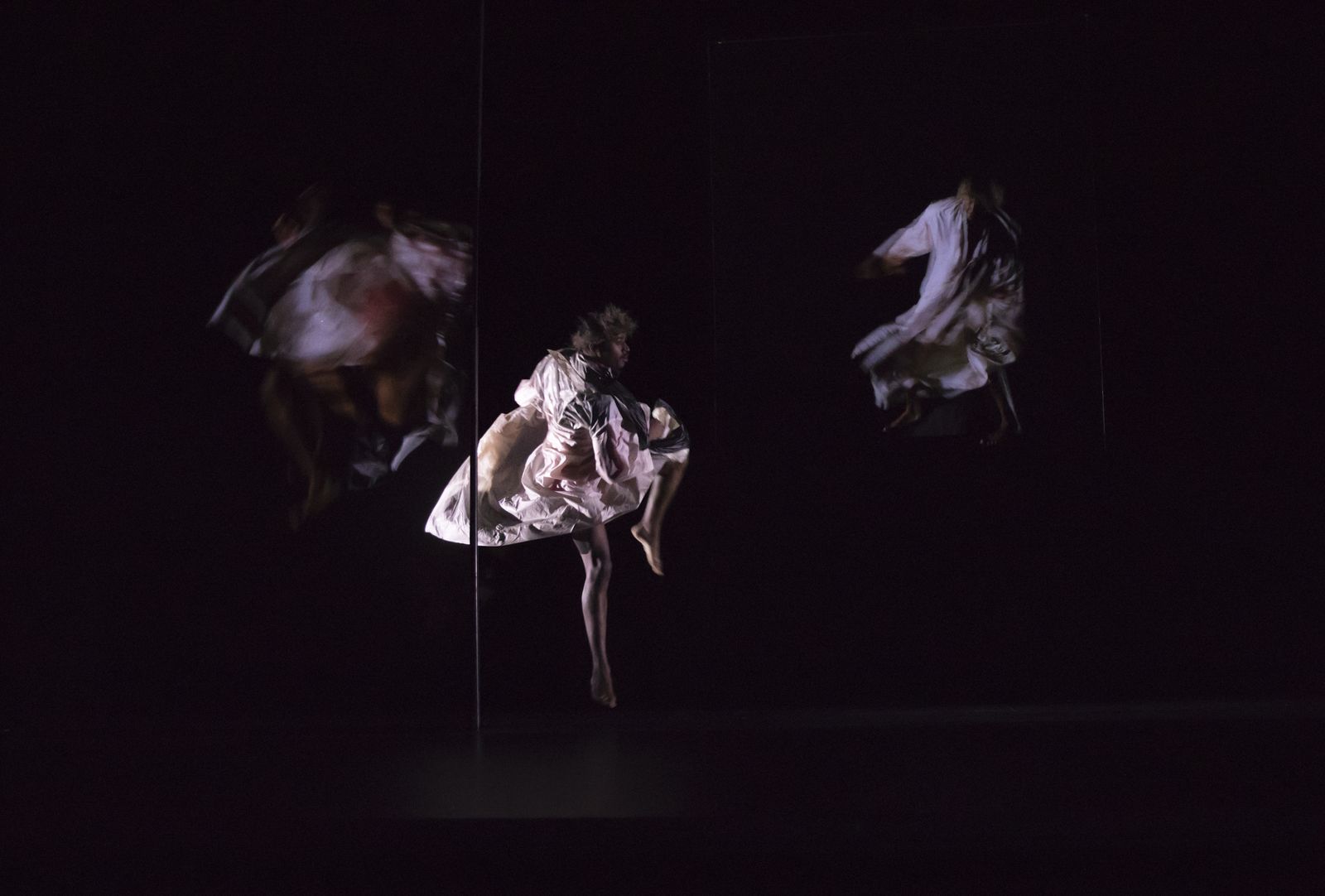 leinwänden, die den unheimlichen «Phantasmagorien» des 18. Jahrhunderts entlehnt sind, werden Geschichten von Trauma und Widerstand durch die Epochen und jenseits der Zeit aufgerufen. Zeit und Raum auf der Bühne werden unentwegt umgestaltet: bewegte Bilder treffen auf aufgezeichnete, Cello- und Klavierklänge vermischen sich mit elektronischem Stimmengeflecht und digitale Raumraster brechen sich an der ans barocke Chiaroscuro erinnerenden Beleuchtung.