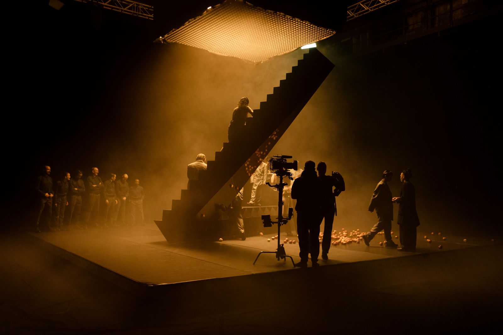 Wu Tsangs Filme vereinen dokumentarische und narrative Techniken mit fantastischen Ausflügen ins Imaginäre und erkunden verborgene Geschichten, marginalisierte Erzählungen und den Akt der Performance selbst. Anfang März drehten sie und Moved by the Motion mit dem Ensemble einen Film. Ausgehend von dem Gedicht come on, get it von Fred Moten und dem Report from Occupied Territory von James Baldwin, bewegt sich die Kamera kontinuierlich zwischen individuellen Choreografien und Bewegungen und Aktionen der Gruppe, die von improvisierter Musik zu Auf- und Abstiegen auf einem Penrose-Dreieck reichen – einem Dreieck, dass die Performenden je nach Perspektive verbindet und trennt. Mit Fred Motens Poem geht der Film Motiven der Unteilbarkeit, der Flüssigkeit und wässrigem Land und Matsch nach und untersucht unterirdische Strömungen des Widerstands und die Politik der (Un-)Sichtbarkeit. Der Film entstand im Bühnenbild von Composition III, einer Produktion im Schiffbau, die nie stattfinden wird und deren Vorgeschichte nun im Pfauen zu erleben ist.